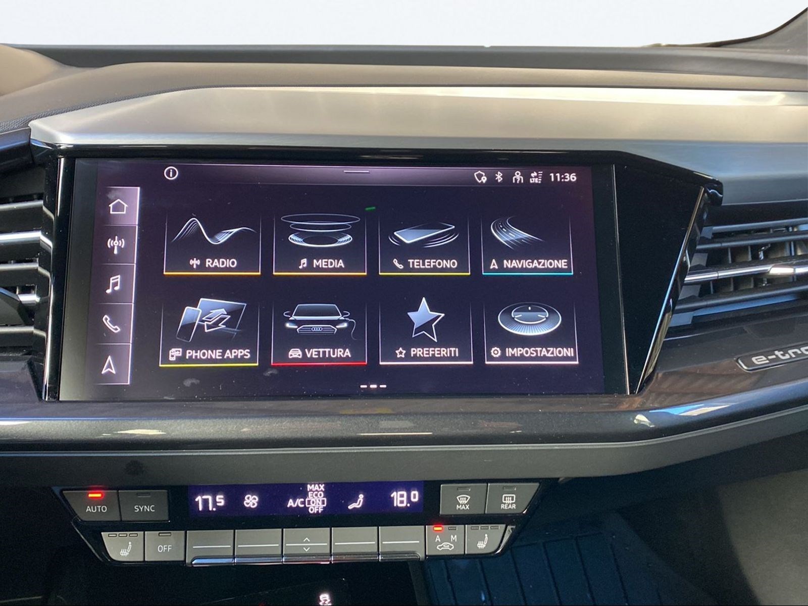 3-Punkt-Sicherheitsgurte auf allen Plätzen Airbag laterali anteriori, con airbag per la testa e airbag interattivo anteriore Airbag: Airbag per conducente e passeggero con disattivazione dell'airbag del passeggero Assist: Einparkhilfe hinten Assist: Riconoscimento del segnale stradale Assist: Sistema proattivo di protezione degli occupanti per parte frontale, fiancate e retro Assist: Spurverlassenswarnung Assist: Stabilizzatore di velocità con limitatore di velocità Cassetta pronto soccorso,triangolo di segnalazione e luci di emergenza Cavo di ricarica modalità 3 tipo 2 32A Clima: Climatizzazione a vettura ferma Comfort bracciolo anteriore Decor: Intarsio, vernice tattile nera Denominazione del modello Iscrizione tecnologica Simbolo del tipo di prestazione Elektronisches Stabilitäts-Programm (ESP) Funkschlüssel, ohne Safelock Garantie: 2 Jahre ohne Kilometerbegrenzung (ab 1. Inv.) Getriebe: Direktantrieb, kein Getriebe Immobilizzatore elettronico Klima: Comfort parcheggio aria condizionata Luce: Luce fendinebbia posteriore Media: Bluetooth-Schnittstelle Pacchetto: Pacchetto dinamico Pacchetto: Pacchetto esterno avanzato Portellone posteriore elettrica Portellone vano bagagli manuale Ricezione radiofonica digitale (DAB) Route: Indicatore di controllo della pressione dei pneumatici Räder: Reifenreparatur-Set (Tire Fit) Sedili: Fissaggio per seggiolino per bambini i-Size sul lato passeggero e i-Size e Top Tether Sedili: Interni con sedili standard in tessuto Index nero Sedili: Sedili anteriori regolabili manualmente Sistema antibloccaggio delle ruote (ABS) Sitze: Vordersitze heizbar Verniciatura: Colori unita Vetri termoisolanti colorati di verde Volante: Volante sportivo in pelle a due razze, superiore e inferiore appiattiti Zentralverriegelung mit Fernbedienung senza Audi connect navigazione e infotainment senza assistente alla luce senza cavo di ricarica (spina industriale) senza inserto per tetto (tetto pieno) senza riscaldamento del volante senza sistema di ricarica