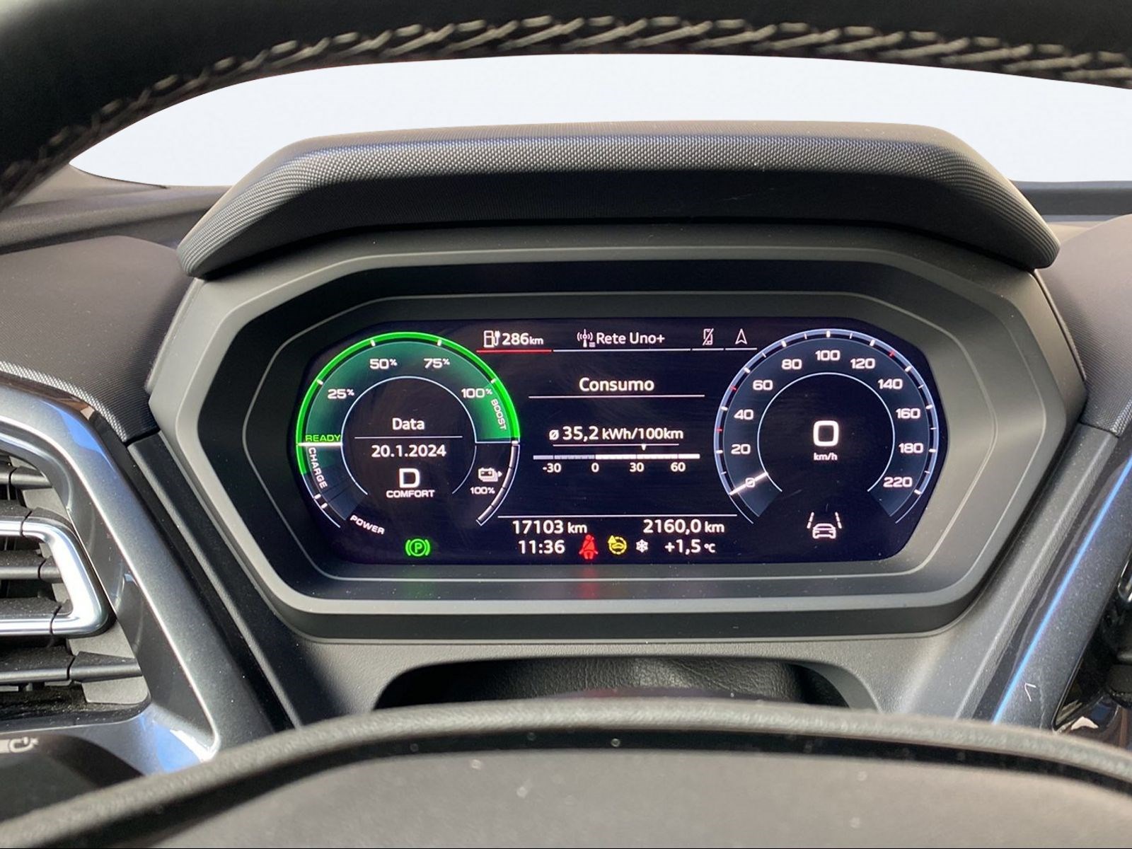 Audi connect Navigation & Infotainment plus Chiave comfort senza Safelock Eliminazione della designazione del modello e delle scritte di servizio / tecnologia Luce: Fari a LED Audi Matrix Pacchetto: Interni S line con sedili sportivi in combinazione microfibra Dinamica / pelle sintetica Pacchetto: Pacchetto aria condizionata Pacchetto: Pacchetto comfort Pacchetto: Pacchetto infotainment Svizzera Pacchetto: Pacchetto look nero Pacchetto: Pacchetto luci d'ambiente plus Pacchetto: Pacchetto sicurezza plus Pacchetto: Pacchetto vano portaoggetti e vano bagagli Portellone posteriore elettrica Ruote: Cerchi in lega leggera Audi Sport, rotore Aero a 5 razze, neri, lucidi Sistema di ricarica e-tron compatto Spina industriale CEE 16A, 400V, lunga e diritta per il sistema di ricarica e-tron Verniciatura: Vernice integrale Verniciatura: Verniciatura metallizzata Vetri privacy (vetri oscurati)