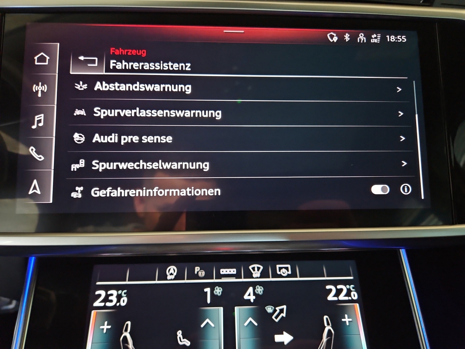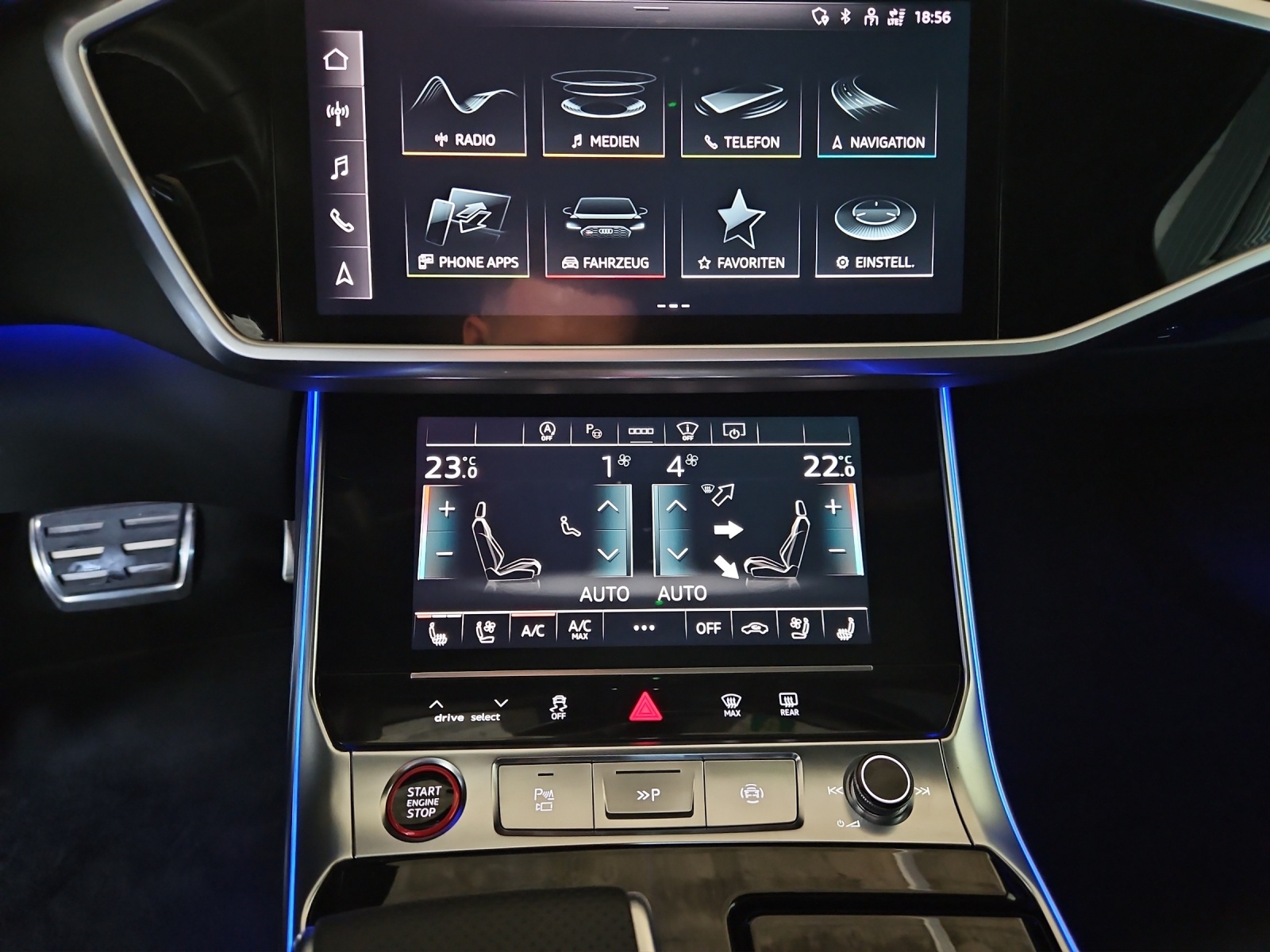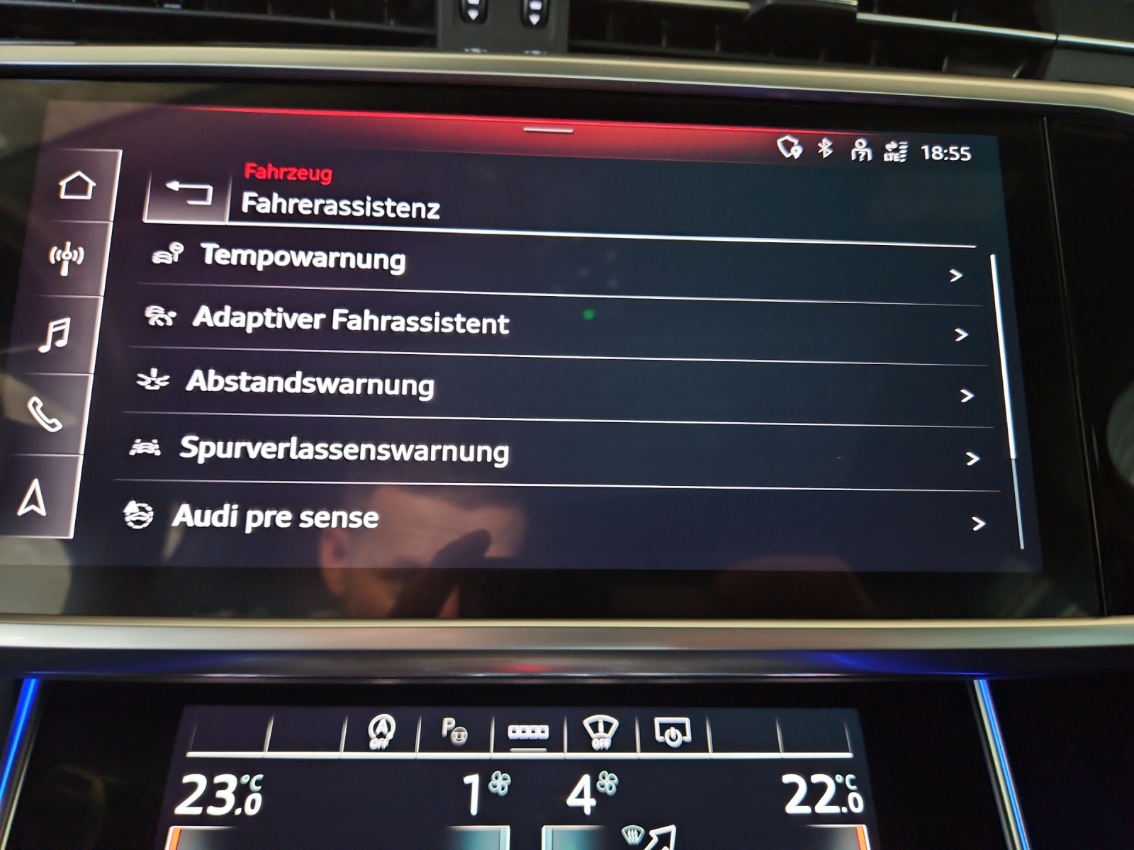 3-Punkt-Sicherheitsgurte auf allen Plätzen Abschliessbare Radschrauben Airbag en rideau pour conducteur et Airbag latéral pour conducteur et passager Airbag: Airbag Fahrer und Beifahrer Antriebsschlupfregelung (ASR) Assist: Einparkhilfe plus Assist: Spurverlassenswarnung Audi Phone Box et Audi connect Barres de toit en look alu Beide Make up-Spiegel beleuchtet Clima: Climatisation à régulation automatique Dispositif pour siège enfant ISOFIX avec Elektrisch verstellbares Lenkrad Elektronische Differentialsperre (EDS) Elektronisches Stabilitäts-Programm (ESP) Elements intérieur en simili-cuir Equipement en alcantara/cuir Fahrer-Informationssystem mit Farbdisplay Frein de stationnement automatique Garantie: 2 Jahre ohne Kilometerbegrenzung (ab 1. Inv.) Getriebe: 8-Stufen-Automat sequentiell HD Matrix Projecteurs LED avec lumière ISOFIX Kindersitzvorrichtung Klima: Pollenfilter (Staubfilter) Lenkrad-Wippschaltung (Paddles) Lenkrad: Progressivlenkung Licht: Licht- und Regensensor Media: Audi Smartphone Interface Media: Audi connect Navigation & Infotainment Media: Audi music interface Media: Digitaler Radioempfang (DAB) Media: MMI Navigationssystem Plus Mittelarmlehne vorn in Kunstleder schwarz mit Kontrastnaht in Rot Pedale und Fuss-Stütze in Aluminium Roues à 10 branches en alliage léger Räder: Reifendruck-Kontrollanzeige Rétroviseur intérieur photochromatique automatique Rétroviseurs extérieurs droite et gauche Rétroviseurs extérieurs en aluminium mat Rücksitzlehne geteilt abklappbar Seitenaufprall-Schutzsystem Sitze: Elektrisch einstellbare Lendenwirbelstütze für Vordersitze Sitze: Vordersitze heizbar Tapis réversible pour le plancher du Tempomat mit Geschwindigkeitsbegrenzer Teppichfussmatten vorne und hinten Tyre Fit (kit réparation de pneus) Volant multifonctions sportif en cuir, Vordersitze elektrisch verstellbar, Fahrersitz mit Memory-Funktion