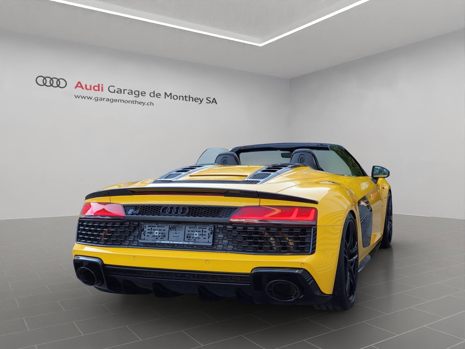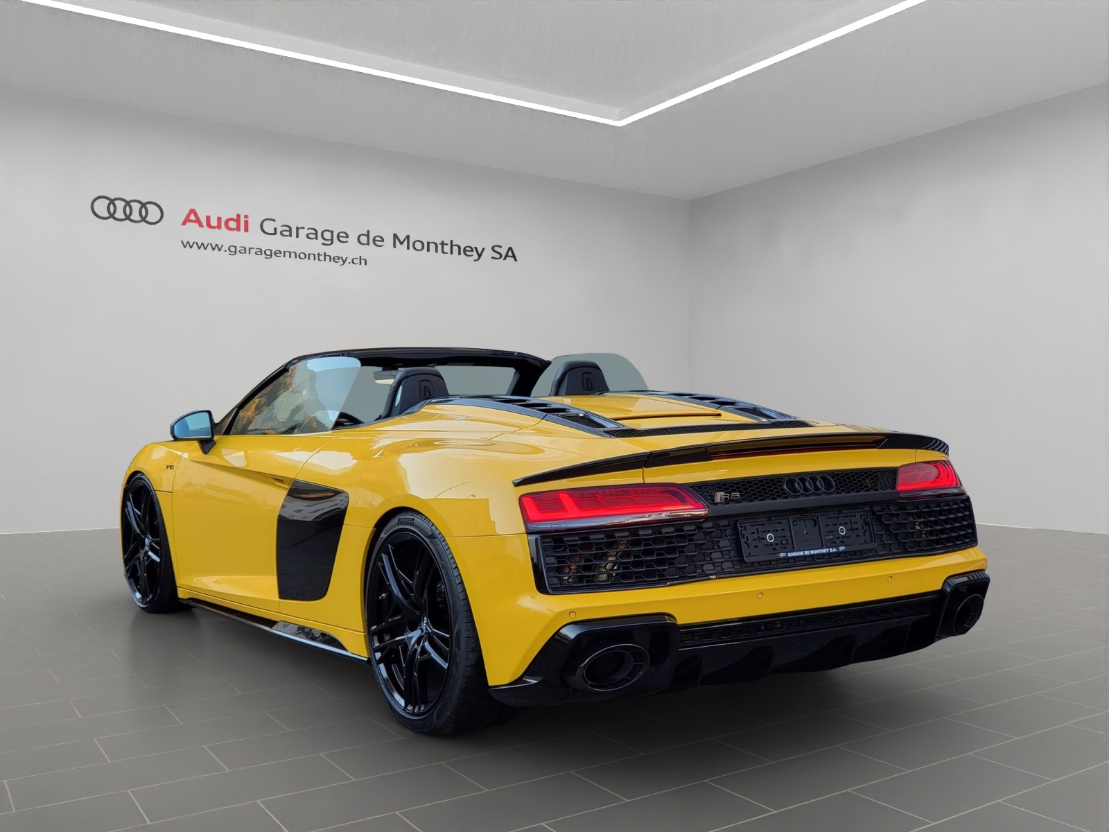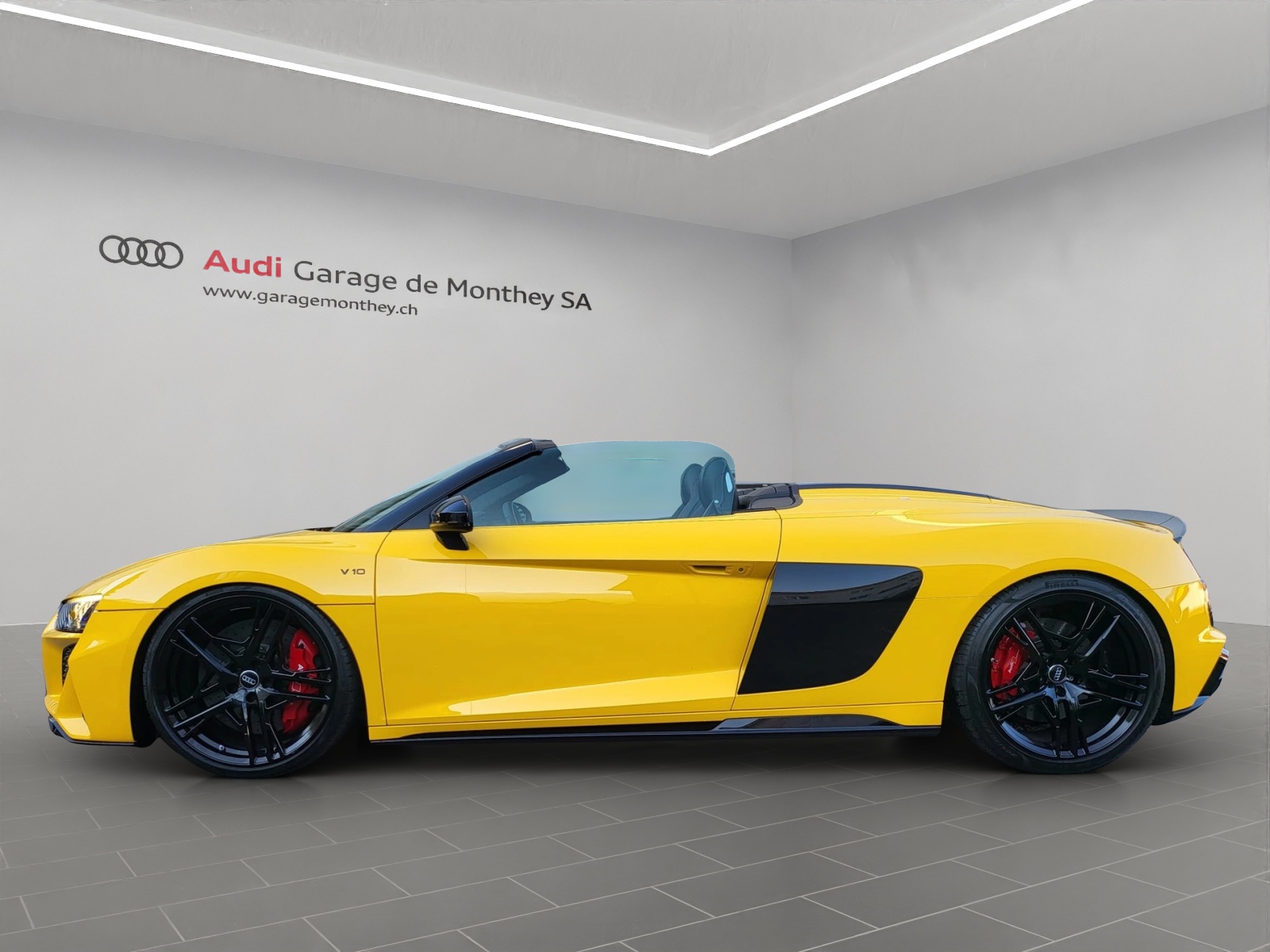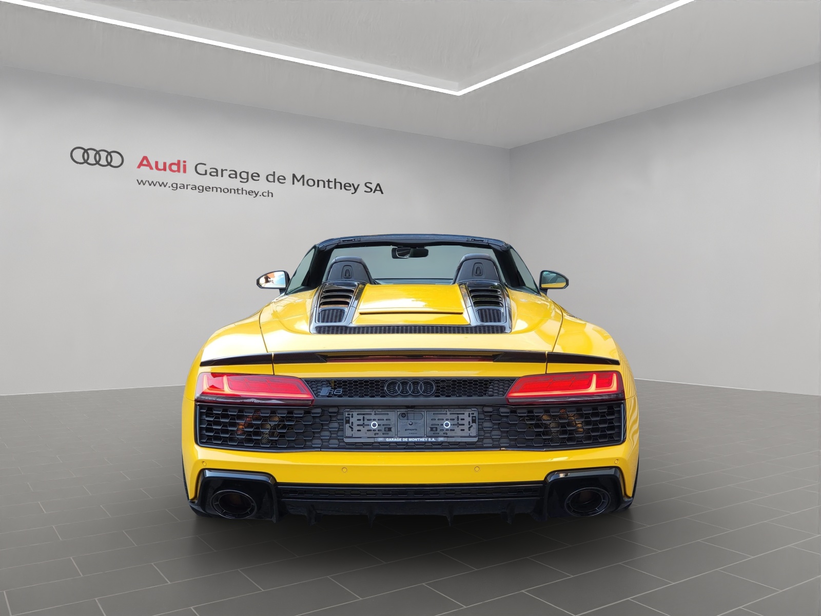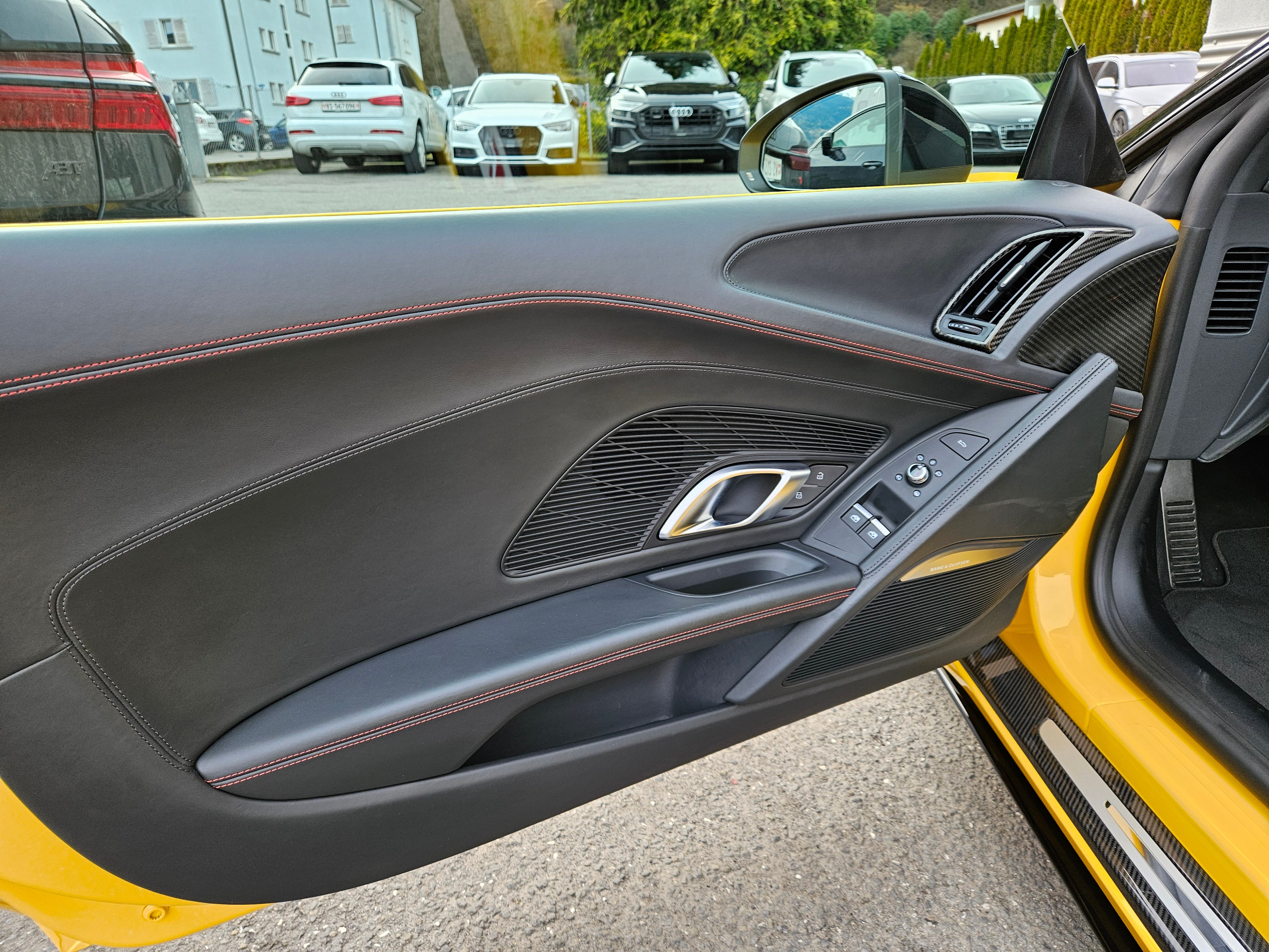 3-Punkt-Sicherheitsgurte auf allen Plätzen Abschliessbare Radschrauben Airbag: Airbag Beifahrer deaktivierbar Airbag: Airbag Fahrer und Beifahrer Airbag: Window-Kopfairbags Airbags laterali lato guida e passeggero Antriebsschlupfregelung (ASR) Assist: Einparkhilfe plus Audi Phone Box e Audi connect Aussenspiegel rechts und links beheizbar und elektrisch anklappbar, automatisch abblendend Cambio a 7 marce sequenziale Einstiegsschienen verchromt Elektronische Differentialsperre (EDS) Elektronisches Stabilitäts-Programm (ESP) Elementi decorativi lucido carbonio Freni composite ceramichi Garantie: 2 Jahre ohne Kilometerbegrenzung (ab 1. Inv.) Gurtstraffer vorne und hinten Impianto di scarico sportivo nero In pelle prestazioni volante con Innenlicht-Abschaltverzögerung Innenspiegel automatisch abblendbar Klima: Klimatisierungsautomatik Klima: Pollenfilter (Staubfilter) Komfortschlüssel, advanced key Kopfstützen vorne höhenverstellbar LED Blinker im Aussenspiegel Licht: Licht- und Regensensor Licht: Nebelschlussleuchte Media: Audi music interface Media: Digitaler Radioempfang (DAB) Montare le prese d'aria in carbonio Navigationssystem plus mit MMI Pacchetto ottico ''Titan'' Pedale und Fuss-Stütze in Aluminium Reifendruckkontrollsystem Ruote in lega leggera disegno a 5 doppie Räder: Reifenreparatur-Set (Tire Fit) Sedili anteriori parzialmente elettrici Sedili avvolgenti anteriori Sedili avvolgenti in cuoio nappa Sitze: Vordersitze heizbar Sostegni lombare per sedili anteriori Verchromtes Auspuffendrohr Vollautomatisches Verdeck Wartungsintervall-Anzeige Wegfahrsperre elektronisch protezione contro il calore