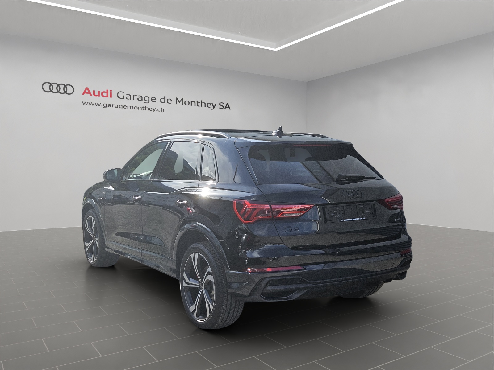 [7HC] Accoudoir de porte en simili cuir [4ZP] Paquet optique noir brillant avec bagues et lettrages Audi en noir brillant [A41] Garantie: Audi Swiss Service Package+ (ASSP+) - Réparation 3 ans ou 100000 km, entretien 10 ans ou 100000 km - Le premier réalisé s'applique [0VB] Papiers français [6XL] Rétroviseurs ext. avec fonction de mémori, gradation autom. et réglage électrique, chauffants, incl. bordures de trottoir droite [0E] noir mythe métallisé [YMZ] Film adhénsif d'anneaux Audi latéral [UG5] Assist: Hill Desent Control [GB1] Support LTE pour Audi phone box [QJ1] Décor: Aspect aluminium à l'intérieur [EI] schwarz - felsgrau [PCG] Assist: Assistant de vitesse adaptatif Véhicule CH / Services gratuits 10 ans ou 100'000 kms / Garantie d'usine 5 ans ou 100'000 kms depuis 1ère mise en circulation / Leasing et reprise toutes marques possible