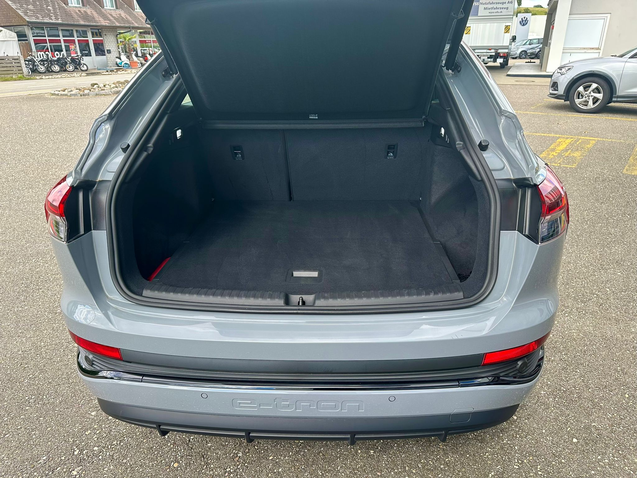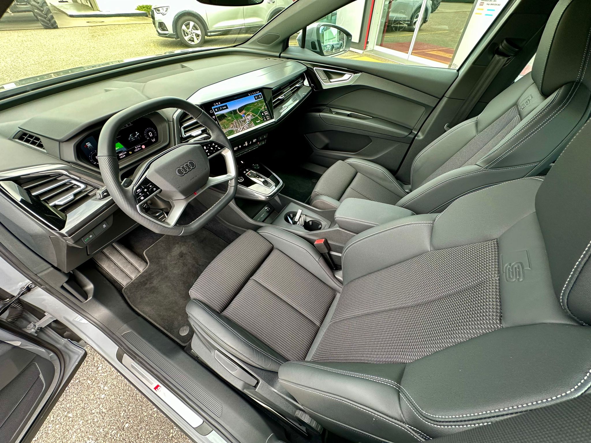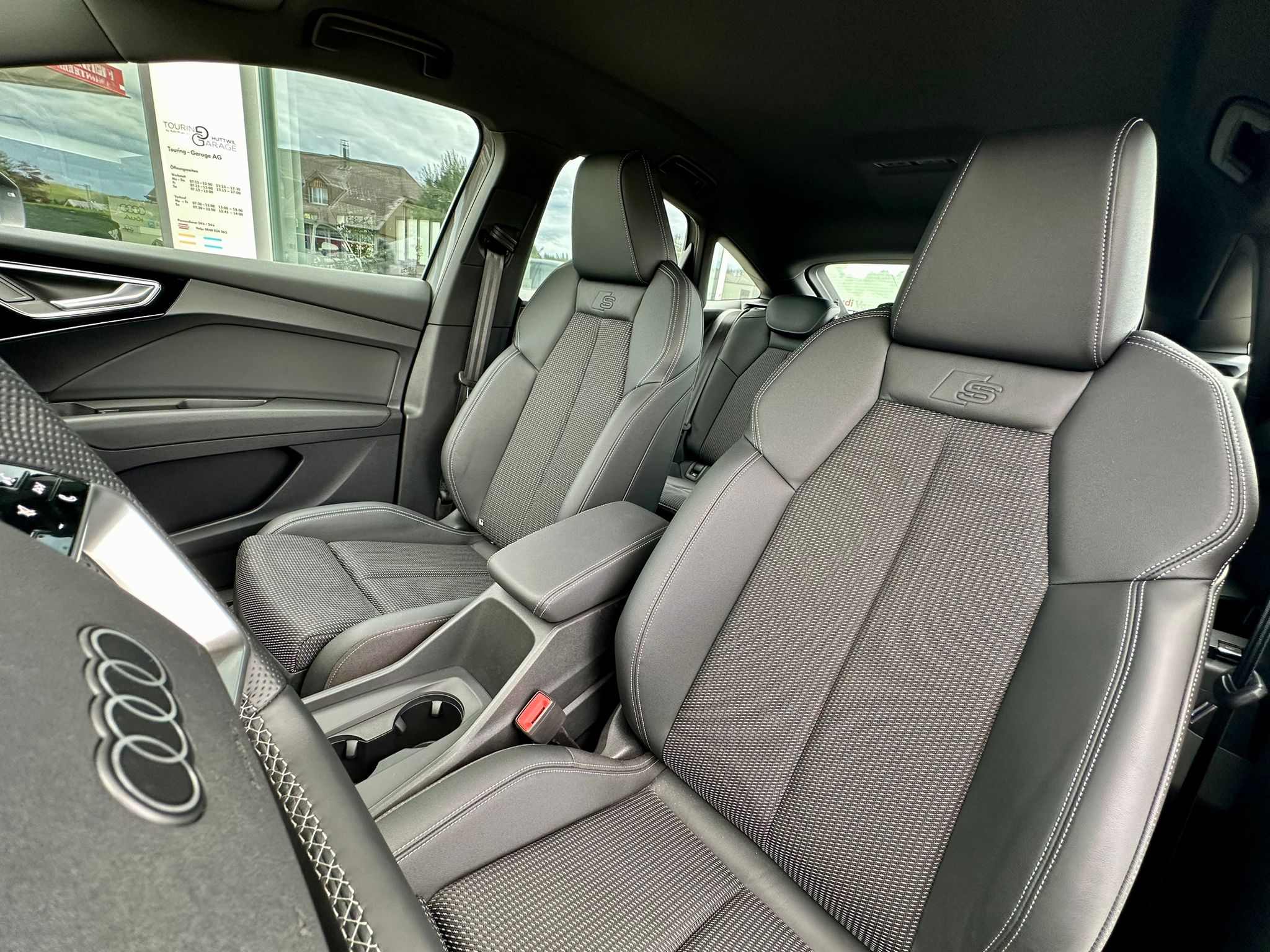 Assist: Parkassistent plus mit Einparkhilfe mit Umgebungsanzeige Frontscheibe in Klimakomfort-/Akustikverglasung, drahtlos beheizbar Gepäckraumklappe elektrisch öffnend und schliessend Komfortschlüssel ohne Safelock Lackierung: Volllackierung Media: Audi connect Navigation & Infotainment plus Paket: Ablage- und Gepäckraumpaket Paket: Assistenzpaket plus Paket: Infotainmentpaket Schweiz Paket: Interieur S line mit Sportsitzen in Stoff / Kunstleder-Kombination schwarz Paket: Klimatisierungspaket Paket: Optikpaket schwarz Paket: S line Exterieur Paket Paket: Sicherheitspaket plus Räder: Leichtmetallräder Audi Sport, 5-Arm-Rotor-Aero, schwarz, glanzgedreht e-tron Ladesystem kompakt