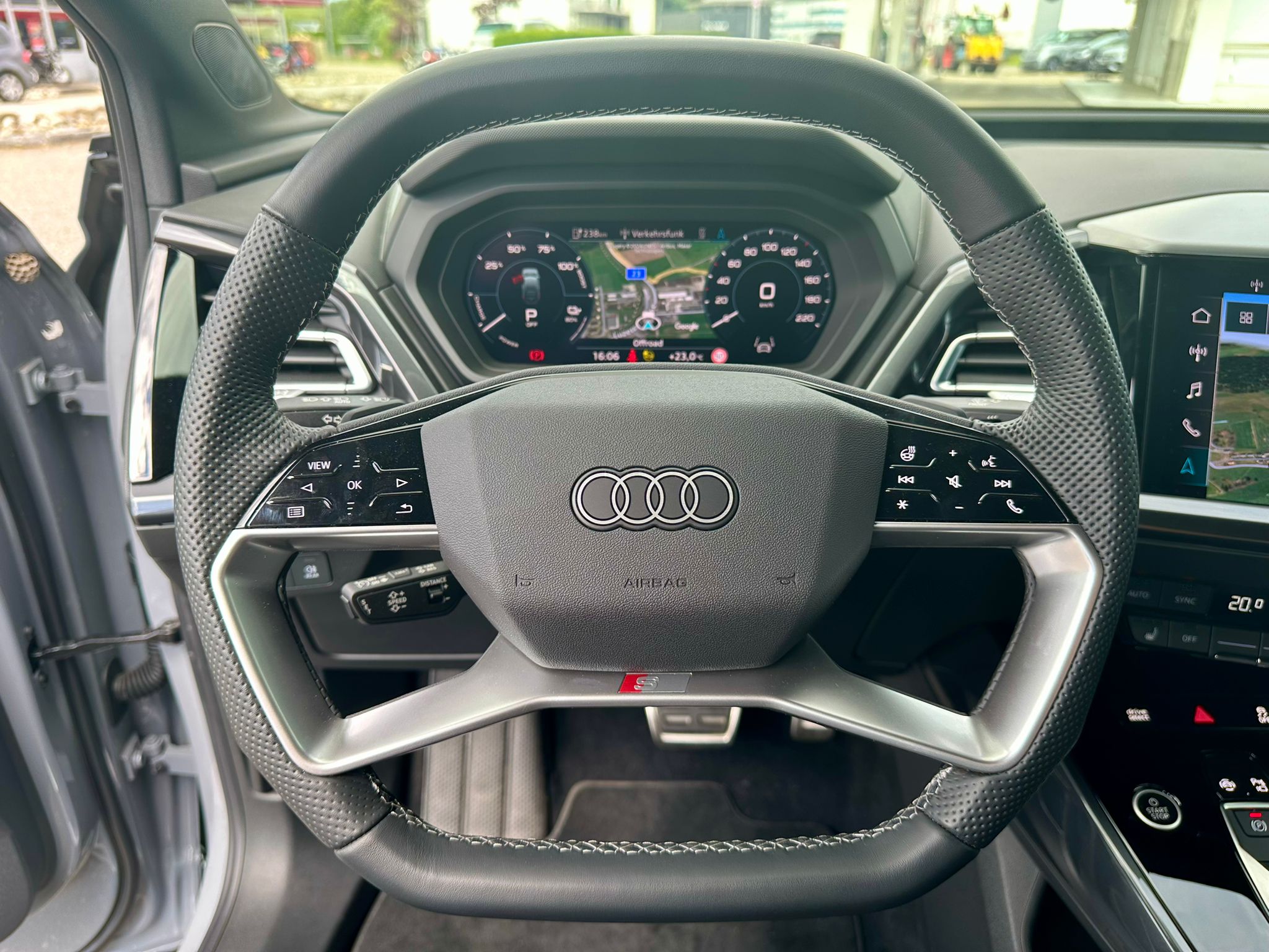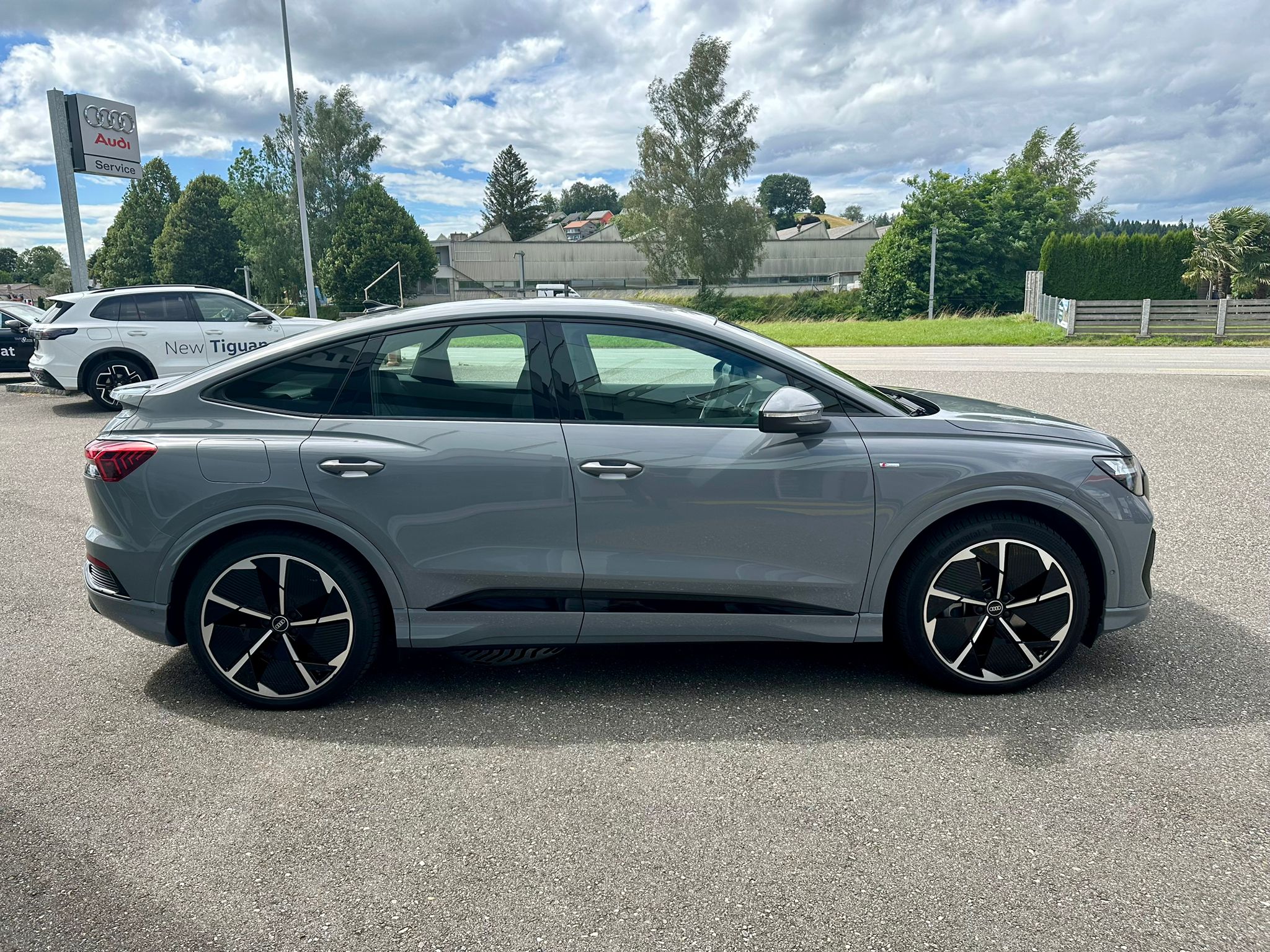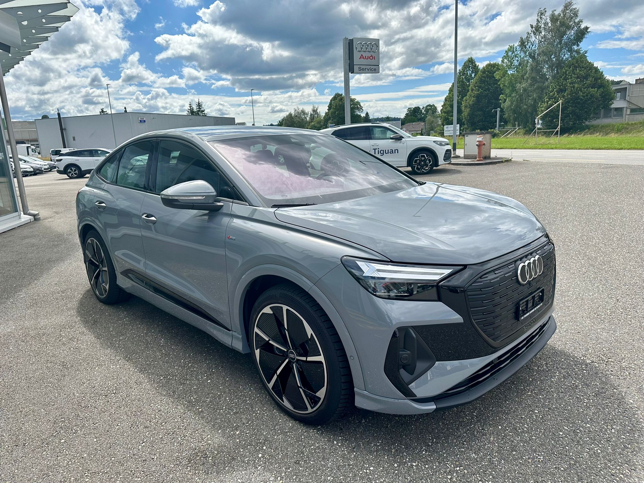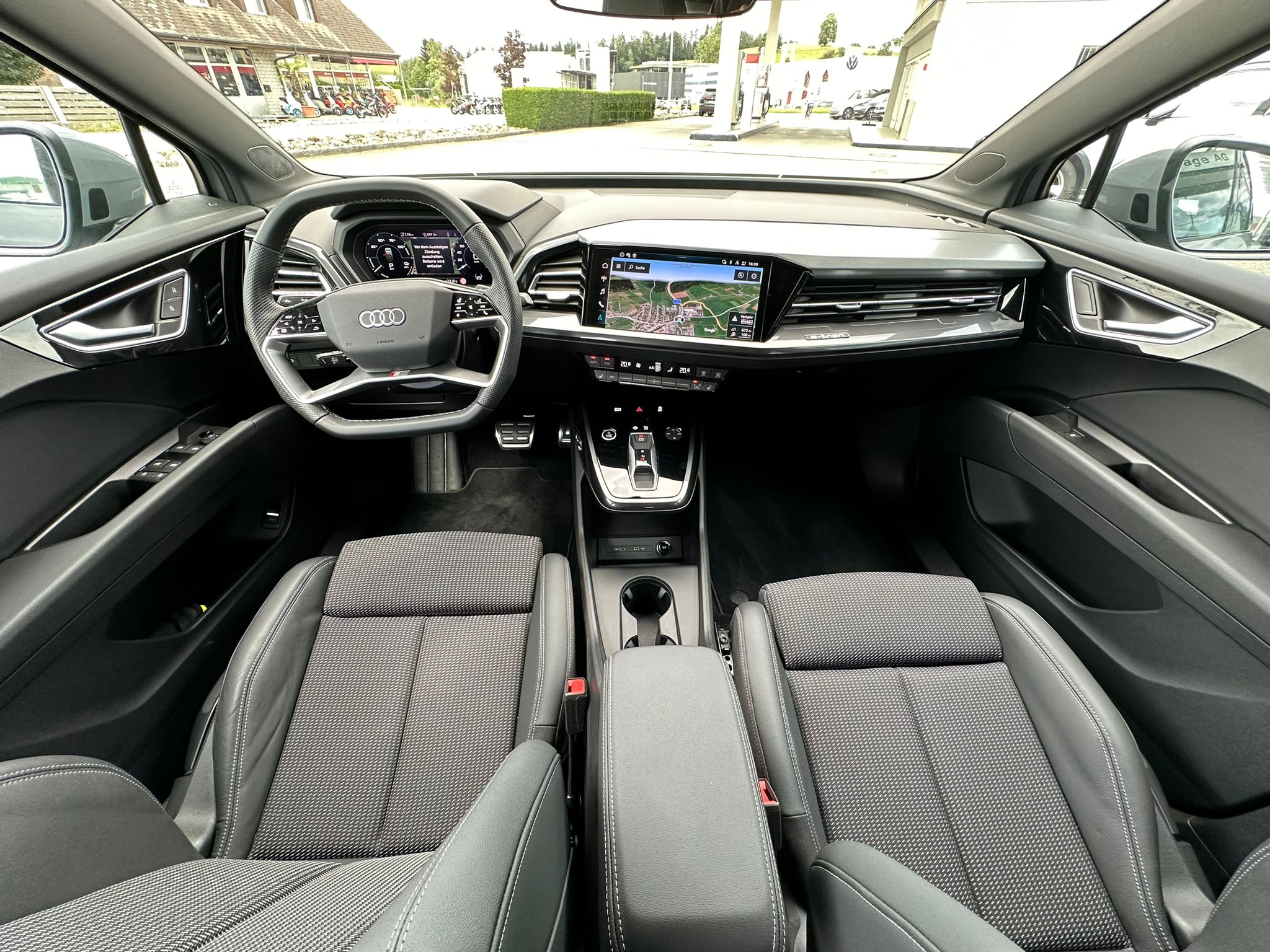 Assist: Parkassistent plus mit Einparkhilfe mit Umgebungsanzeige Frontscheibe in Klimakomfort-/Akustikverglasung, drahtlos beheizbar Gepäckraumklappe elektrisch öffnend und schliessend Komfortschlüssel ohne Safelock Lackierung: Volllackierung Media: Audi connect Navigation & Infotainment plus Paket: Ablage- und Gepäckraumpaket Paket: Assistenzpaket plus Paket: Infotainmentpaket Schweiz Paket: Interieur S line mit Sportsitzen in Stoff / Kunstleder-Kombination schwarz Paket: Klimatisierungspaket Paket: Optikpaket schwarz Paket: S line Exterieur Paket Paket: Sicherheitspaket plus Räder: Leichtmetallräder Audi Sport, 5-Arm-Rotor-Aero, schwarz, glanzgedreht e-tron Ladesystem kompakt
