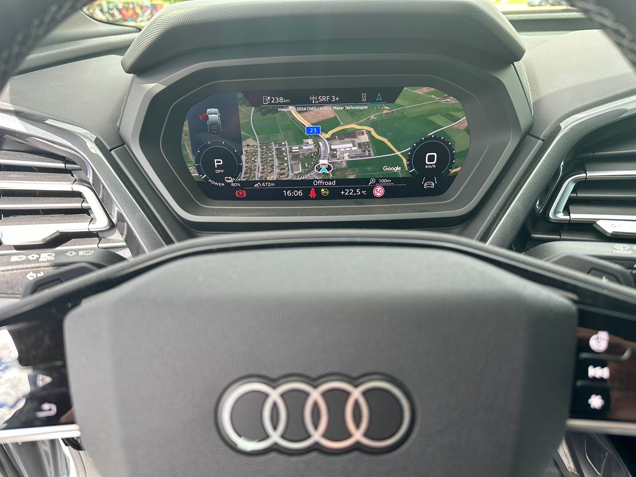 3-Punkt-Sicherheitsgurte auf allen Plätzen Airbag: Airbag für Fahrer und Beifahrer mit Beifahrer-Airbag-Deaktivierung Airbag: Seitenairbags vorn, mit Kopfairbag und Interaktionsairbag vorn Assist: Einparkhilfe hinten Assist: Geschwindigkeitsregelanlage mit einstellbarem Geschwindigkeitsbegrenzer Assist: Kamerabasierte Verkehrszeichenerkennung Assist: Proaktiver Insassenschutz Front, Seite und Heck Assist: Spurverlassenswarnung Dekor: Dekoreinlage Haptiklack schwarz Elektronisches Stabilitäts-Programm (ESP) Entfall Leistungs- / Technologie-Schriftzug Entfall Modellbezeichnung und Leistungs- / Technologie-Schriftzug Fahrwerk: Komfortfahrwerk Funkschlüssel, ohne Safelock Garantie: 2 Jahre ohne Kilometerbegrenzung (ab 1. Inv.) Garantie: Audi Swiss Service Package + (ASSP+) Gepäckraumklappe (manuell) Gepäckraumklappe elektrisch öffnend und schliessend Getriebe: Direktantrieb, kein Getriebe Haushaltsstecker Typ J (Schweiz) für das e-tron Ladesystem Industriestecker CEE 16A, 400V, lang und gerade für das e-tron Ladesystem Klima: Komfort Standklimatisierung Klima: Standklimatisierung Komfortmittelarmlehne vorne Lackierung: Uni-Lackierung Ladekabel Mode 3 Typ 2 32A Lenkrad: Doppelspeichen-Sportlederlenkrad, oben und unten abgeflacht mit Multifunktion Licht: Drittes Bremslicht Licht: Nebelschlussleuchte Media: Bluetooth-Schnittstelle Media: Digitaler Radioempfang (DAB) Modellbezeichnung Technologieschriftzug Performance Typenzeichen Paket: Advanced Exterieur Räder: Leichtmetallräder Audi Sport, 5-Arm-Rotor-Aero, schwarz, glanzgedreht - edition one Räder: Leichtmetallräder Audi Sport, 5-W-Speichen-Stern, bronze matt Räder: Leichtmetallräder, 5-Y-Speichen Räder: Reifendruck-Kontrollanzeige Räder: Reifenreparatur-Set (Tire Fit) Sitze: Interieur mit Normalsitzen in Stoff Index schwarz Sitze: Kindersitzbefestigung i-Size auf der Beifahrerseite und i-Size und Top Tether Sitze: Vordersitze heizbar Sitze: Vordersitze manuell einstellbar Verbandmaterial,Warndreieck und Warnveste Wegfahrsperre elektronisch Wärmeschutzverglasung grün getönt Zentralverriegelung mit Fernbedienung ohne Audi connect Navigation & Infotainment ohne Dacheinsatz (Volldach) ohne Ladekabel (Industriestecker) ohne Scheinwerferreinigungsanlage