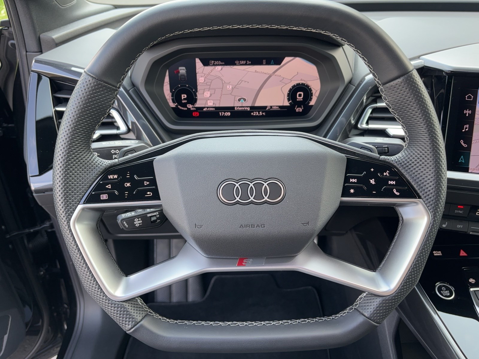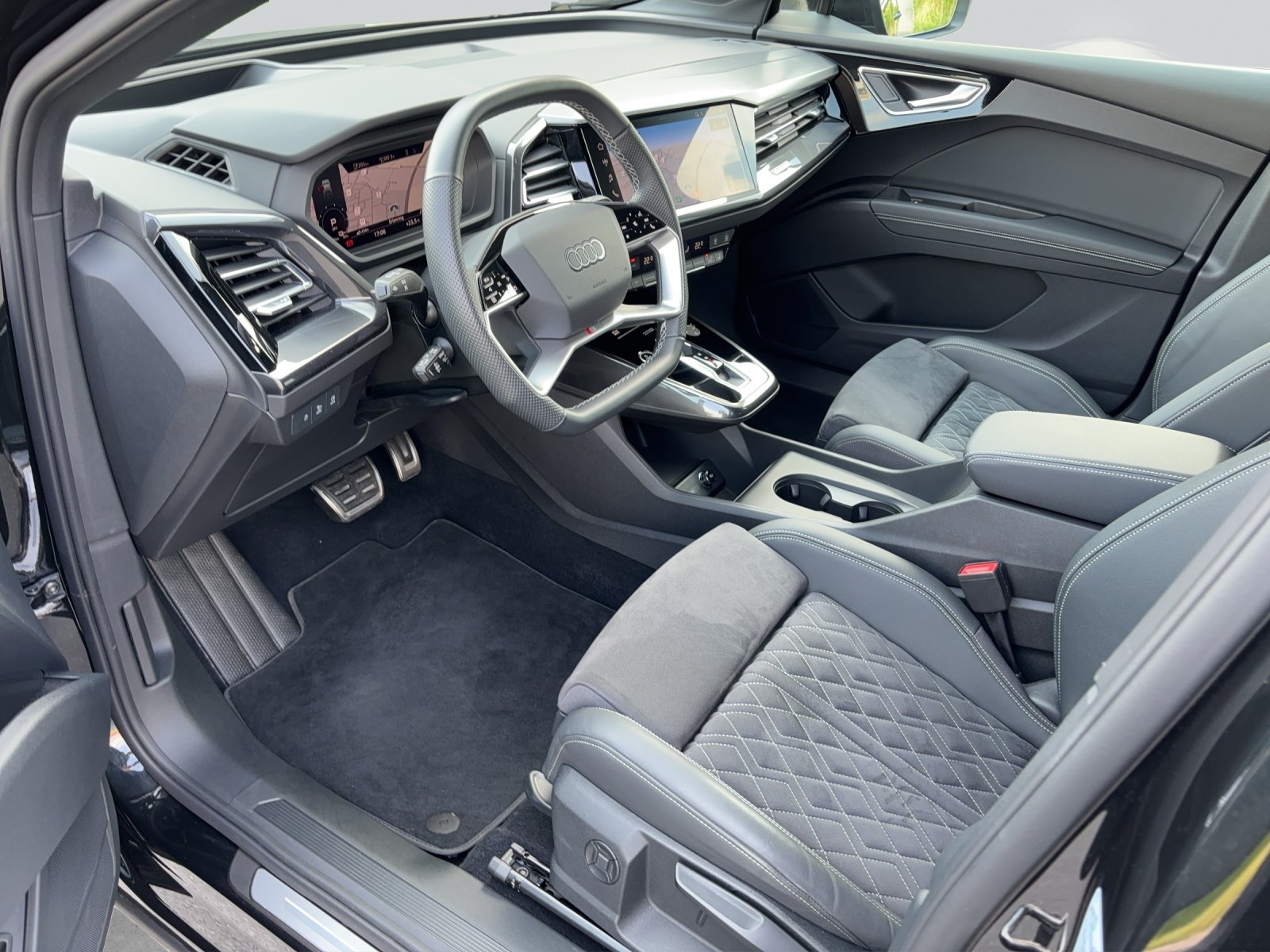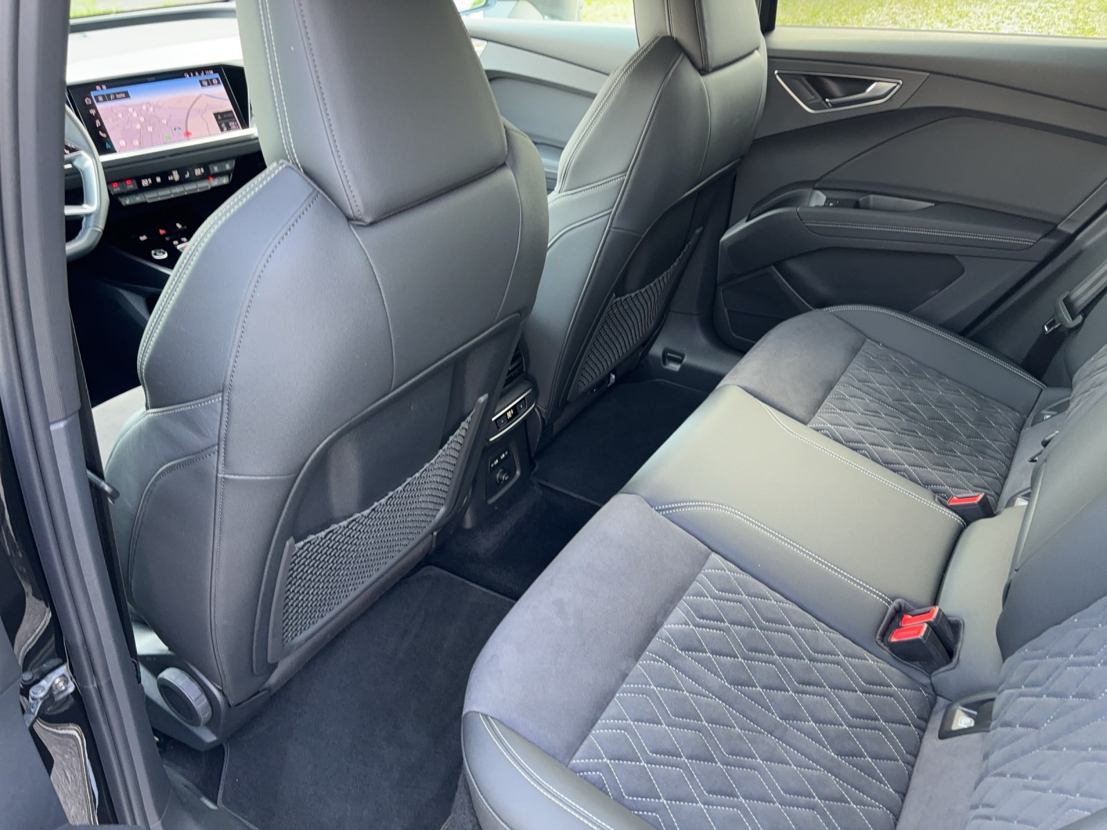 3-Punkt-Sicherheitsgurte auf allen Plätzen Airbag: Airbag für Fahrer und Beifahrer mit Beifahrer-Airbag-Deaktivierung Airbag: Seitenairbags vorn, mit Kopfairbag und Interaktionsairbag vorn Assist: Einparkhilfe hinten Assist: Geschwindigkeitsregelanlage mit einstellbarem Geschwindigkeitsbegrenzer Assist: Kamerabasierte Verkehrszeichenerkennung Assist: Proaktiver Insassenschutz Front, Seite und Heck Assist: Spurverlassenswarnung Dekor: Dekoreinlage Haptiklack schwarz Elektronisches Stabilitäts-Programm (ESP) Fahrwerk: Komfortfahrwerk Funkschlüssel, ohne Safelock Garantie: 2 Jahre ohne Kilometerbegrenzung (ab 1. Inv.) Gepäckraumklappe (manuell) Gepäckraumklappe elektrisch öffnend und schliessend Getriebe: Direktantrieb, kein Getriebe Klima: Komfort Standklimatisierung Klima: Standklimatisierung Komfortmittelarmlehne vorne Lackierung: Uni-Lackierung Ladekabel Mode 3 Typ 2 32A Lenkrad: Doppelspeichen-Sportlederlenkrad, oben und unten abgeflacht mit Multifunktion Licht: Drittes Bremslicht Licht: Nebelschlussleuchte Media: Bluetooth-Schnittstelle Media: Digitaler Radioempfang (DAB) Modellbezeichnung Technologieschriftzug Performance Typenzeichen Paket: Advanced Exterieur Räder: Reifendruck-Kontrollanzeige Räder: Reifenreparatur-Set (Tire Fit) Sitze: Interieur mit Normalsitzen in Stoff Index schwarz Sitze: Kindersitzbefestigung i-Size auf der Beifahrerseite und i-Size und Top Tether Sitze: Vordersitze heizbar Sitze: Vordersitze manuell einstellbar Verbandmaterial,Warndreieck und Warnveste Wegfahrsperre elektronisch Wärmeschutzverglasung grün getönt Zentralverriegelung mit Fernbedienung ohne Audi connect Navigation & Infotainment ohne Dacheinsatz (Volldach) ohne Ladekabel (Industriestecker) ohne Scheinwerferreinigungsanlage