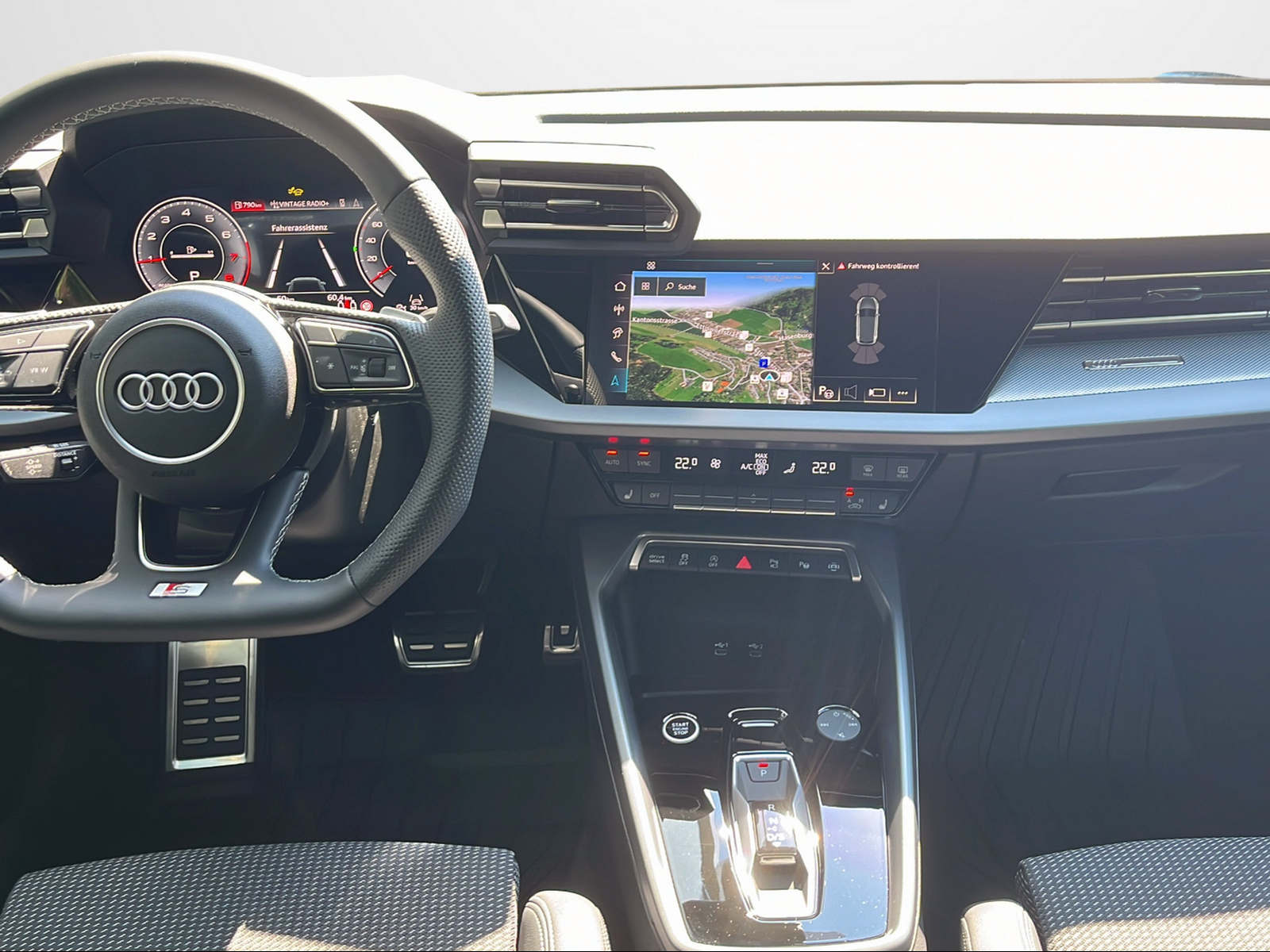 Airbag: Airbag Beifahrer deaktivierbar Assist: Ausweichassistent und Abbiegeassistent Assist: Einparkhilfe hinten Assist: Kamerabasierte Verkehrszeichenerkennung Assist: Proaktiver Insassenschutz Front, Seite und Heck Assist: Spurverlassenswarnung inkl. Notfallassistent Assist: Traktionskontrolle Audi connect Notruf & Service mit Audi connect Remote & Control Aussenspiegel elektrisch einstell- und beheizbar Aussenspiegel in Wagenfarbe Dekor: Dekoreinlage Feinlack vulkangrau Diffusor mit Akzenten in Chromoptik matt anthrazit Einleger der Lufteinlässe in Chromoptik matt anthrazit Elektrische Fensterheber vorne Elektronisches Stabilitäts-Programm (ESP) Fensterschachtleisten in Schwarz Funkschlüssel, ohne Safelock Garantie: 2 Jahre ohne Kilometerbegrenzung (ab 1. Inv.) Getriebe: 7-Gang- Automat S tronic Interieur mit Normalsitzen in Stoff schwarz Kindersicherung, elektrisch Klima: 1-Zonen-Klimaautomatik mit Vorbereitung für weitere Klimafunktionen Lackierung: Uni-Lackierung Lenkrad: Lederlenkrad im 3-Speichen-Design mit Multifunktion plus und Schaltwippen Media: Audi phone box light Media: USB-Anschlüsse mit Ladefunktion im Fond Paket: Ambiente Lichtpaket Räder: Reifendruck-Kontrollanzeige Räder: Reifenreparatur-Set (Tire Fit) Räder: Räder, 5-V-Speichen S-Kühlerschutzgitter in Titanschwarz Schwellerleisten in Chromoptik matt anthrazit Sitze: Rücksitzlehne umklappbar Sitze: i-Size und Top Tether für die äusseren Fondsitze Wegfahrsperre elektronisch Zentralverriegelung mit Fernbedienung
