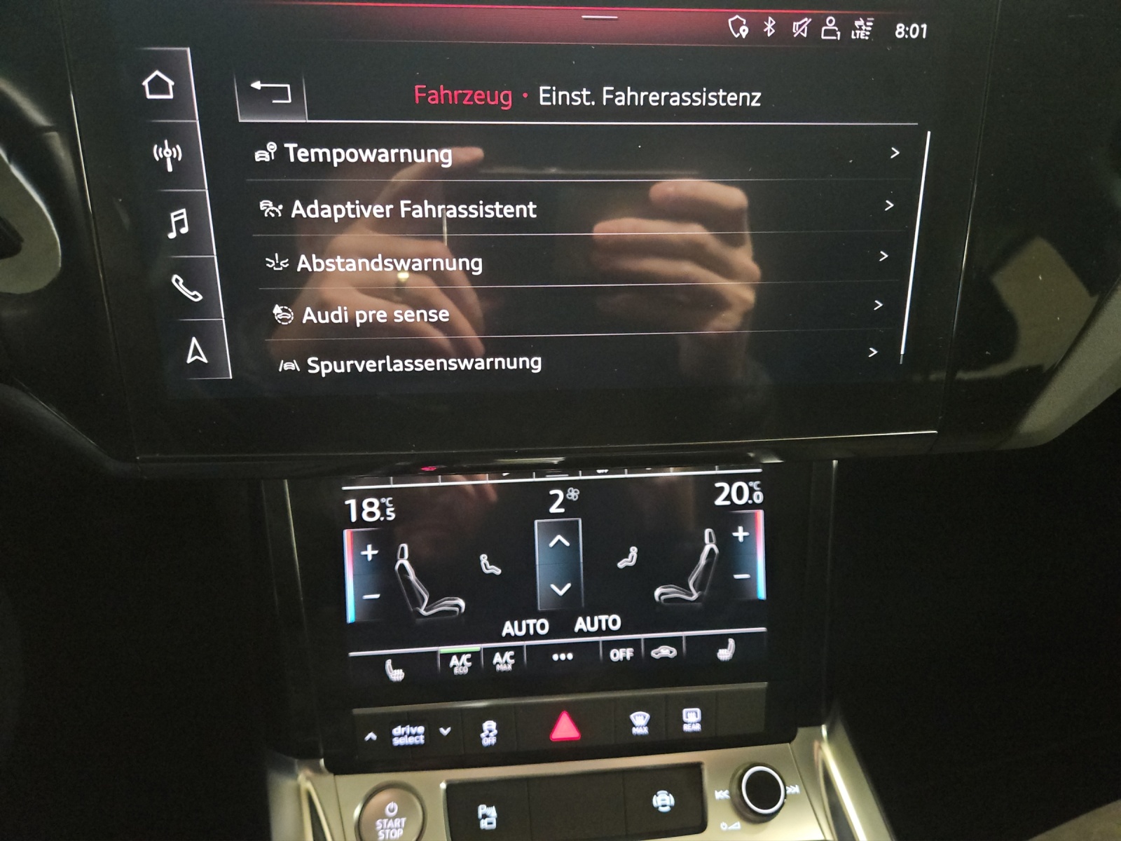 1-Gang Getriebe automatisiert 2 zusätzliche 12V-Anschlüsse 3-Punkt-Sicherheitsgurte auf allen Plätzen Adaptive air suspension: elektronisch geregelte Luftfederung Airbag: Airbag Beifahrer deaktivierbar Airbag: Airbag Fahrer und Beifahrer Airbag: Window-Kopfairbags Alu-Räder im 5-Arm-Design, 20J Assist: Bremsassistent (BAS) Assist: Einparkhilfe plus Assist: Spurverlassenswarnung Aussenspiegel in Wagenfarbe Aussenspiegel rechts und links beheizbar und elektrisch verstellbar Einstiegsschienen verchromt Garantie: 2 Jahre ohne Kilometerbegrenzung (ab 1. Inv.) Gepäckraumklappe elektrisch öffnend und schliessend Höhenverstellbare Gurten vorne ISOFIX Kindersitzvorrichtung Innenspiegel automatisch abblendbar Kindersitzvorrichtung ISOFIX Beifahrerseite Klima: 2-Zonen-Klimaautomatik Klima: Pollenfilter (Staubfilter) Lackierung: Uni-Lackierung Ladekabel für Industriesteckdose Lenkrad: Lenkrad längs- und höhenverstellbar Lenkrad: Progressivlenkung Licht: Drittes Bremslicht Licht: Nebelschlussleuchte Media: Audi connect (3 Jahre) Media: Audi music interface Media: Bluetooth-Schnittstelle Media: Digitaler Radioempfang (DAB) Media: MMI Navigationssystem Plus Mittelarmlehne vorn in Kunstleder schwarz mit Kontrastnaht in Rot Multifunktionslenkrad in Leder mit Polster: Stoff-Ausstattung Räder: Reifendruck-Kontrollanzeige Räder: Reifenreparatur-Set (Tire Fit) Rücksitzlehne geteilt abklappbar Scheibenwischer vorne mit Intervall Seitenairbag für Fahrer und Beifahrer Sitze: Vordersitze manuell verstellbar Sonnenblende Fahrer und Beifahrerseite mit beleuchtetem Spiegel Stossfänger in Kontrastlackierung Tempomat mit Geschwindigkeitsbegrenzer Teppichfussmatten vorne und hinten Verbandmaterial und Warndreieck Wegfahrsperre elektronisch Zentralverriegelung mit Fernbedienung