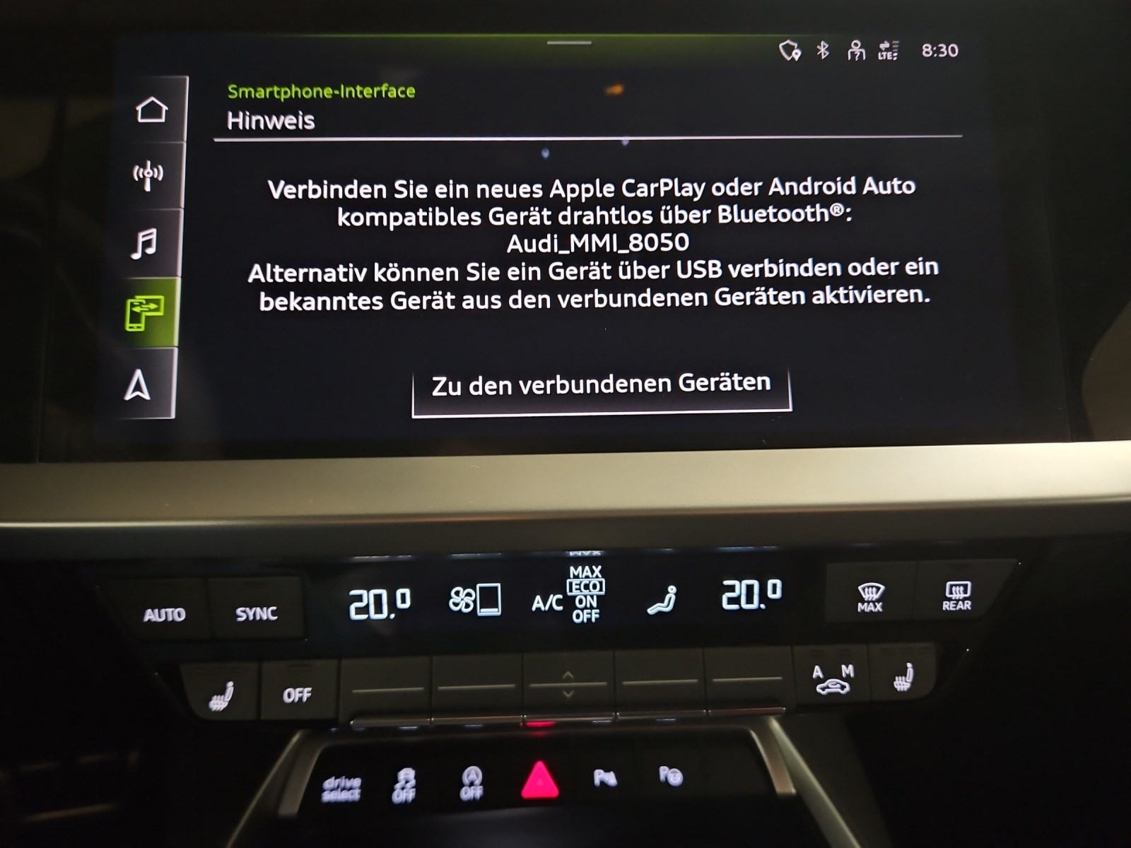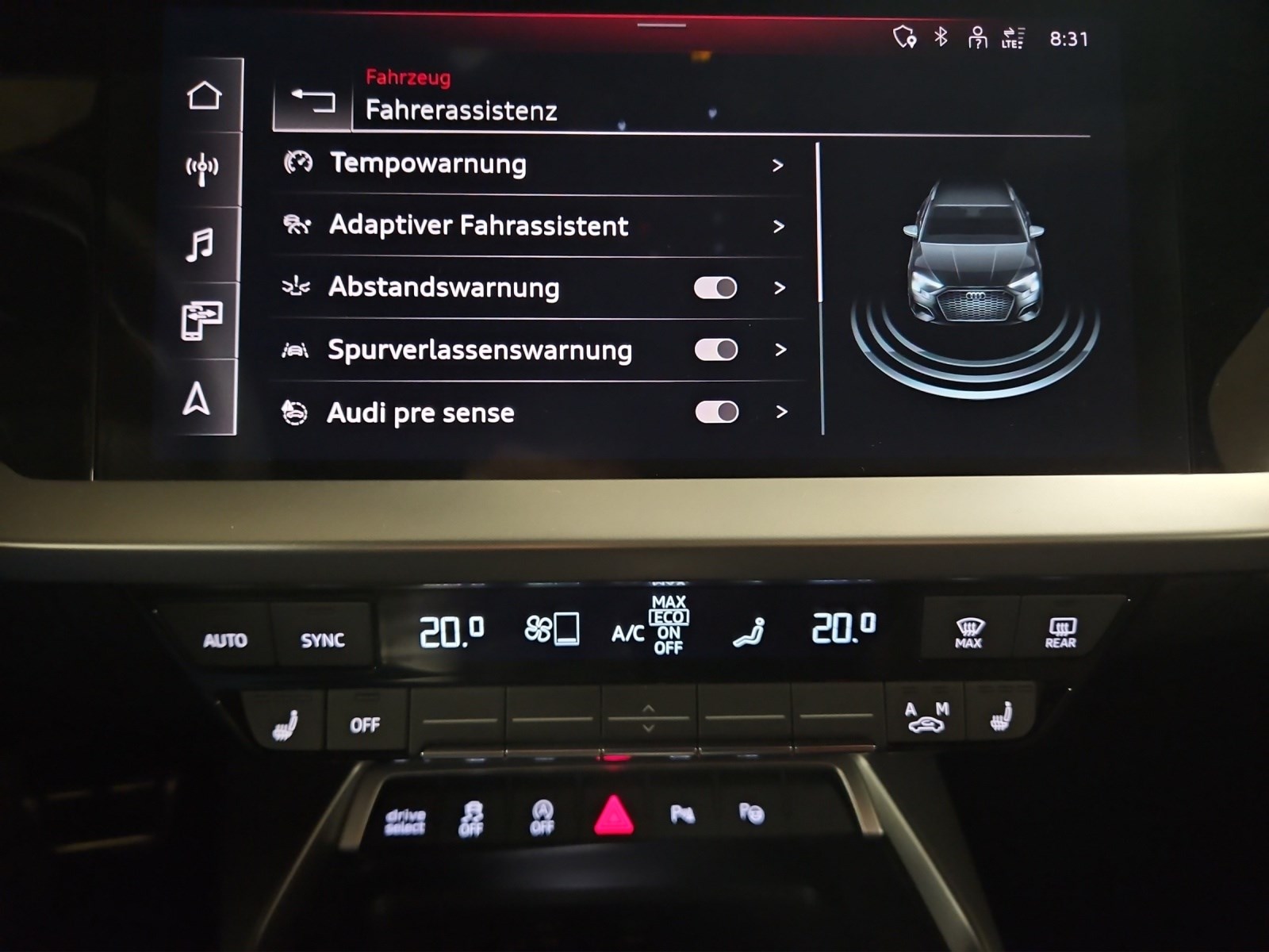 Sonderausstattung Assist: Parkassistent mit Einparkhilfe plus Assist: Spurwechselwarnung mit Ausstiegswarnung und Querverkehrassistent hinten Audi virtual cockpit plus Aussenspiegel rechts und links beheizbar und elektrisch anklappbar, automatisch abblendend Dekor: Aluminiumoptik im Interieur Dekor: Dekoreinlagen Aluminium Spektrum dunkel Entfall Modellbezeichnung und Leistungs- / Technologie-Schriftzug Fahrwerk: Fahrwerk mit Dämpferregelung Klima: 2-Zonen-Komfortklimaautomatik Komfortschlüssel ohne Safelock Kontrastnähte in Rot Audi Sport Licht: Fernlicht-Assistent Licht: LED-Scheinwerfer mit LED-Heckleuchten und dynamischem Blinklicht Heck Media: Audi Smartphone Interface Media: Audi connect Navigation & Infotainment plus Media: MMI Navigationssystem Plus Paket: Ablagen- und Gepäckraumpaket Paket: Ambiente Lichtpaket Paket: Communicationpaket Paket: Optikpaket schwarz Rahmenloser Innenspiegel automatisch abblendbar Räder: Leichtmetallräder - 18 Zoll - 5-Arm-Dynamik Sitze: Rücksitzlehne, geteilt umklappbar Sitze: Vordersitze elektrisch verstellbar Sitze: Vordersitze heizbar Türen: Komfortöffnung Gepäckraumklappe