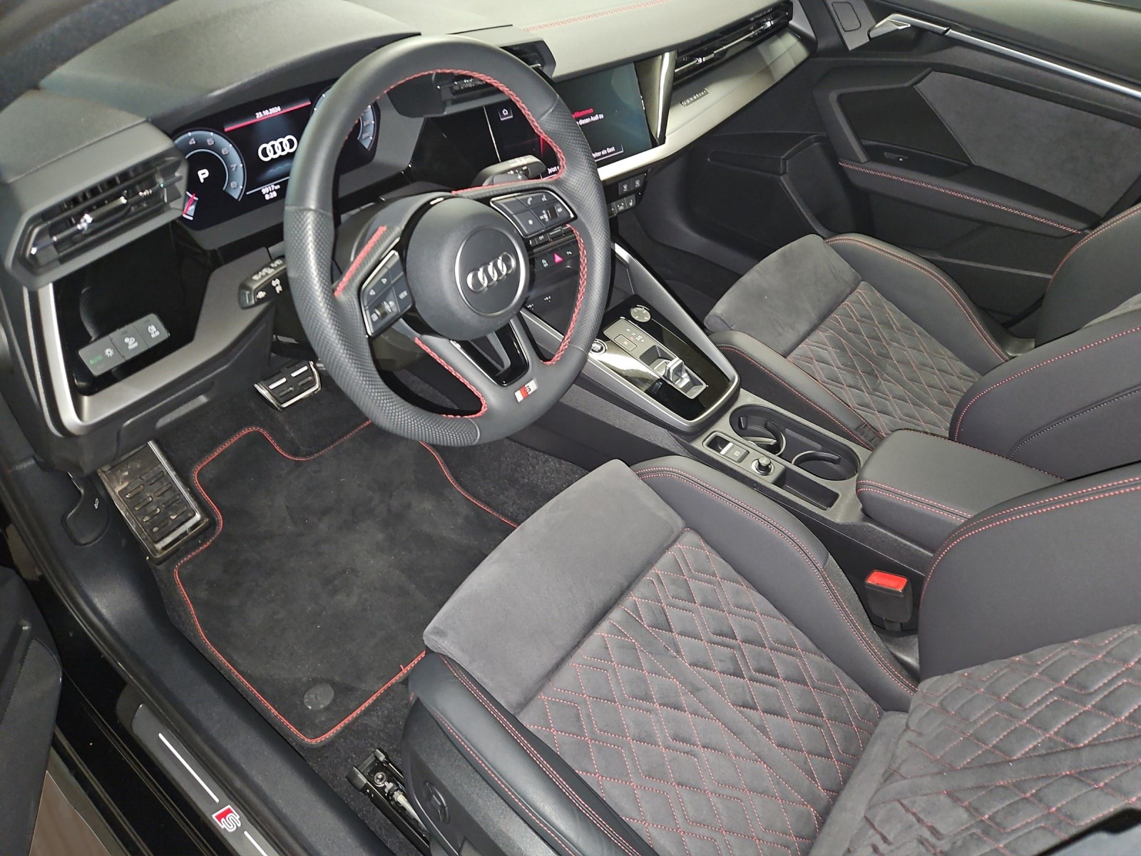 [0E] mythosschwarz metallic [A41] Audi Swiss Service Package+ [AR] schwarz - expressrot [N5J] Polster: Microfaser Dinamica/Kunstleder mono pur 550-Kombination ***CH-Fahrzeug/Swiss Service Package mit 10 Jahre oder 100.000 KM Gratisservice***