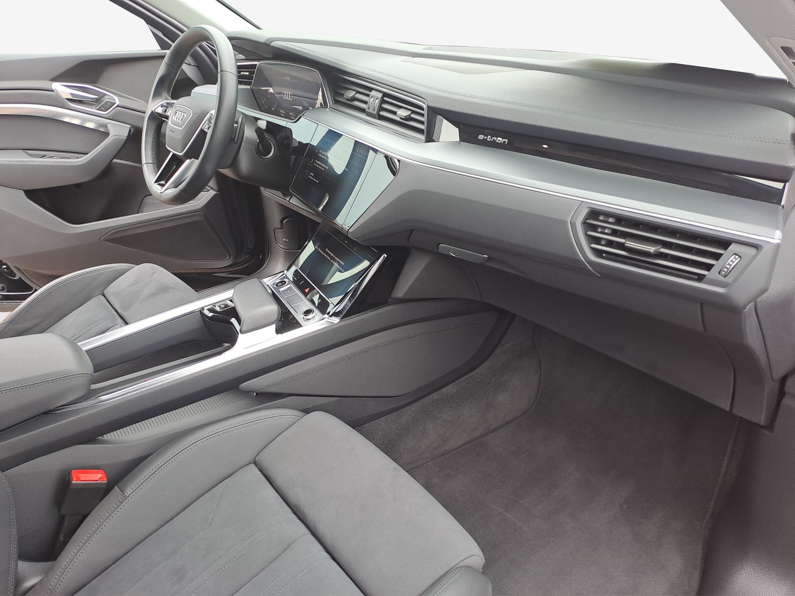 Serienausstattung Airbag: Airbag Beifahrer deaktivierbar Airbag: Seitenairbags vorne Airbag: Window-Kopfairbags Akustisches Fahrzeug-Warnsystem (AVAS) Assist: Audi pre sense front Assist: Geschwindigkeitsregelanlage inklusive Geschwindigkeitsbegrenzer Assist: Spurverlassenswarnung Audi connect Notruf & Service mit Audi connect Remote & Control Aussenspiegel elektrisch einstell- und beheizbar Aussenspiegel in Wagenfarbe Bedientasten schwarz matt Dachhimmel in Stoff mondsilber Dekor: Dekoreinlagen Feinlack graphitgrau Diffusor hinten, schwarz lackiert Einleger Türaufsatzleiste schwarz lackiert Einparkhilfe plus mit Umgebungsanzeige Einstiegsleisten mit Aluminiumeinlegern vorne und hinten Fahrwerk: Adaptive air suspension Frontscheibe in Wärmeschutz- und Akustikverglasung Fussmatten vorne und hinten Garantie: 2 Jahre ohne Kilometerbegrenzung (ab 1. Inv.) Gepäckraumabdeckung (manuell) Gepäckraumklappe elektrisch öffnend und schliessend Haushaltsstecker Typ J (CH) Industriestecker CEE 16A, 400V, lang und gerade für das e-tron Ladesystem Innenspiegel automatisch abblendbar Kindersitzbefestigung ISOFIX und Top Tether für die Rücksitzbank Kindersitzvorrichtung ISOFIX Beifahrerseite Klima: 2-Zonen-Komfortklimaautomatik Klima: Standklimatisierung Lackierung: Uni-Lackierung Lenkrad: Doppelspeichen-Lederlenkrad mit Multifunktion und Schaltwippen Licht: LED-Scheinwerfer mit Vorbereitung für weitere Lichtfunktionen und LED-Heckleuchten Licht: Scheinwerfer-Reinigungsanlage Media: Audi connect Navigation & Infotainment Media: Audi music interface Media: Bluetooth-Schnittstelle Media: Digitaler Radioempfang (DAB) Media: MMI Navigationssystem Plus Modellbezeichnung und Leistungs- / Technologie-Schriftzug On-Board-Ladegerät bis 11 kW (AC) Räder: Leichtmetallräder 19", 5-Arm-Aero, mit Grafikdruck Räder: Reifendruck-Kontrollanzeige Räder: Reifenreparatur-Set (Tire Fit) Sitze: Vordersitze höhenverstellbar Sonnenblende Fahrer und Beifahrerseite mit beleuchtetem Spiegel Stossfänger vorn und hinten, Radlaufblenden und Schweller anthrazit genarbt Unterfahrschutz vorn, schwarz glänzend Verbandmaterial und Warndreieck e-tron Ladesystem kompakt