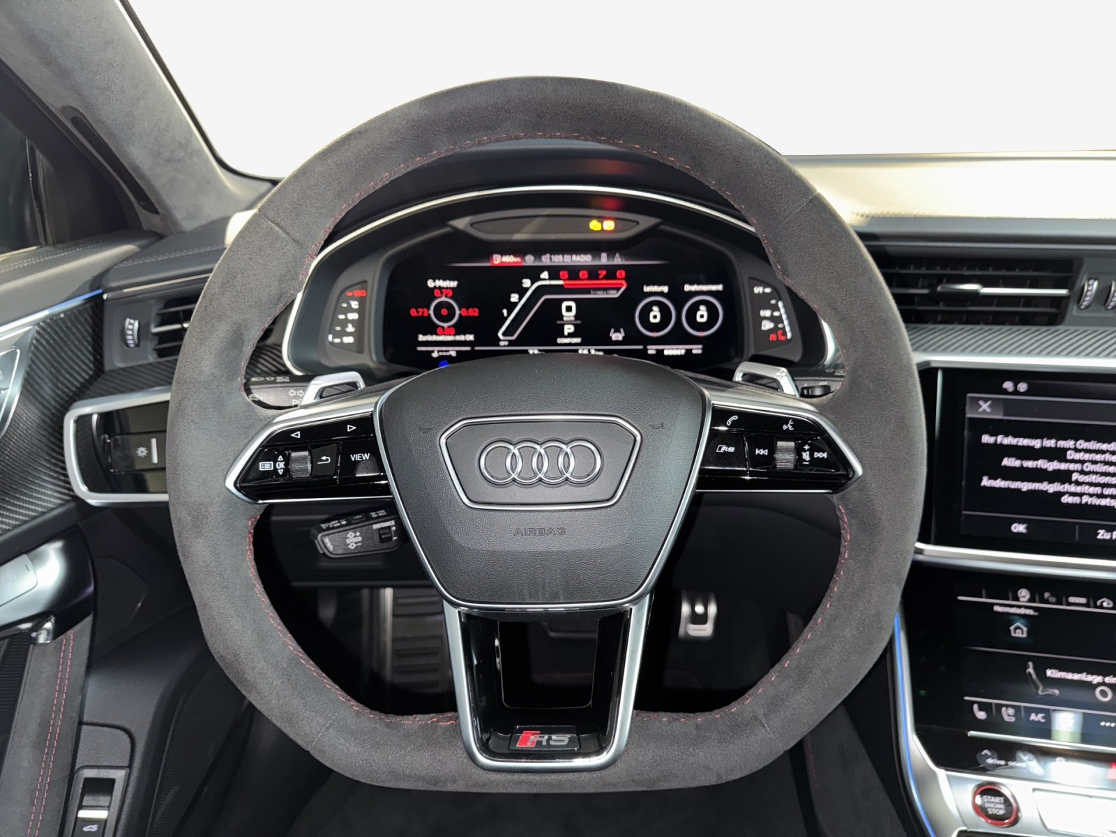 Audi Ringe und Schriftzüge in Schwarz glänzend Audi virtual cockpit plus mit zusätzlichem RS-Layout Dachhimmel in Alcantara schwarz Dekor: Dekoreinlagen Carbon Köper Struktur Fahrwerk: RS-Sportfahrwerk plus mit Dynamic Ride Control (DRC) Klima: Standheizung und -lüftung (ohne Funkfernbedienung) Komfortschlüssel mit sensorgesteuerter Gepäckraumentriegelung Media: USB-Anschlüsse mit Ladefunktion im Fond Paket: Assistenzpaket plus Paket: Optikpaket Carbon/schwarz glänzend Paket: RS-Designpaket rot plus Panorama-Glasdach 2-teilig Privacy-Verglasung (Scheiben abgedunkelt) Schienensystem im Laderaum mit Fixierset Sitze: RS-Sportsitze vorn in Leder Valcona Sitze: Sitzheizung vorne und hinten Türen: Servoschliessung für die Türen