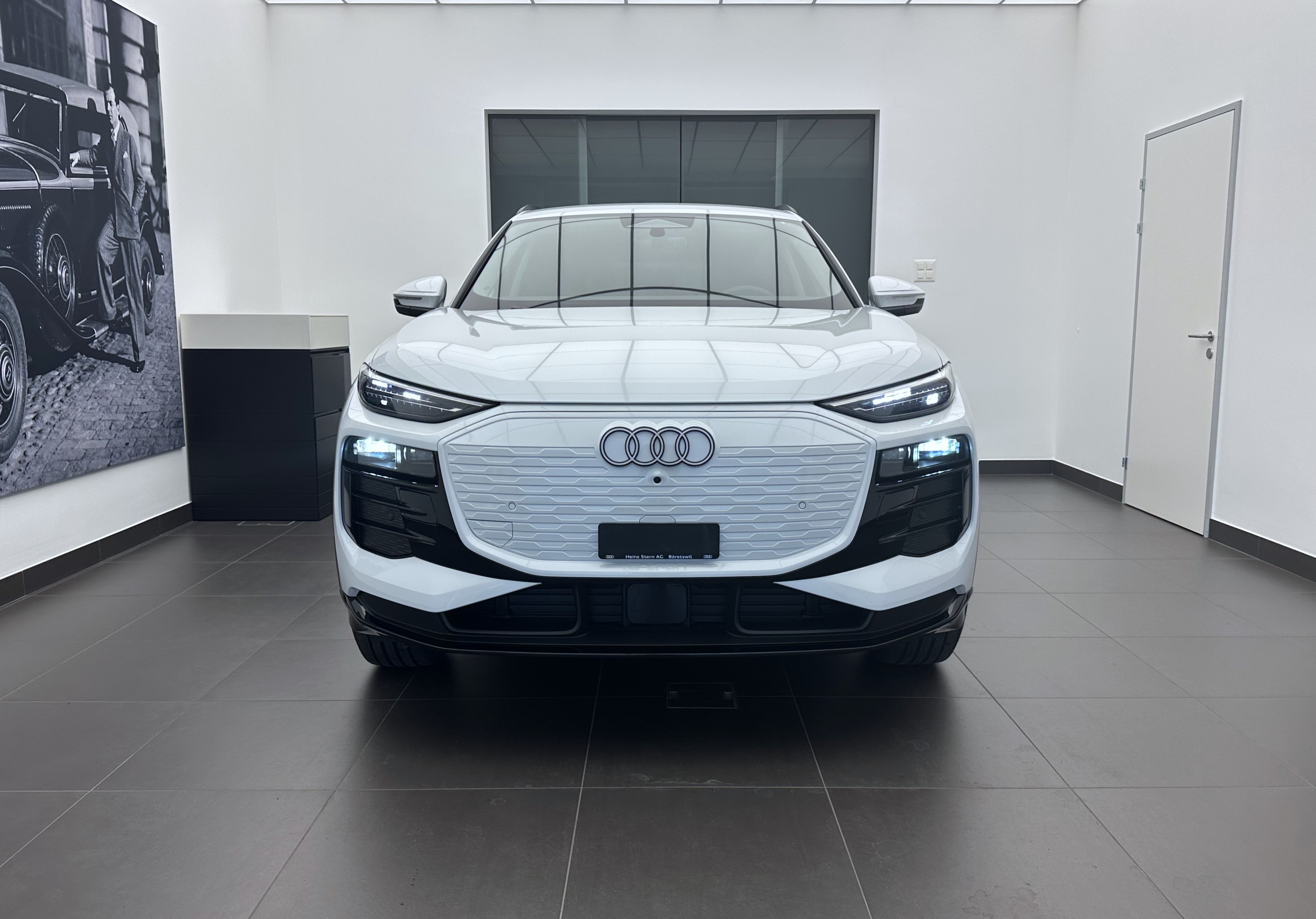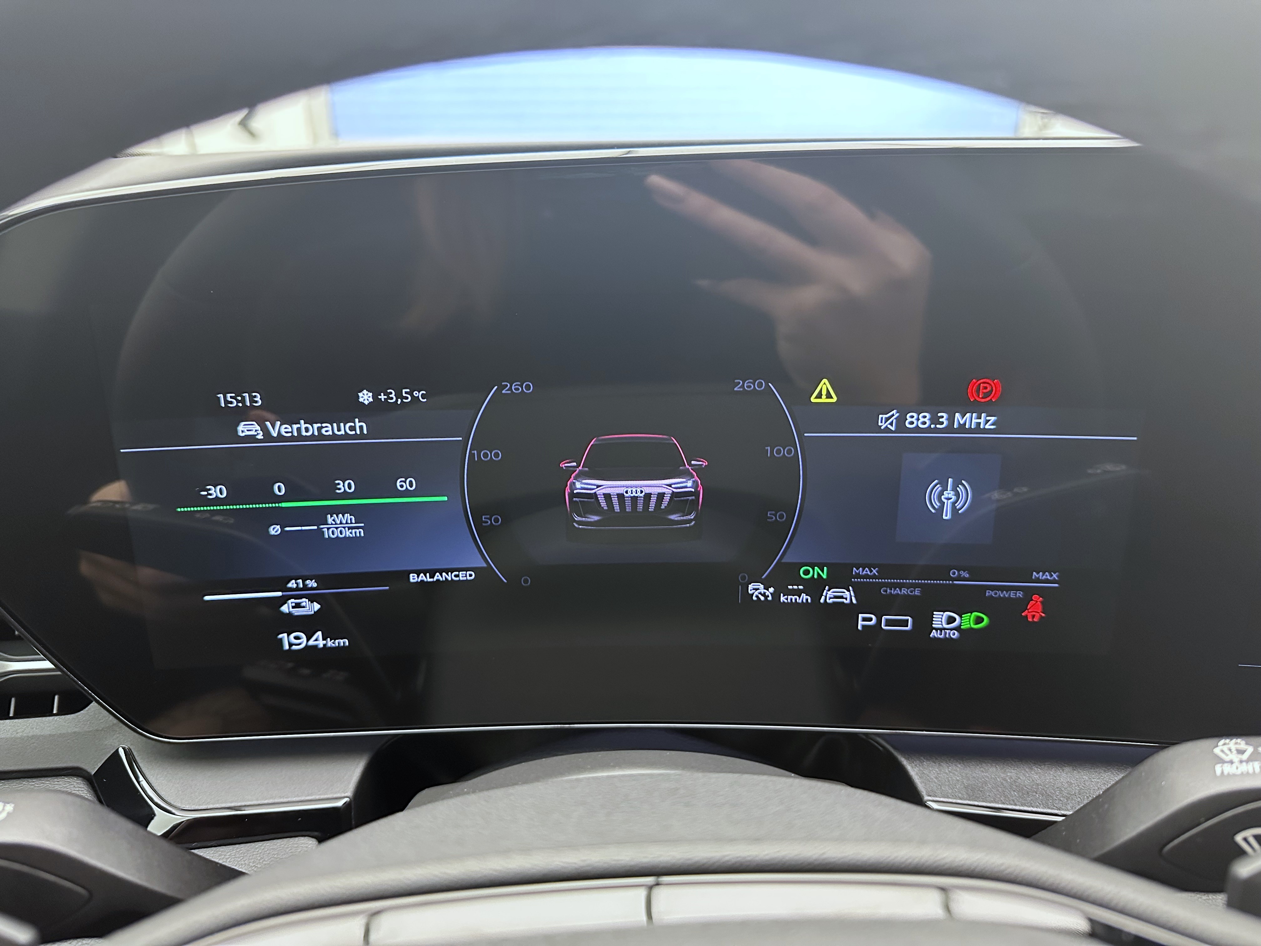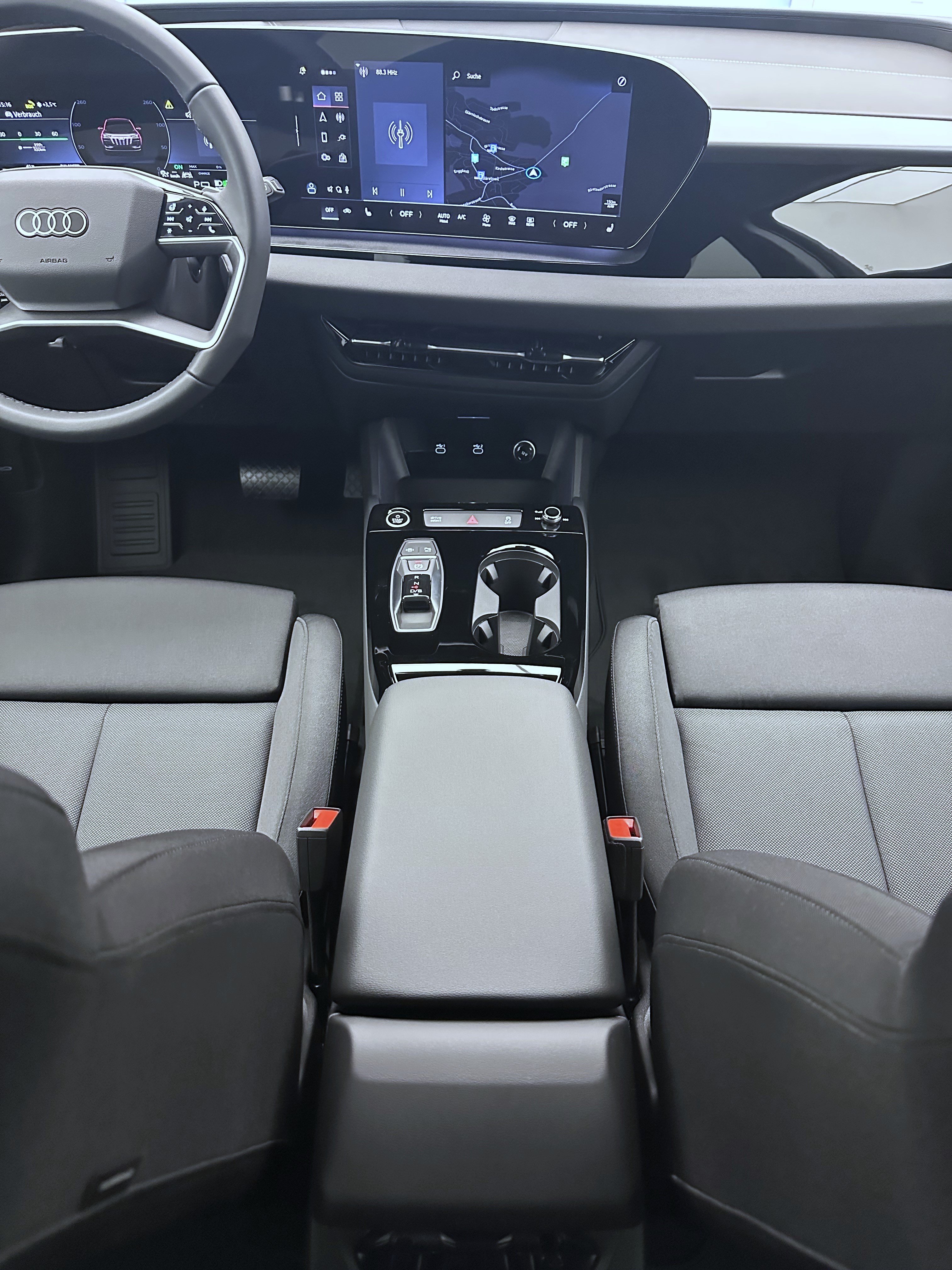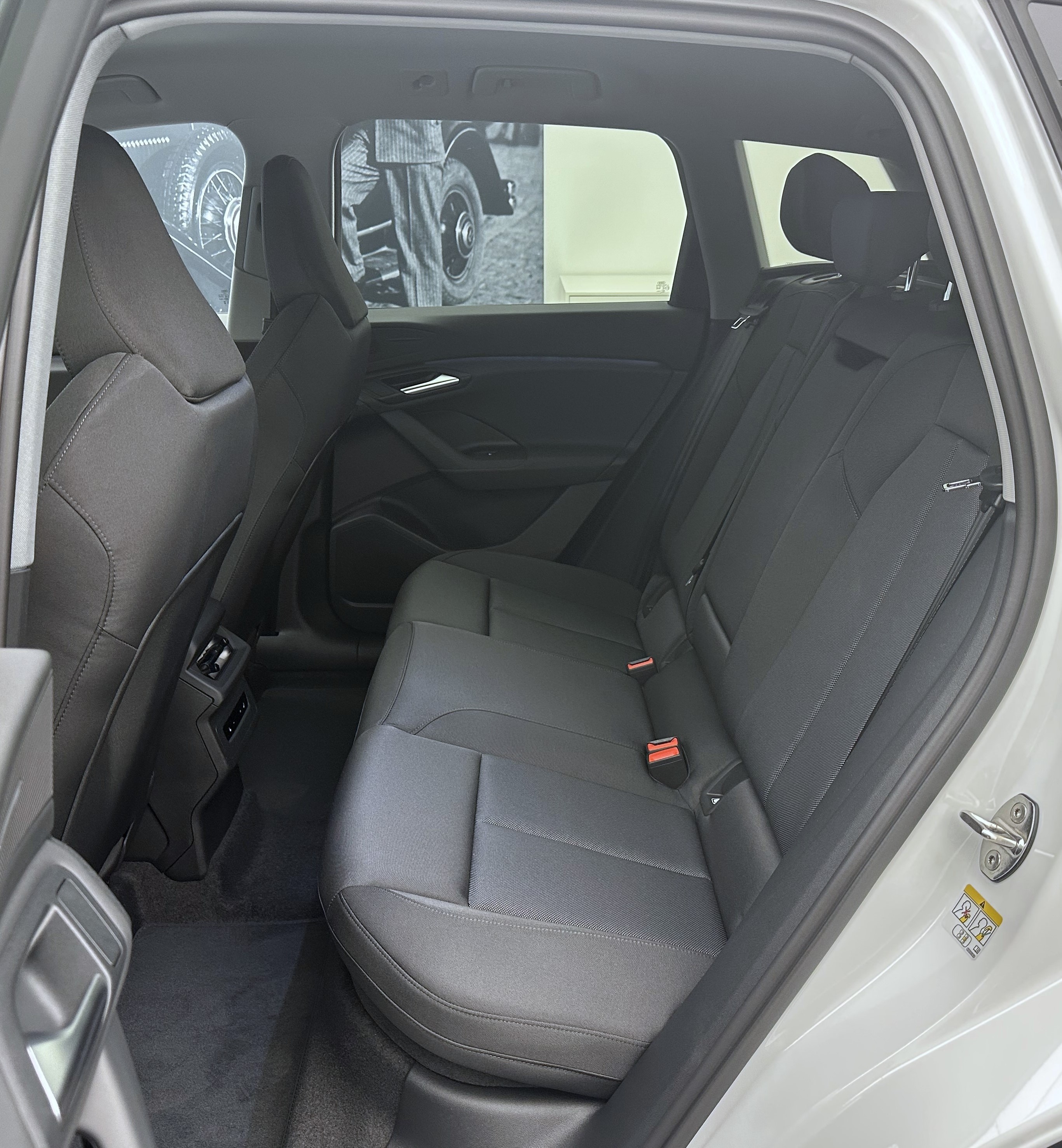 Airbag: Airbag Beifahrer deaktivierbar Airbag: Airbag Fahrer und Beifahrer Airbag: Seitenairbag vorn, mit Kopfairbag und Interaktionsairbag vorn Akustisches Fahrzeug-Warnsystem (AVAS) Assist: Adaptiver Geschwindigkeitsassistent Assist: Aufmerksamkeits- und Müdigkeitserkennung Assist: Ausweichassistent und Abbiegeassistent Assist: Einparkhilfe plus mit Distanzanzeige Assist: Kamerabasierte Verkehrszeichenerkennung Assist: Kreuzungsassistent Assist: Notbremsassistent vorn Assist: Parkassistent plus Assist: Spurverlassenswarnung Assist: Spurwechsel- und Ausstiegswarnung, Querverkehrassistent hinten und Abbiegeassistent hinten Assist: Traktionskontrolle Assist: Verkehrszeichenbasierter Geschwindigkeitsbegrenzer Audi connect Notruf & Service mit Audi connect Remote & Control Audi virtual cockpit plus Aussenspiegel elektrisch einstell-, beheiz- und anklappbar, beidseitig automatisch abblendend Aussenspiegel in Wagenfarbe Dachhimmel Stoff, Farbe felsgrau Dekor: Dekoreinlage Feinlack vulkangrau Dekor: Instrumententafel-Oberseite schwarz mit Kontrastnaht Dekor: Interieurelemente oben und unten Kunstleder Einstiegsleisten mit Aluminiumeinlegern vorn Elektrische Fensterheber vorne Elektronisches Stabilitäts-Programm (ESP) Fahrwerk: Komfortfahrwerk Fensterzierleisten schwarz Fussmatten vorne und hinten Garantie: Audi Garantie 2 Jahre ohne Kilometerbegrenzung (ab 1. Inv.) Garantie: Audi Swiss Service Package + (ASSP+) Getriebe: Direktantrieb, kein Getriebe Innenspiegel automatisch abblendbar Interieur mit Normalsitzen, Stoff schwarz Klima: 3-Zonen-Klimatisierungsautomatik Klima: Automatische Umluftregelung Klima: Elektrische Luftzusatzheizung Komfortmittelarmlehne vorne Komfortschlüssel ohne Safelock Lackierung: Kontrastlackierung Lackierung: Uni-Lackierung Magnetgrau Ladekabel Mode 3 für öffentliches Laden bis 22 kW Lenkrad: Doppelspeichen-Lederlenkrad mit Multifunktion und Schaltwippen Lenkrad: Lenkrad längs- und höhenverstellbar Lenkrad: Lenkrad mit Applikation in Chromoptik Licht: Fernlicht-Assistent Licht: LED-Heckleuchten pro Licht: LED-Scheinwerfer plus Licht: Projektionsleuchte in den Aussenspiegeln Licht: Tagesfahrlicht mit Assistenzfahrlicht u.Coming- u. Leaving-home Funktion automatisch Media: Audi Application Store und Smartphone-Interface Media: Audi connect Navigation & Infotainment Media: Digitaler Radioempfang Media: FOD Funktionen online verfügbar Media: MMI experience plus Media: Telefonablage mit induktiver Ladefunktion Media: USB-Anschlüsse mit Ladefunktion in erster und zweiter Sitzreihe Modellkennzeichnung am Heck On-board-Ladegerät bis 11 kW (AC) Paket: Ambiente Lichtpaket Räder: Reifendruck-Kontrollanzeige Räder: Reifenreparatur-Set (Tire Fit) Räder: Räder, 10-Speichen Rücksitzbank ungeteilt,Lehne geteilt Scheiben seitlich und hinten in Wärmeschutzverglasung Scheinwerfer-Reinigungsanlage Sitze: Kindersitzbefestigung i-Size auf der Beifahrerseite und i-Size und Top Tether Sitze: Rücksitzbank ungeteilt, Lehne geteilt umlegbar (dreiteilig) mit Mittelarmlehne Sitze: Sitzheizung vorne und hinten Sitze: Vordersitze manuell einstellbar Türen: Gepäckraumklappe elektrisch öffnend und schliessend Türgriffe aussen in Wagenfarbe Verbandmaterial,Warndreieck und Warnveste Vorbereitung für Anhängevorrichtung Vorbereitung für intelligente Ladefunktionen Wegfahrsperre elektronisch Wärmeschutz- und Akustikverglasung Frontscheibe Zentralverriegelung mit Fernbedienung