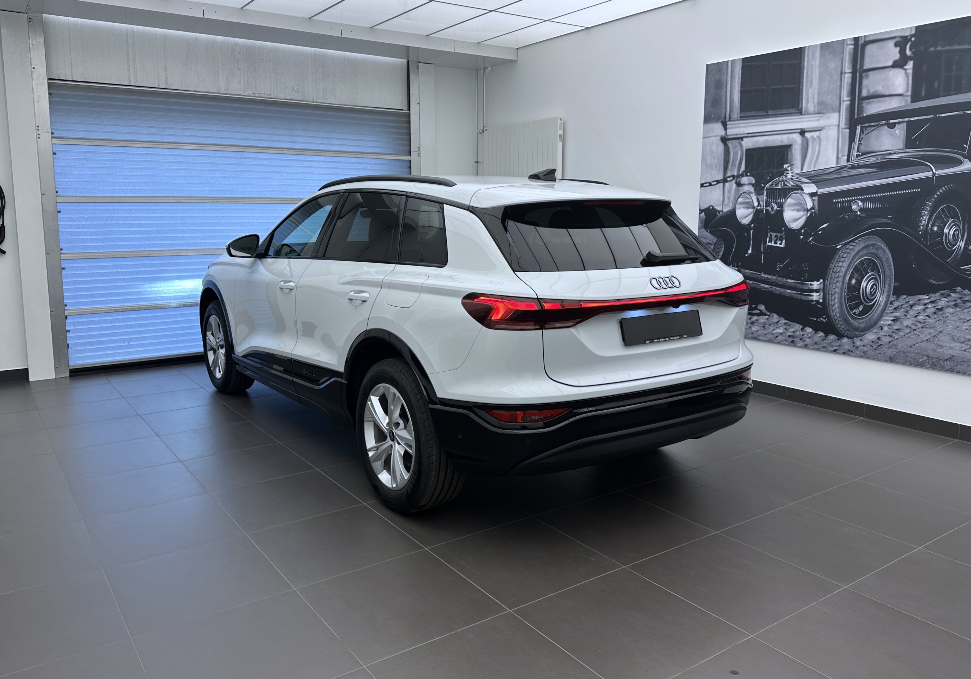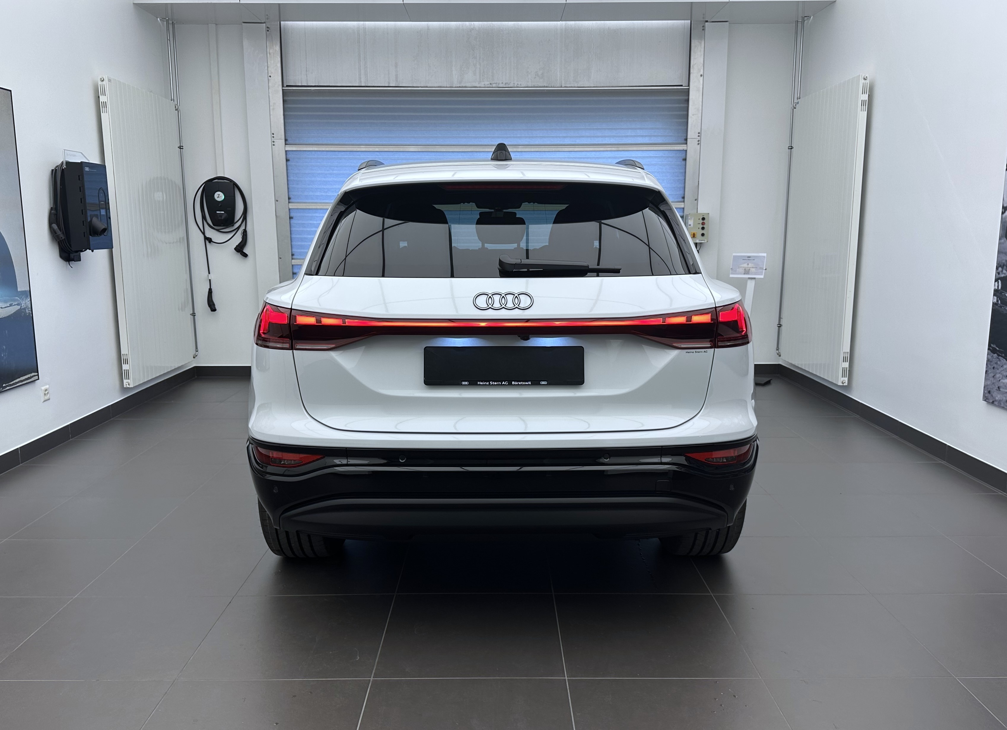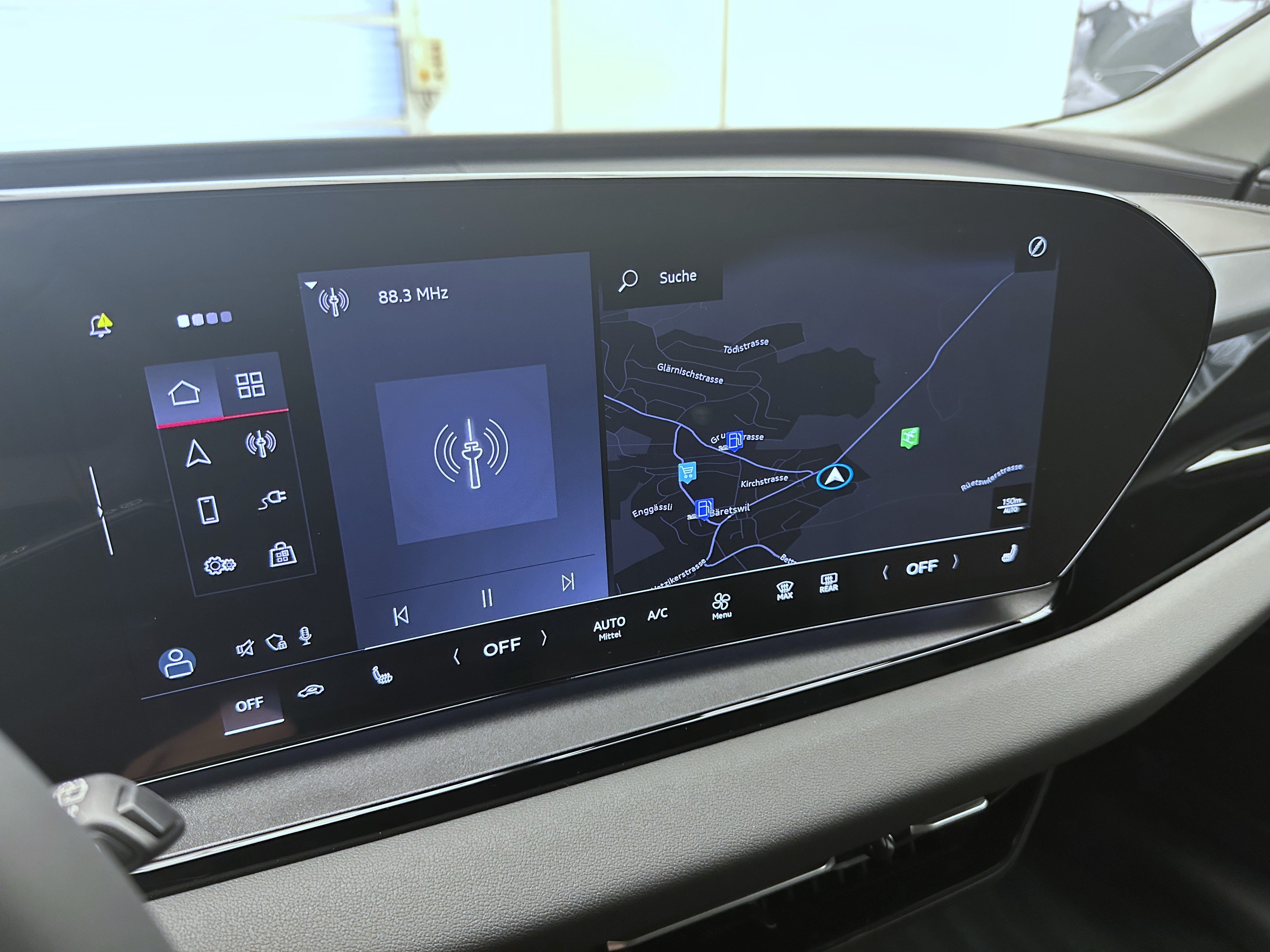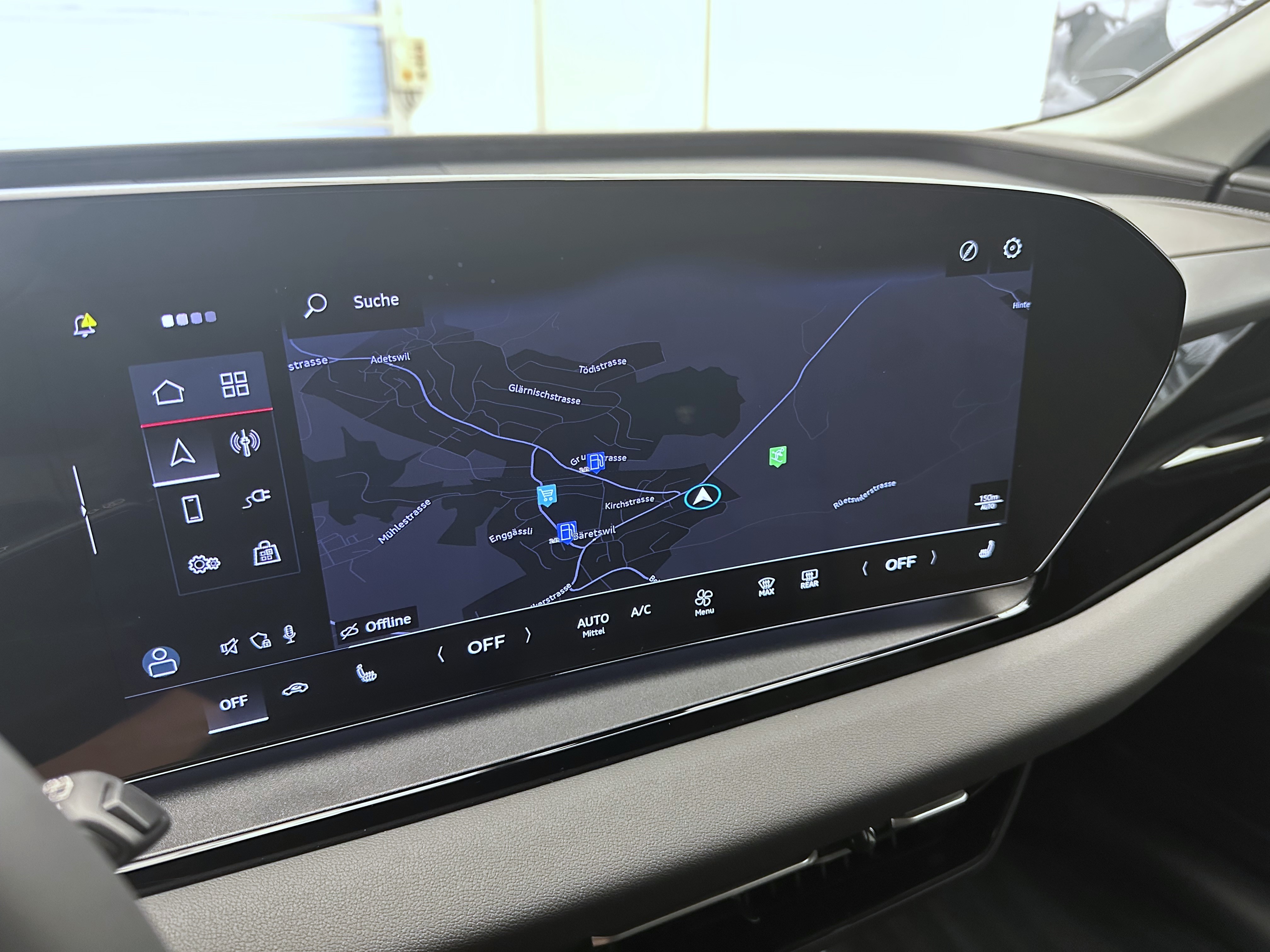 Airbag: Airbag Beifahrer deaktivierbar Airbag: Airbag Fahrer und Beifahrer Airbag: Seitenairbag vorn, mit Kopfairbag und Interaktionsairbag vorn Akustisches Fahrzeug-Warnsystem (AVAS) Assist: Adaptiver Geschwindigkeitsassistent Assist: Aufmerksamkeits- und Müdigkeitserkennung Assist: Ausweichassistent und Abbiegeassistent Assist: Einparkhilfe plus mit Distanzanzeige Assist: Kamerabasierte Verkehrszeichenerkennung Assist: Kreuzungsassistent Assist: Notbremsassistent vorn Assist: Parkassistent plus Assist: Spurverlassenswarnung Assist: Spurwechsel- und Ausstiegswarnung, Querverkehrassistent hinten und Abbiegeassistent hinten Assist: Traktionskontrolle Assist: Verkehrszeichenbasierter Geschwindigkeitsbegrenzer Audi connect Notruf & Service mit Audi connect Remote & Control Audi virtual cockpit plus Aussenspiegel elektrisch einstell-, beheiz- und anklappbar, beidseitig automatisch abblendend Aussenspiegel in Wagenfarbe Dachhimmel Stoff, Farbe felsgrau Dekor: Dekoreinlage Feinlack vulkangrau Dekor: Instrumententafel-Oberseite schwarz mit Kontrastnaht Dekor: Interieurelemente oben und unten Kunstleder Einstiegsleisten mit Aluminiumeinlegern vorn Elektrische Fensterheber vorne Elektronisches Stabilitäts-Programm (ESP) Fahrwerk: Komfortfahrwerk Fensterzierleisten schwarz Fussmatten vorne und hinten Garantie: Audi Garantie 2 Jahre ohne Kilometerbegrenzung (ab 1. Inv.) Garantie: Audi Swiss Service Package + (ASSP+) Getriebe: Direktantrieb, kein Getriebe Innenspiegel automatisch abblendbar Interieur mit Normalsitzen, Stoff schwarz Klima: 3-Zonen-Klimatisierungsautomatik Klima: Automatische Umluftregelung Klima: Elektrische Luftzusatzheizung Komfortmittelarmlehne vorne Komfortschlüssel ohne Safelock Lackierung: Kontrastlackierung Lackierung: Uni-Lackierung Magnetgrau Ladekabel Mode 3 für öffentliches Laden bis 22 kW Lenkrad: Doppelspeichen-Lederlenkrad mit Multifunktion und Schaltwippen Lenkrad: Lenkrad längs- und höhenverstellbar Lenkrad: Lenkrad mit Applikation in Chromoptik Licht: Fernlicht-Assistent Licht: LED-Heckleuchten pro Licht: LED-Scheinwerfer plus Licht: Projektionsleuchte in den Aussenspiegeln Licht: Tagesfahrlicht mit Assistenzfahrlicht u.Coming- u. Leaving-home Funktion automatisch Media: Audi Application Store und Smartphone-Interface Media: Audi connect Navigation & Infotainment Media: Digitaler Radioempfang Media: FOD Funktionen online verfügbar Media: MMI experience plus Media: Telefonablage mit induktiver Ladefunktion Media: USB-Anschlüsse mit Ladefunktion in erster und zweiter Sitzreihe Modellkennzeichnung am Heck On-board-Ladegerät bis 11 kW (AC) Paket: Ambiente Lichtpaket Räder: Reifendruck-Kontrollanzeige Räder: Reifenreparatur-Set (Tire Fit) Räder: Räder, 10-Speichen Rücksitzbank ungeteilt,Lehne geteilt Scheiben seitlich und hinten in Wärmeschutzverglasung Scheinwerfer-Reinigungsanlage Sitze: Kindersitzbefestigung i-Size auf der Beifahrerseite und i-Size und Top Tether Sitze: Rücksitzbank ungeteilt, Lehne geteilt umlegbar (dreiteilig) mit Mittelarmlehne Sitze: Sitzheizung vorne und hinten Sitze: Vordersitze manuell einstellbar Türen: Gepäckraumklappe elektrisch öffnend und schliessend Türgriffe aussen in Wagenfarbe Verbandmaterial,Warndreieck und Warnveste Vorbereitung für Anhängevorrichtung Vorbereitung für intelligente Ladefunktionen Wegfahrsperre elektronisch Wärmeschutz- und Akustikverglasung Frontscheibe Zentralverriegelung mit Fernbedienung