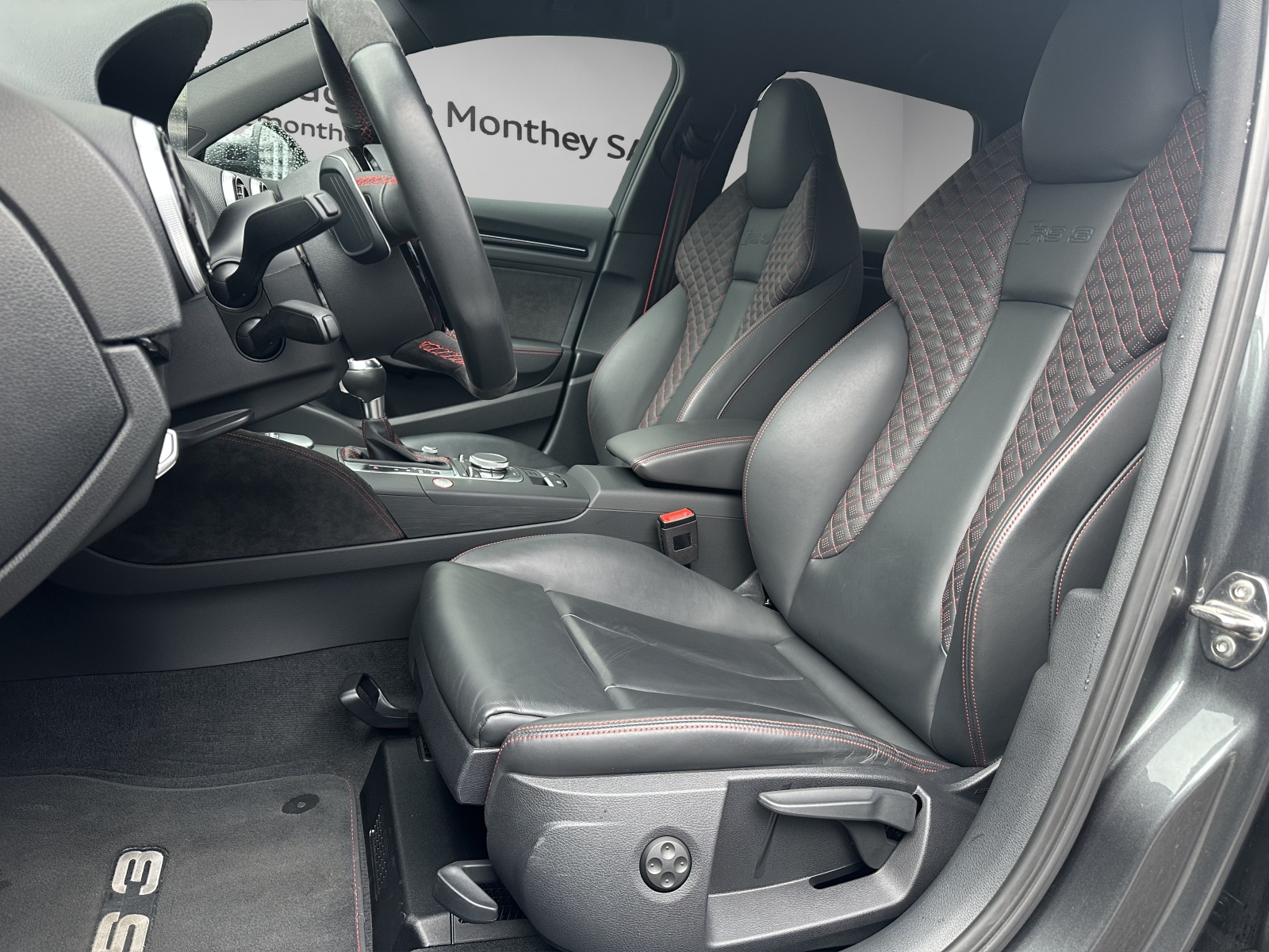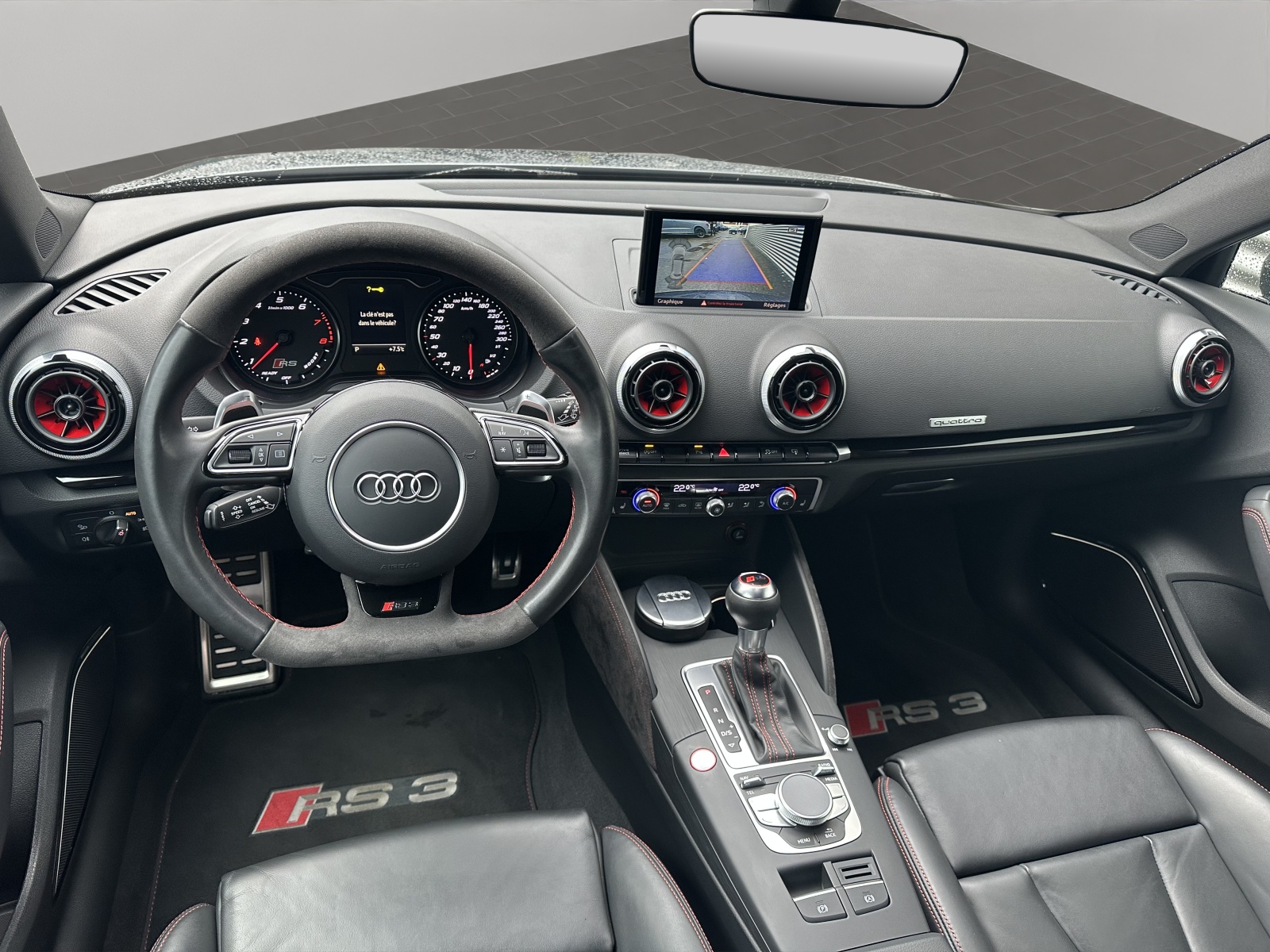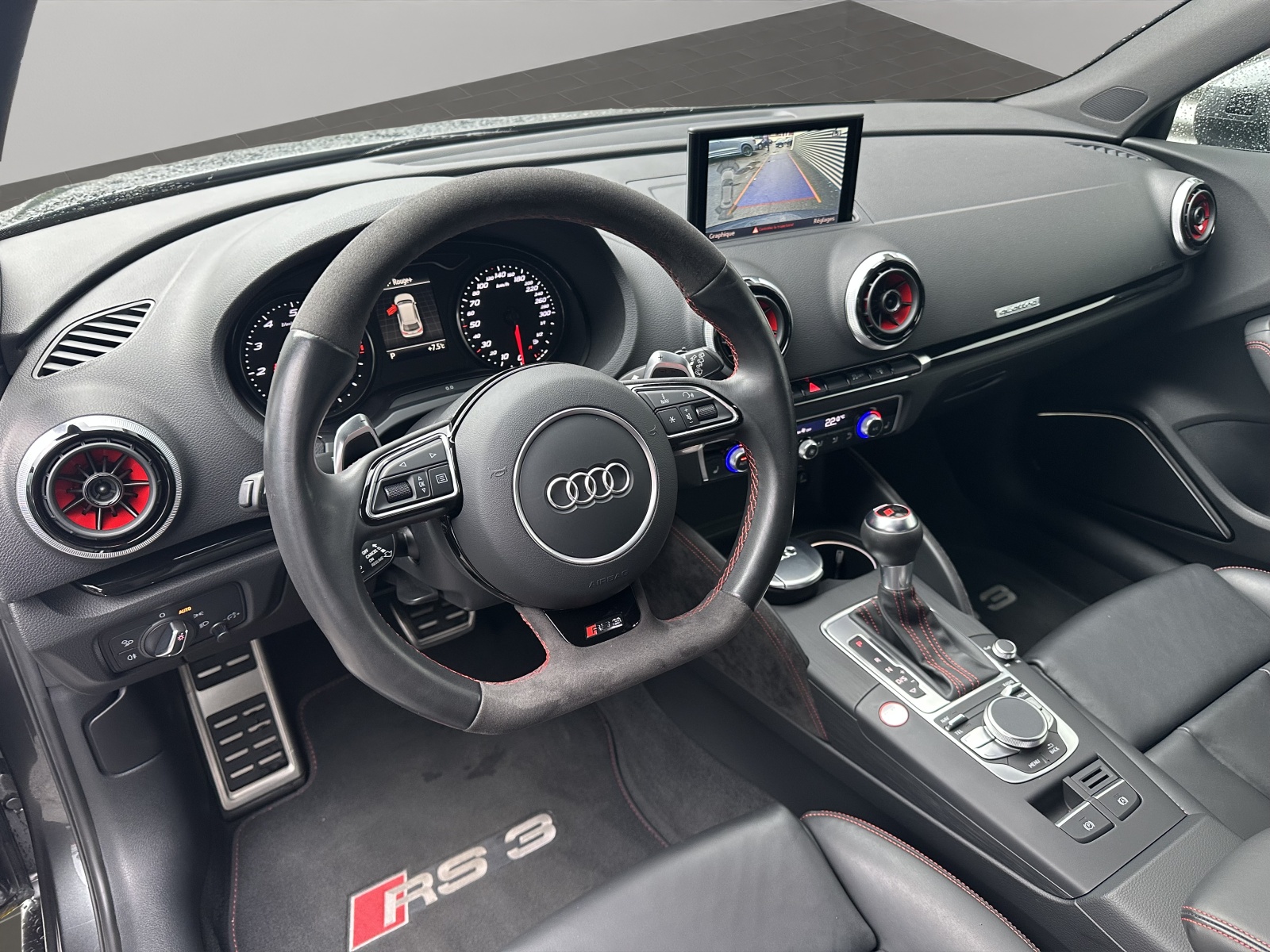 [WK0] Paquet "Infotainment" (brut) [VW1] Vitres à partir du montant B en verre teinté gris [0P6] Système d'échappement sport, embouts bi-tube en chrome, forme ovale [2H7] Audi magnetic ride [0VB] Papiers français [6Y] gris daytona nacré [A41] Audi Swiss Service Package+ [PAH] Paquet optique noir brillant [QB] noir - rouge crescendo [PS6] Sièges sport S avant Sublime RS3 sans FAP (ohne OPF) très faible Kilométrage ! ETAT NEUF ! Pour Collectionneur ! 1 seul propriétaire ! Services suivis ! Y compris roues hiver original Audi ! Pneus été et hiver neufs !