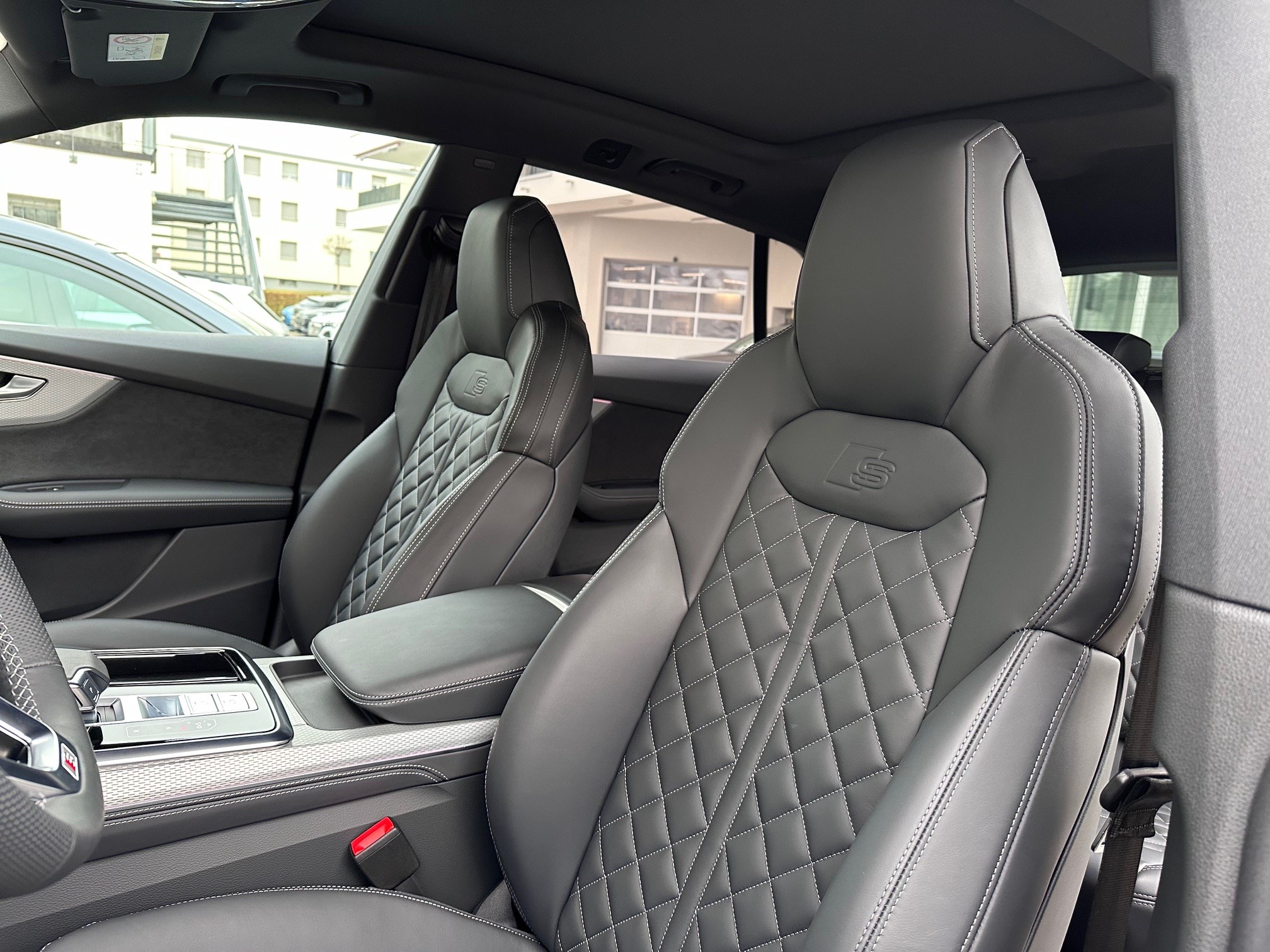 [PXB] Licht: HD Matrix LED-Scheinwerfer mit Audi Laserlicht, LED-Heckleuchten - und Scheinwerfer-Reinigungsanlage - HD Matrix LED-Scheinwerfer mit Audi Laserlicht - HD Matrix LED-Scheinwerfer mit dynamischer Lichtinszenierung und dynamischem Blinklic [7HQ] Dekor: Interieurelement oben mit Kontrastnaht und Interieurelemente unten in Kunstleder [GS5] Dekor: Bedientasten schwarz glänzend mit haptischem Feedback und Aluminiumoptik Interieur [3GN] Schienensystem mit Fixierset [A41] Audi Swiss Service Package+