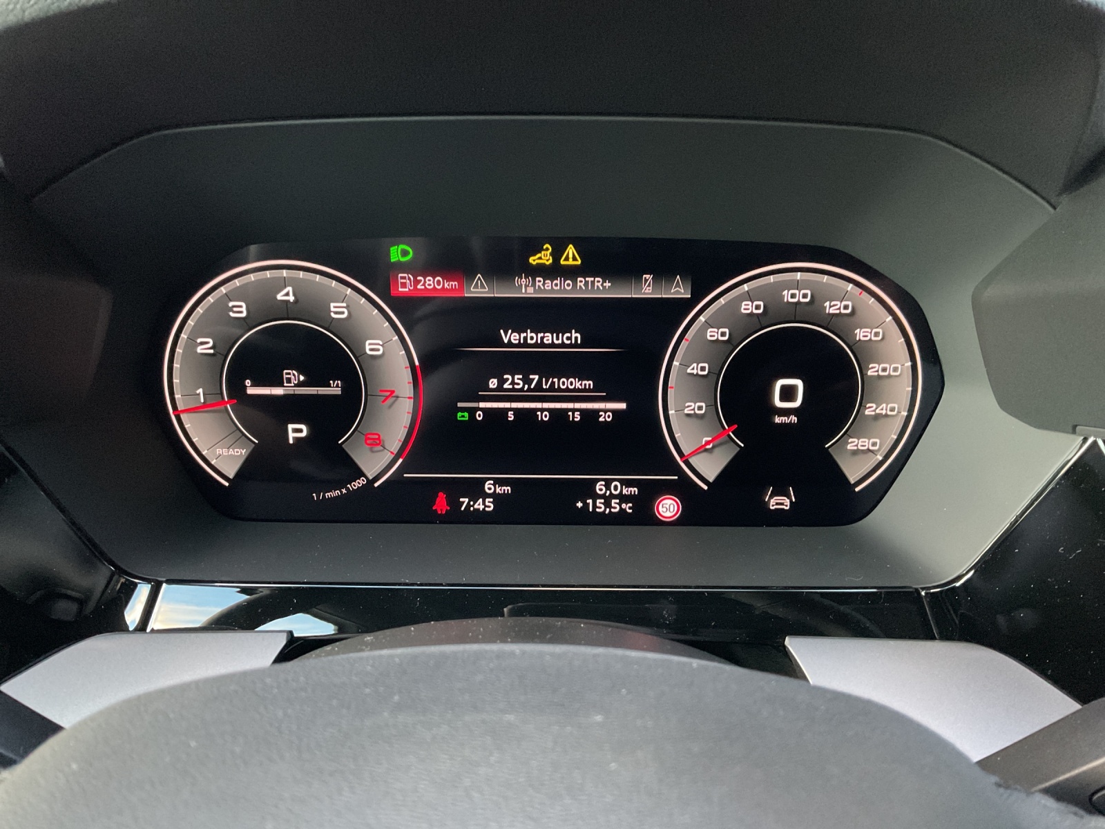 Airbag: Airbag Beifahrer deaktivierbar Assist: Audi pre sense front Assist: Ausweichassistent und Abbiegeassistent Assist: Einparkhilfe hinten Assist: Kamerabasierte Verkehrszeichenerkennung Assist: Proaktiver Insassenschutz Front, Seite und Heck Assist: Spurverlassenswarnung inkl. Notfallassistent Assist: Traktionskontrolle Audi connect Notruf & Service mit Audi connect Remote & Control Aussenspiegel elektrisch einstell- und beheizbar Aussenspiegel in Wagenfarbe Dekor: Dekoreinlage Feinlack vulkangrau Diffusor hinten schwarz matt genarbt Einleger der Lufteinlässe vorn schwarz matt genarbt Einleger im Diffusor in Selenitsilber Elektrische Fensterheber vorne Elektronisches Stabilitäts-Programm (ESP) Entfall Modellbezeichnung Fahrwerk: Anpassung Bremsanlage Fensterschachtleisten in Schwarz Frontscheibe in Wärmeschutzverglasung Funkschlüssel, ohne Safelock Garantie: 2 Jahre ohne Kilometerbegrenzung (ab 1. Inv.) Garantie: Audi Swiss Service Package + (ASSP+) Getriebe: 7-Gang- Automat S tronic Interieur mit Normalsitzen in Stoff schwarz Kindersicherung, elektrisch Klima: 1-Zonen-Klimaautomatik mit Vorbereitung für weitere Klimafunktionen Kühlerschutzgitter schwarz matt genarbt Lackierung: Uni-Lackierung Lenkrad: Lederlenkrad im 3-Speichen-Design mit Multifunktion plus und Schaltwippen Media: Audi phone box light Media: USB-Anschlüsse mit Ladefunktion im Fond Paket: Ambiente Lichtpaket Räder: Reifendruck-Kontrollanzeige Räder: Reifenreparatur-Set (Tire Fit) Räder: Räder, 5-Doppelarm Sitze: Rücksitzlehne umklappbar Sitze: i-Size und Top Tether für die äusseren Fondsitze Wegfahrsperre elektronisch Zentralverriegelung mit Fernbedienung