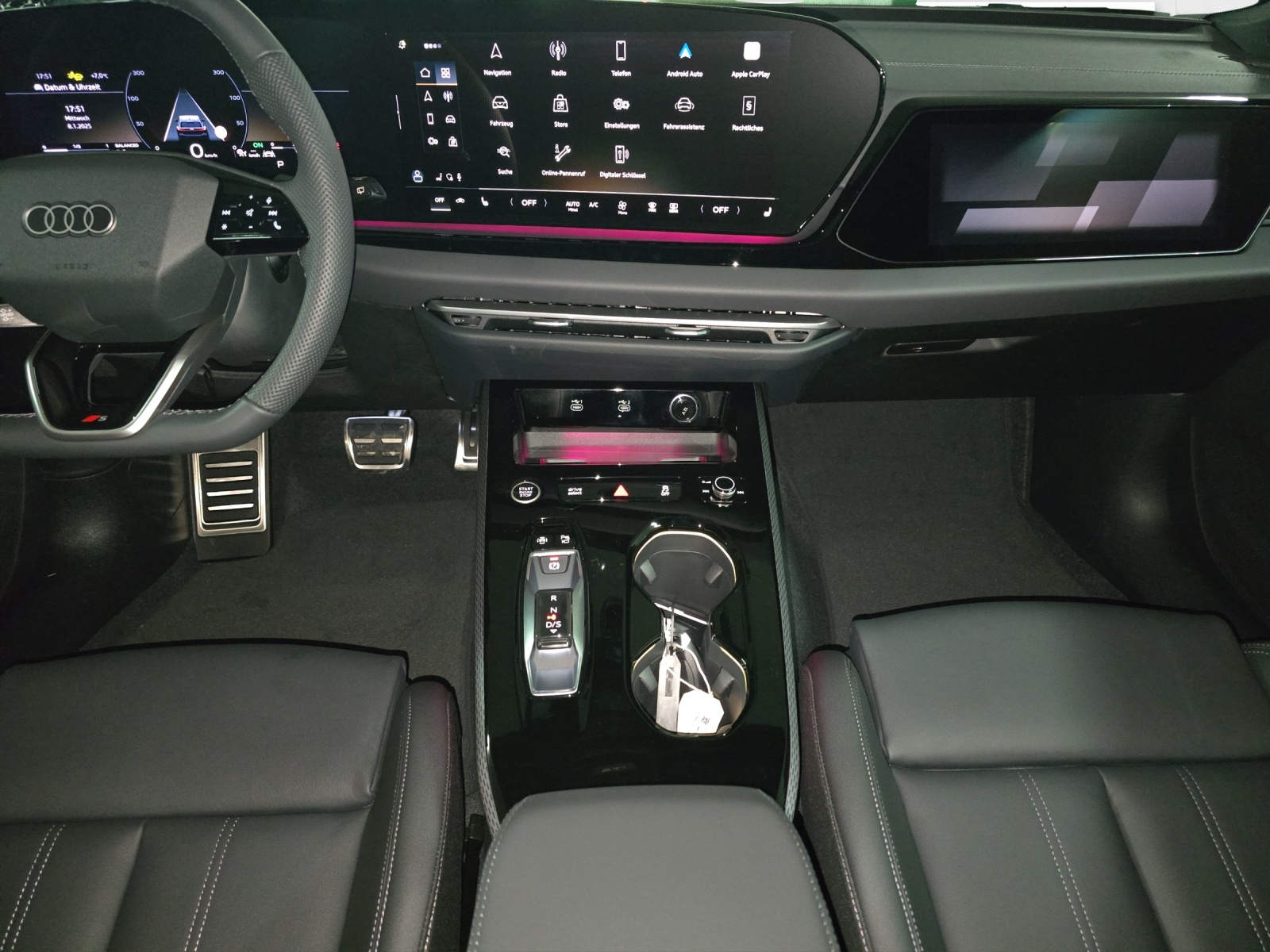 Sonderausstattung Dekor: Dekoreinlagen Aluminium matt gebürstet mit Linearprägung anthrazit Interieur S mit Sportsitzen, Leder/Kunstleder-Kombination schwarz Lackierung: Metallic-Lackierung Paket: Ambiente Lichtpaket plus Paket: Exterieur S line mit Normalfahrwerk Räder: Räder Audi Sport, 5-Doppelspeichen, schwarz metallic Räder: Räder, 5-Doppel-V-Speichen, graphitgrau, glanzgedreht Sonnenschutzverglasung, abgedunkelt