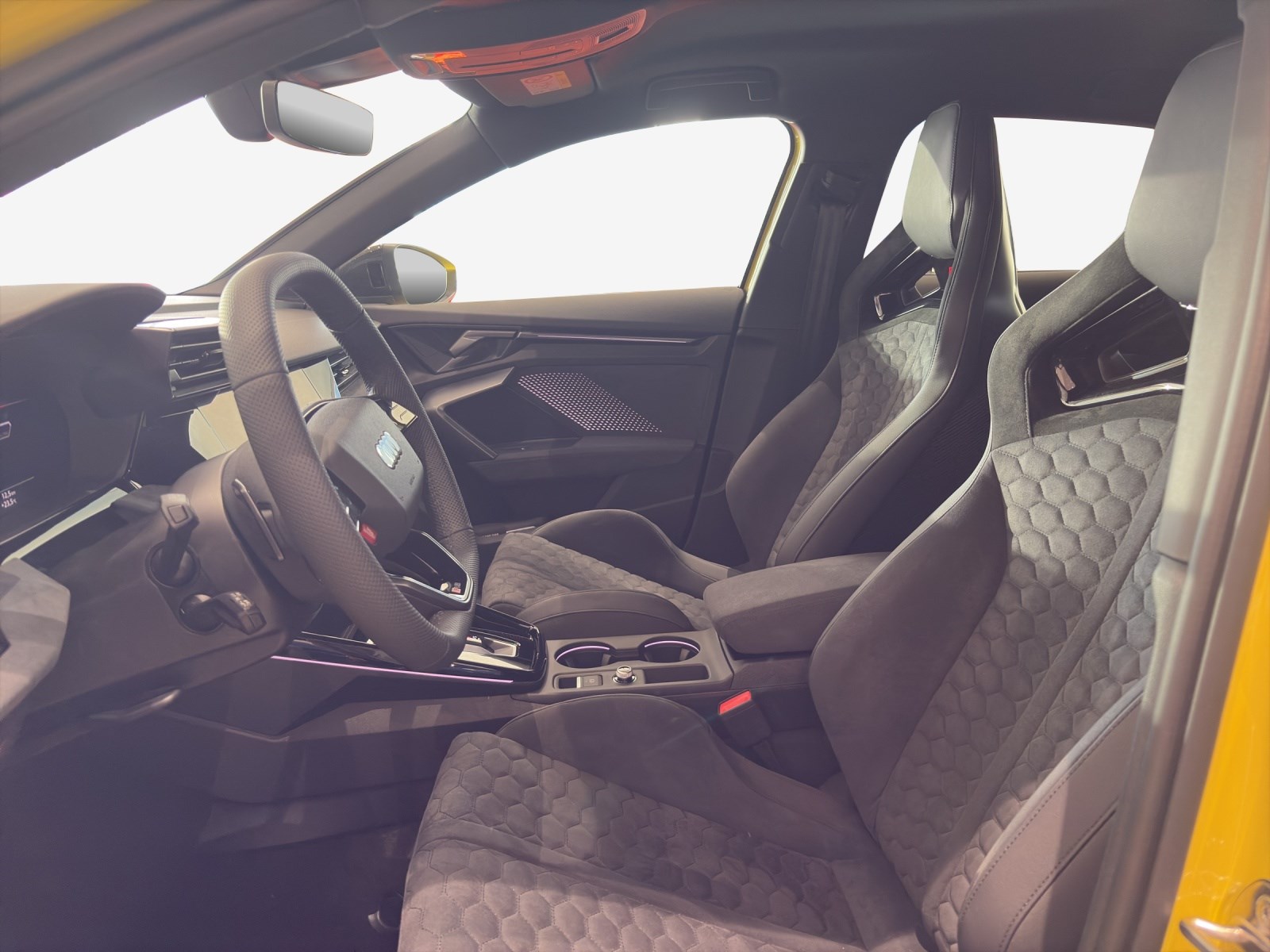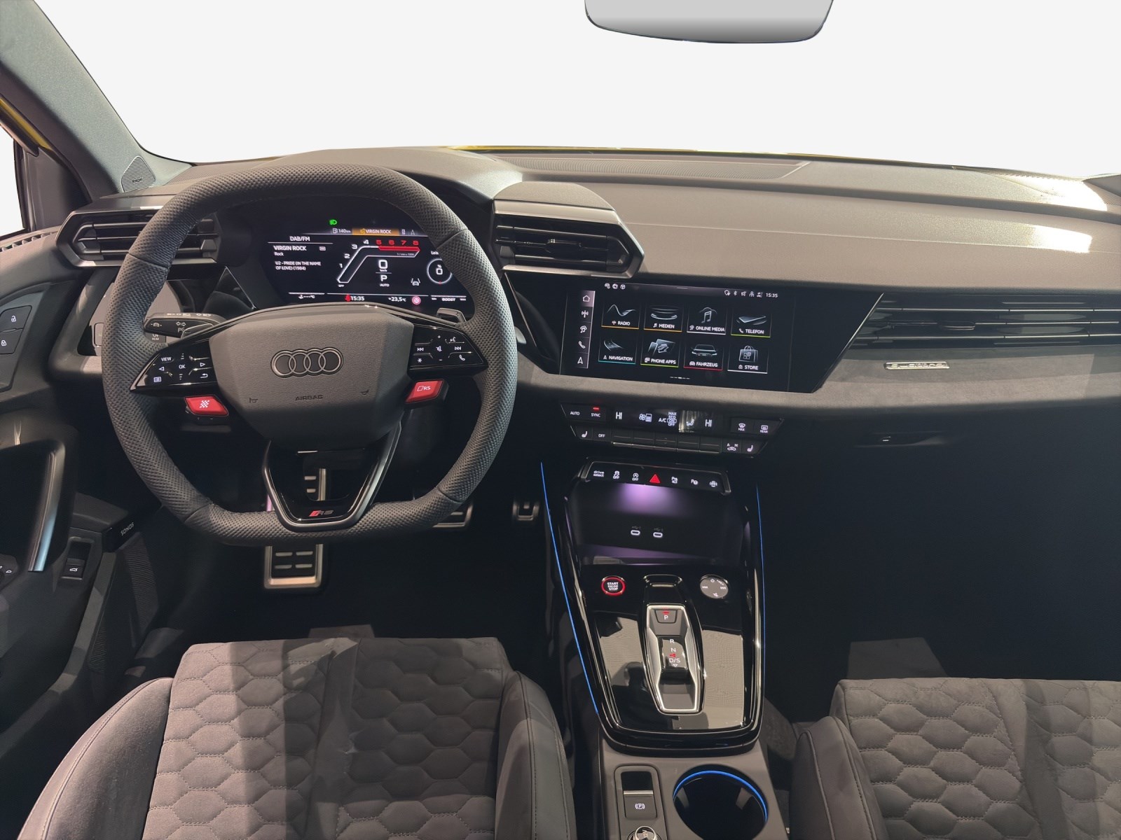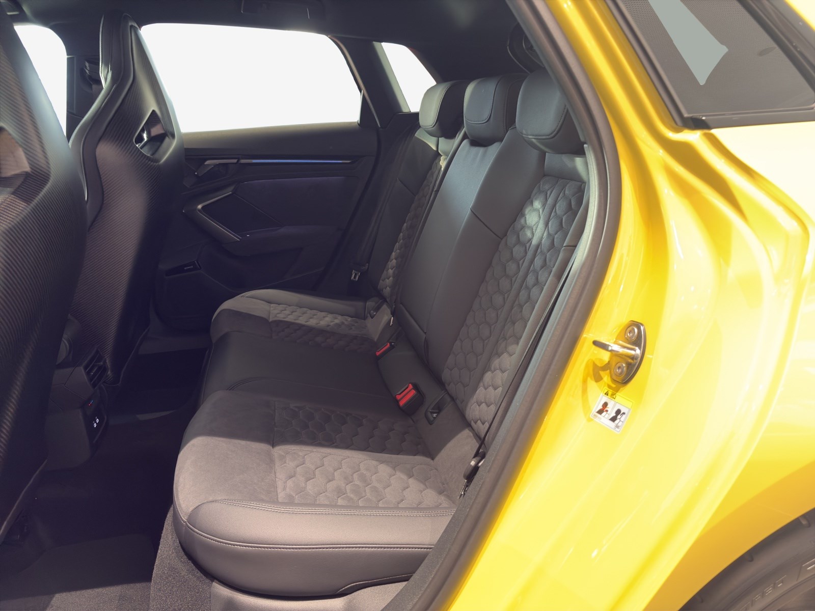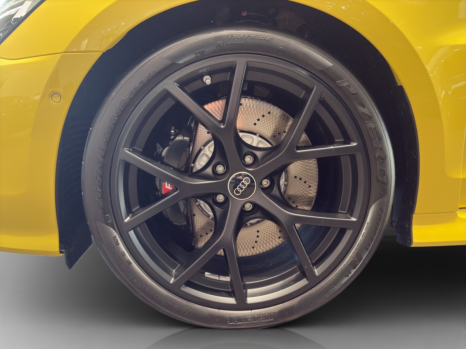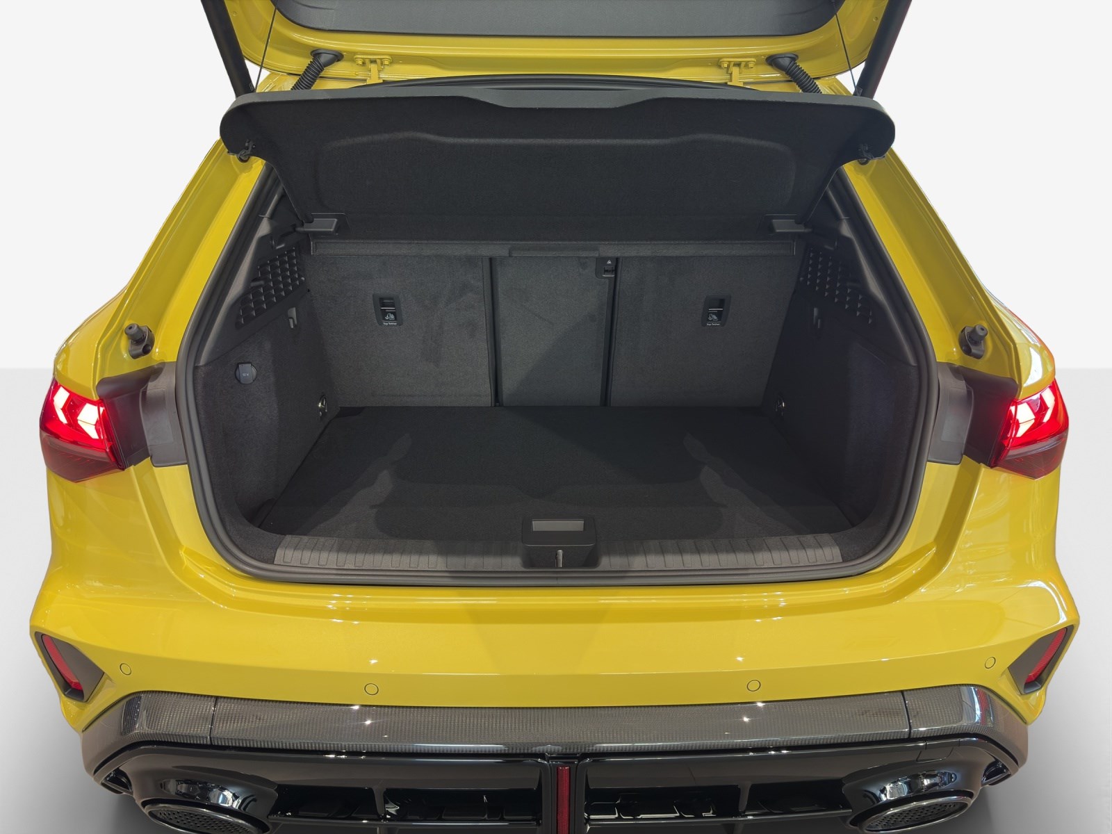 Airbag: Seitenairbags vorn und Kopfairbagsystem Assist: Adaptiver Geschwindigkeitsassistent Assist: Anhebung der Höchstgeschwindigkeit auf 280 km/h Assist: Spurwechselwarnung mit Ausstiegswarnung und Querverkehrassistent hinten Dachkantenspoiler in Carbon Dekor: Dekoreinlage Mikrofaser Dinamica schwarz Dekor: Interieurelemente unten Mikrofaser Dinamica schwarz Fahrwerk: Adaptives Fahrwerk mit Audi drive select Frontscheibe in Wärmeschutzverglasung Komfortschlüssel ohne Safelock Lackierung: Metallic-Lackierung Licht: Matrix LED-Scheinwerfer, LED-Heckleuchten und Scheinwerfer-Reinigungsanlage Media: LTE-Unterstützung für Audi phone box Motorabdeckung mit Carbonapplikation Paket: Assistenzpaket Fahren und Parken plus Paket: Assistenzpaket Schutz- und Warnsysteme plus Paket: Klimatisierungspaket plus Polster: Mikrofaser Dinamica/Leder-Kombination mit Wabensteppung und RS-Schriftzug RS-Exterieurumfänge Carbon/schwarz glänzend Räder: Reifendruckkontrollsystem Räder: Sportreifen P Zero Trofeo R von Pirelli, 265/30 R19 245/35 R19 Sitze: Kindersitzbefestigung ISOFIX vorn, Top Tether und i-Size für die äusseren Fondsitze Sonnenschutzverglasung, abgedunkelt Türen: Komfortöffnung Gepäckraumklappe