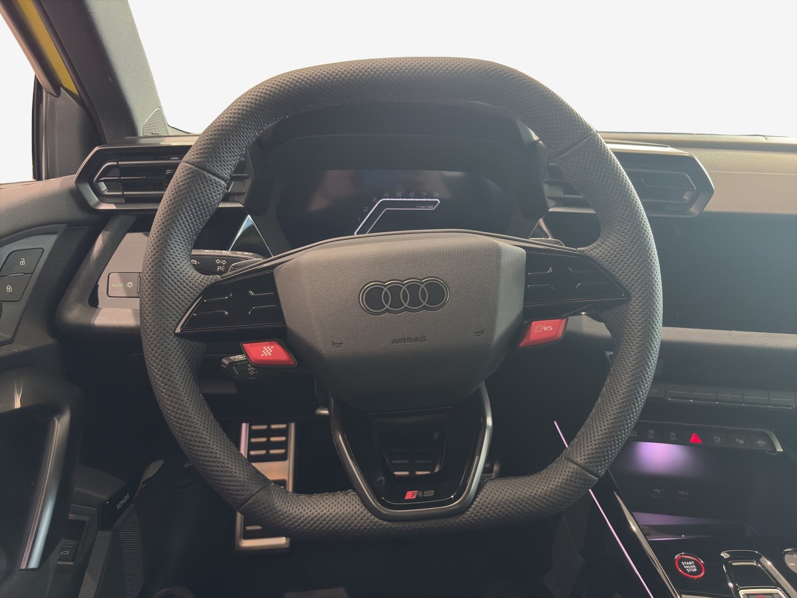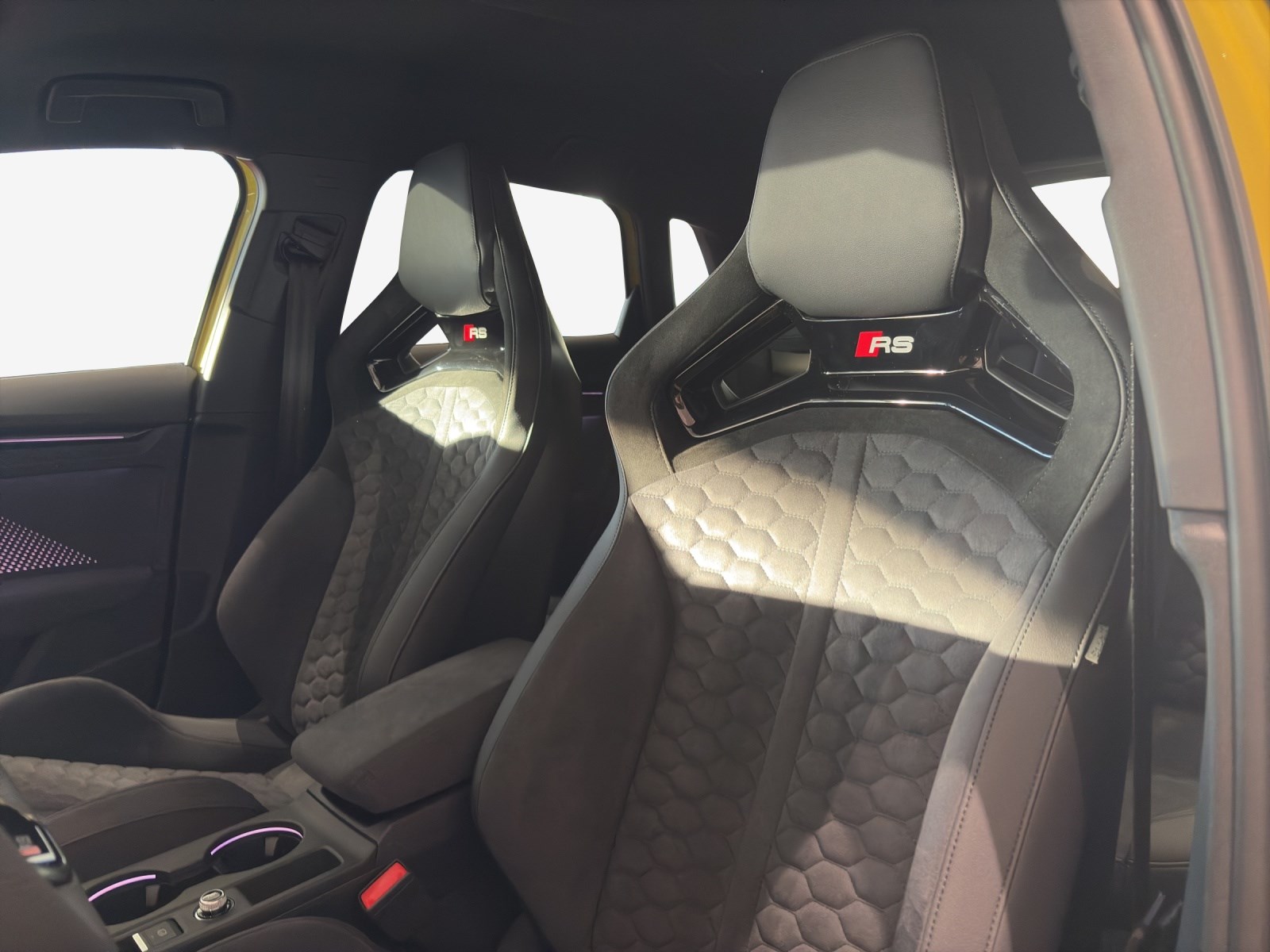 Airbag: Airbag für Fahrer und Beifahrer mit Beifahrer-Airbag-Deaktivierung Airbag: Seitenairbags vorn, mit Kopfairbag und Interaktionsairbag vorn Assist: Ablenkungs- und Müdigkeitserkennung Assist: Audi pre sense front Assist: Ausweichassistent und Abbiegeassistent Assist: Geschwindigkeitsbegrenzungsanlage bis 250 km/h Assist: Geschwindigkeitsregelanlage mit Vorbereitung adaptiver Geschwindigkeitsassistent Assist: Kamerabasierte Verkehrszeichenerkennung Assist: Parkassistent mit Einparkhilfe plus Assist: Spurverlassenswarnung inkl. Notfallassistent Assist: Traktionskontrolle Audi virtual cockpit plus mit zusätzlichem RS-Layout Aussenspiegel elektrisch einstell- und beheizbar Dachhimmel in Stoff schwarz Dekor: Dekoreinlage Carbon Atlas Struktur Dekor: Interieurapplikationen Vanadiumoptik Elektrische Fensterheber vorne Elektronisches Stabilitäts-Programm (ESP) Fahrwerk: RS-Sportfahrwerk Fahrwerk: RS-Stahlbremse vorn mit Bremssätteln schwarz glänzend Funkschlüssel, ohne Safelock Garantie: Audi Garantie 2 Jahre ohne Kilometerbegrenzung (ab 1. Inv.) Getriebe: 7-Stufen Automatisiertes Schaltgetriebe Heckscheibe, hintere Tür- und Seitenscheiben in Klarglas Klima: 2-Zonen-Komfortklimaautomatik Lackierung: Uni-Lackierung Lenkrad: Sportkonturlenkrad, 3-Speichen, oben und unten abgeflacht Licht: Einstiegs LED mit RS-Projektion vorn Licht: LED Heckleuchten mit dynamischem Blinklicht Media: Audi Application Store und Smartphone-Interface Media: Audi connect Navigation & Infotainment plus Media: Audi connect Notruf & Service mit Audi connect Remote & Control Media: Audi phone box light Media: Digitaler Radioempfang Media: MMI Navigationssystem Plus mit MMI touch Media: USB-Anschlüsse mit Ladefunktion im Fond Paket: Ablagen- und Gepäckraumpaket Paket: Ambiente-Lichtpaket pro Paket: Optikpaket schwarz plus Polster: Mikrofaser Dinamica/Kunstleder - Kombination mit Rautensteppung und RS-Prägung RS-Exterieurumfänge in schwarz matt Räder: Reifendruck-Kontrollanzeige Räder: Reifenreparatur-Set (Tire Fit) Räder: Räder, 5-Y-Speichen, schwarz matt Scheinwerfer-Reinigungsanlage Sitze: Gurtanlegekontrolle mit Sitzbelegungserkennung hinten Sitze: Rücksitzlehne, geteilt umklappbar Sitze: Vordersitze manuell einstellbar Verbandmaterial und Warndreieck Wegfahrsperre elektronisch Wärmeschutz- und Akustikverglasung Frontscheibe mit grauem Colorstreifen Zentralverriegelung mit Fernbedienung