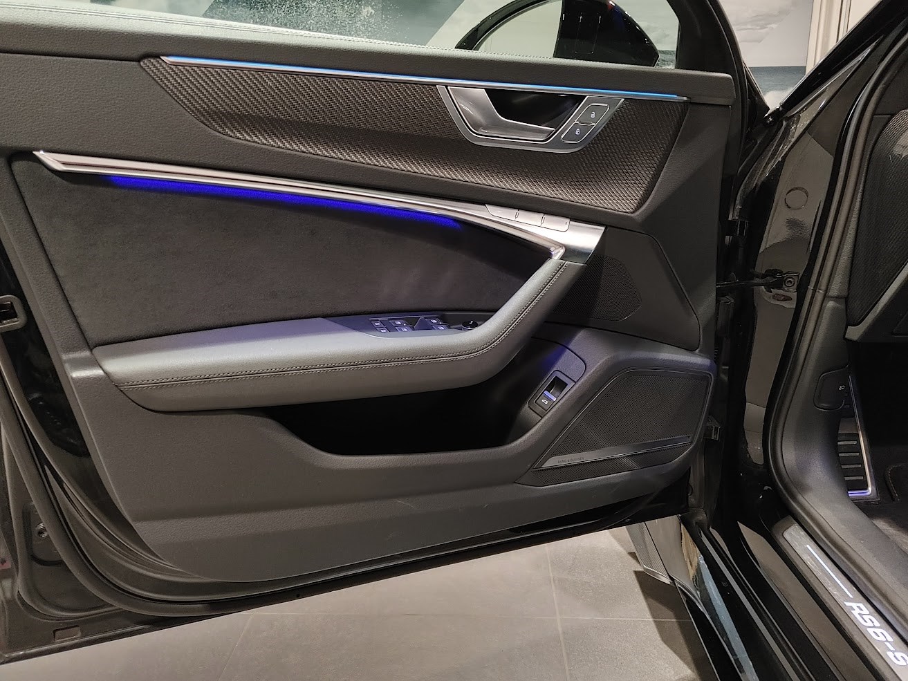 Audi Ringe und Schriftzüge in Schwarz glänzend Audi virtual cockpit plus mit zusätzlichem RS-Layout Dachhimmel in Alcantara schwarz Dekor: Dekoreinlagen Carbon Köper Struktur Fahrwerk: RS-Sportfahrwerk plus mit Dynamic Ride Control (DRC) Garantie: 5 Jahre oder 100'000 km (ab 1. Inv.) Klima: Standheizung und -lüftung (ohne Funkfernbedienung) Komfortschlüssel mit sensorgesteuerter Gepäckraumentriegelung Lenkrad: Lederlenkrad im 3-Speichen-Design mit Multifunktion plus und Lenkradheizung Media: USB-Anschlüsse mit Ladefunktion im Fond Paket: Assistenzpaket plus Paket: Optikpaket schwarz glänzend Privacy-Verglasung (Scheiben abgedunkelt) Räder: Leichtmetallräder 22 Zoll im 5-V-Speichen-Struktur-Design in Anthrazitschwarz glänzend Sitze: RS-Sportsitze vorn in Leder Valcona Sitze: Sitzheizung vorne und hinten Türen: Servoschliessung für die Türen