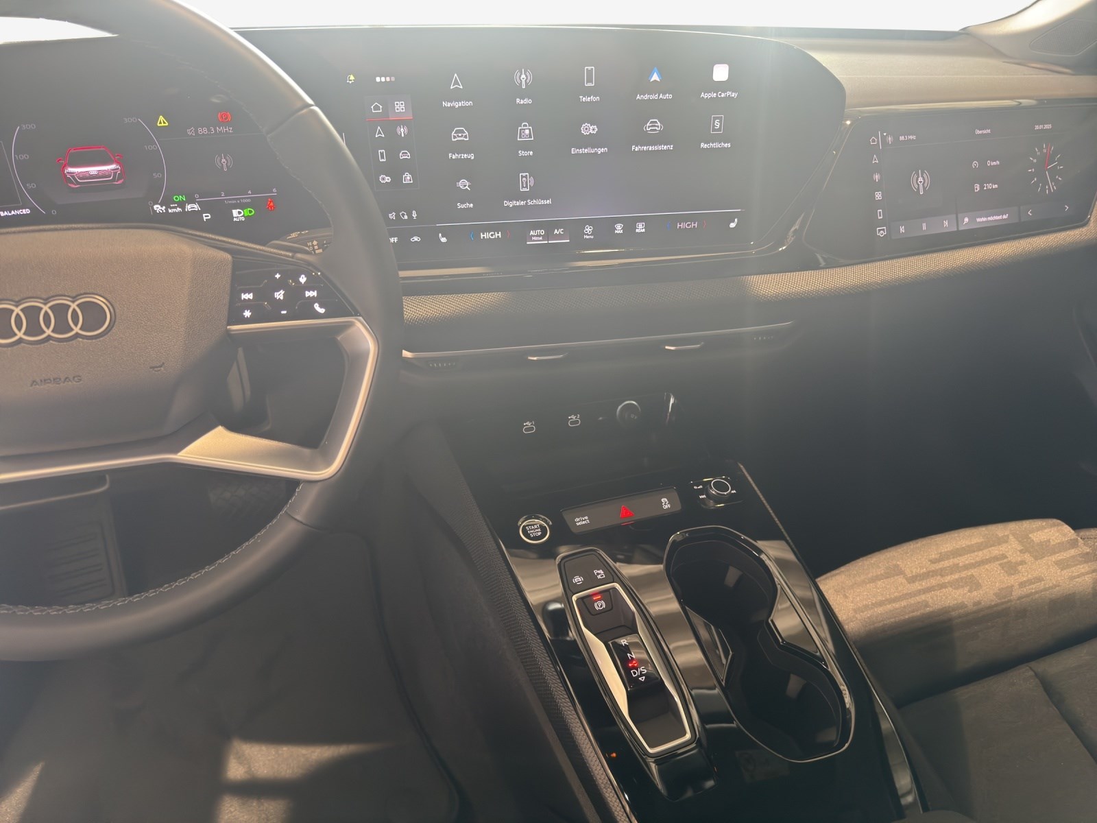 Airbag: Airbag Fahrer und Beifahrer Airbag: Seitenairbags vorn, mit Kopfairbag und Interaktionsairbag vorn Akustisches Fahrzeug-Warnsystem Assist: Ablenkungs- und Müdigkeitserkennung Assist: Adaptiver Geschwindigkeitsassistent Assist: Ausweichassistent und Abbiegeassistent Assist: Einparkhilfe plus mit Distanzanzeige Assist: Kamerabasierte Verkehrszeichenerkennung Assist: Kreuzungsassistent Assist: Notbremsassistent vorn Assist: Parkassistent plus Assist: Traktionskontrolle Assist: Verkehrszeichenbasierter Geschwindigkeitsbegrenzer Audi connect Notruf & Service mit Audi connect Remote & Control Audi virtual cockpit plus Aussenspiegel Fahrerseite asphärisch, Beifahrerseite asphärisch Aussenspiegel elektrisch einstell-, beheiz- und anklappbar, beidseitig automatisch abblendend Aussenspiegel in Wagenfarbe Dachhimmel in Stoff in spezifischer Farbe Dekor: Akzentflächen und Bedientasten schwarz matt Dekor: Aluminiumoptik im Interieur Dekor: Dekoreinlagen Laserstruktur schwarz Dekor: Interieurelemente umlaufend Stoff Impressum Einstiegsleisten mit Aluminiumeinlegern vorn Elektrische Fensterheber vorne Elektronisches Stabilitäts-Programm (ESP) Fahrwerk: Standardfahrwerk Fensterzierleisten Aluminiumoptik Frontscheibe in Wärmeschutz- und Akustikverglasung Funkschlüssel, ohne Safelock Fussmatten vorne und hinten Garantie: Audi Garantie 2 Jahre ohne Kilometerbegrenzung (ab 1. Inv.) Getriebe: 7-Stufen Automatisiertes Schaltgetriebe Innenspiegel automatisch abblendbar Kindersicherung, elektrisch Klima: 3-Zonen-Klimatisierungsautomatik Lackierung: Uni-Lackierung Lenkrad: Doppelspeichen-Lederlenkrad mit Multifunktion und Schaltwippen Lenkrad: Lenkradapplikation Chromoptik Lenkrad: Lenkradeinstellung manuell Licht: Fernlicht-Assistent Licht: LED-Heckleuchten pro Licht: LED-Scheinwerfer plus Licht: Tagesfahrlicht mit Assistenzfahrlicht u.Coming- u. Leaving-home Funktion automatisch Media: Audi Application Store und Smartphone-Interface Media: Audi connect Navigation & Infotainment Media: Digitaler Radioempfang Media: FOD Funktionen online verfügbar Media: MMI experience plus Media: Navigationsgerät-High Media: USB-Anschlüsse mit Ladefunktion in erster und zweiter Sitzreihe Modellbezeichnung am Heck Paket: Assistenzpaket Fahren und Parken Paket: Klimatisierungspaket Paket: Paket Premium business Räder: Radschrauben Standard Räder: Reifendruck-Kontrollanzeige Räder: Reifenreparatur-Set (Tire Fit) Räder: Räder, 5-Doppelspeichen Scheiben seitlich und hinten in Wärmeschutzverglasung Schlüssel für Schliesssystem mit Fernbedienung Sitze: Kindersitzbefestigung i-Size auf der Beifahrerseite und i-Size und Top Tether Sitze: Sitzbelegungserkennung Sitze: Vordersitze heizbar Türen: Gepäckraumklappe elektrisch öffnend und schliessend Türen: Türgriffe in Wagenfarbe Verbandmaterial,Warndreieck und Warnveste Wegfahrsperre elektronisch