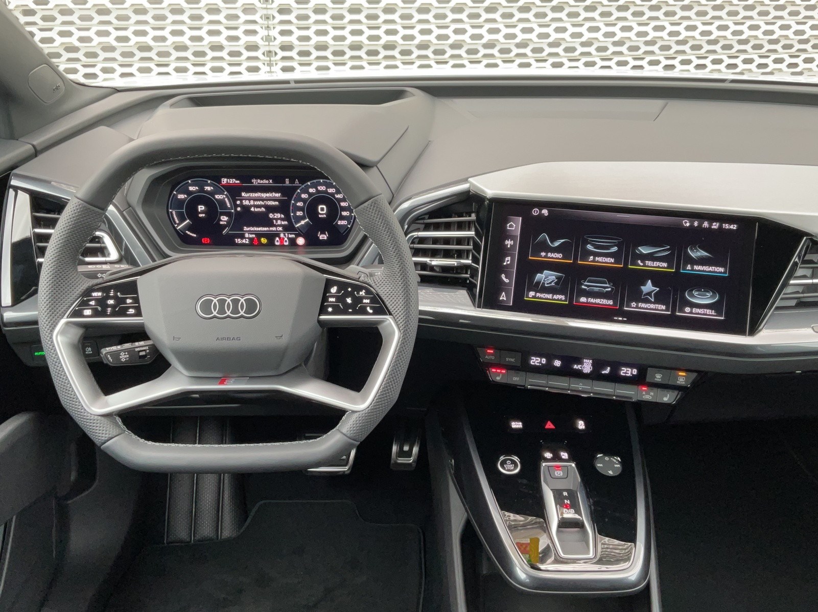Airbag: Seitenairbag vorn und hinten, mit Kopfairbag und Interaktionsairbag vorn Akustikverglasung für Türscheiben vorn Entfall Modellbezeichnung und Leistungs- / Technologie-Schriftzug Gepäckraumklappe elektrisch mit sensorgesteuerter Gepäckraumentriegelung Komfortschlüssel ohne Safelock Lackierung: Volllackierung Licht: Audi Matrix LED-Scheinwerfer Media: SONOS Premium Soundsystem Paket: Advanced Exterieur Paket: Ambiente Lichtpaket plus Paket: Infotainmentpaket Schweiz Paket: Interieur S line mit Sportsitzen in Mikrofaser Dinamica / Kunstleder-Kombination schwarz Paket: Komfortpaket Schweiz Paket: Optikpaket schwarz plus Privacy-Verglasung (Scheiben abgedunkelt) Räder: Leichtmetallräder, 5-W-Speichen-Aero, graphitgrau, glanzgedreht