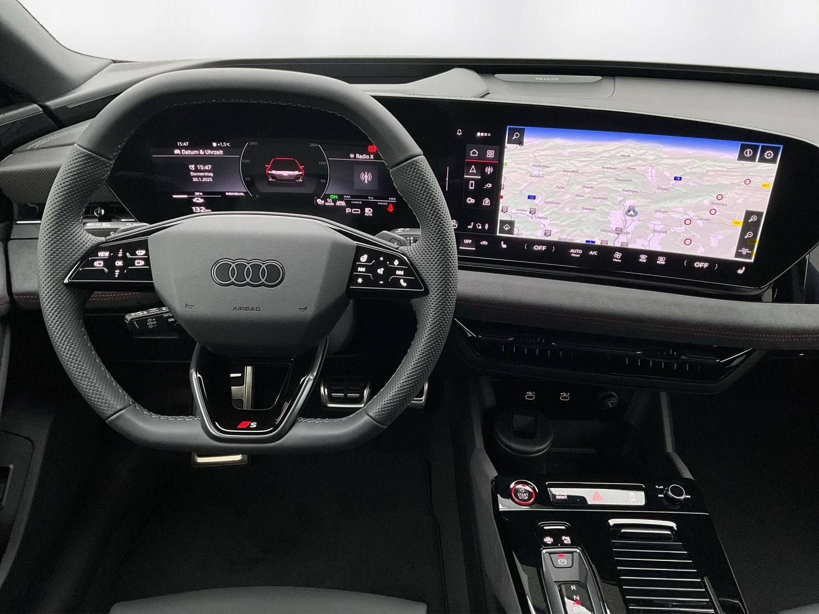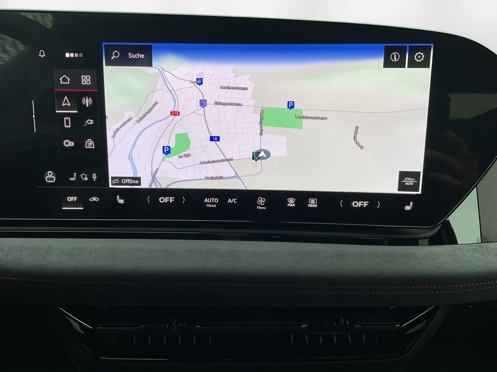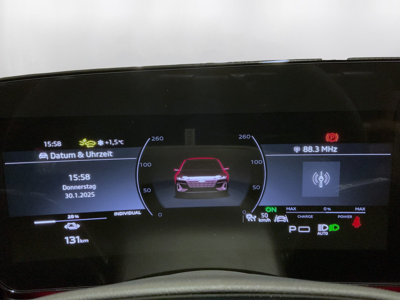 Airbag: Airbag Beifahrer deaktivierbar Airbag: Airbag Fahrer und Beifahrer Airbag: Seitenairbag vorn, mit Kopfairbag und Interaktionsairbag vorn Akustikverglasung Türscheiben vorn Assist: Adaptiver Geschwindigkeitsassistent Assist: Aufmerksamkeits- und Müdigkeitserkennung Assist: Ausweichassistent und Abbiegeassistent Assist: Einparkhilfe plus mit Distanzanzeige Assist: Kamerabasierte Verkehrszeichenerkennung Assist: Kreuzungsassistent Assist: Notbremsassistent vorn Assist: Parkassistent plus Assist: Querverkehrassistent vorn Assist: Spurverlassenswarnung inkl. Notfallassistent Assist: Traktionskontrolle Assist: Verkehrszeichenbasierter Geschwindigkeitsbegrenzer Audi connect Notruf & Service mit Audi connect Remote & Control Audi virtual cockpit plus Aussenspiegel elektrisch einstell-, beheiz- und anklappbar, beidseitig automatisch abblendend Aussenspiegelgehäuse Chromoptik matt silber Dachhimmel in Stoff schwarz Dekor: Akzentflächen und Bedientasten schwarz glänzend Dekor: Dekoreinlagen Aluminium matt gebürstet mit Linearprägung anthrazit Dekor: Instrumententafel-Oberseite schwarz mit Kontrastnaht Dekor: Interieurelemente oben und unten Kunstleder plus Einstiegsleisten mit Aluminiumeinlagen, vorne, beleuchtet, mit S-Schriftzug Elektrische Fensterheber vorne Elektronisches Stabilitäts-Programm (ESP) Fahrwerk: Adaptives S-Luftfederfahrwerk Fensterzierleisten Aluminiumoptik Fussmatten vorne und hinten Garantie: Audi Garantie 2 Jahre ohne Kilometerbegrenzung (ab 1. Inv.) Gepäckraumklappe elektrisch öffnend und schliessend Getriebe: Direktantrieb, kein Getriebe Innenspiegel automatisch abblendbar Interieur mit Sportsitzen, Leder/Kunstleder-Kombination mit S-Prägung Klima: 3-Zonen-Klimatisierungsautomatik Klima: Automatische Umluftregelung Klima: Elektrische Luftzusatzheizung Komfortschlüssel ohne Safelock Lackierung: Uni-Lackierung Ladekabel Mode 3 für öffentliches Laden bis 22 kW Lenkrad: Lenkradapplikation Chromoptik, S-Emblem, Lenkradgriffe perforiertes Leder und Kontrastnaht Lenkrad: Lenkradeinstellung manuell Lenkrad: Sportlederlenkrad, 3-Speichen, oben und unten abgeflacht mit Multifunktion und Schaltwippen Licht: LED-Scheinwerfer plus Licht: Projektionsleuchte in den Aussenspiegeln Licht: Tagesfahrlicht mit Assistenzfahrlicht u.Coming- u. Leaving-home Funktion automatisch Media: Audi Application Store und Smartphone-Interface Media: Audi connect Navigation & Infotainment Media: Digitaler Radioempfang Media: FOD Funktionen online verfügbar Media: MMI experience plus Media: USB-Schnittstellen mit erhöhter Ladeleistung Modellkennzeichnung am Heck On-board-Ladegerät bis 11 kW (AC) Paket: Ambiente Lichtpaket Paket: Assistenzpaket Fahren und Parken Pedalerie und Fussstütze in Edelstahl Räder: Reifendruck-Kontrollanzeige Räder: Reifenreparatur-Set (Tire Fit) Räder: Räder Audi Sport, 5-Speichen-Tripod, schwarz metallic, glanzgedreht Scheinwerfer-Reinigungsanlage Schlüssel für Schliesssystem mit Fernbedienung Sitze: 4-Wege-Lendenwirbelstütze für die Vordersitze Sitze: Kindersitzbefestigung i-Size auf der Beifahrerseite und i-Size und Top Tether Sitze: Rücksitzbank ungeteilt, Lehne geteilt umlegbar (dreiteilig) mit Mittelarmlehne Sitze: Vordersitze elektrisch verstellbar Sitze: Vordersitze heizbar Telefonablage mit induktiver Ladefunktion Türen: Türgriffe in Wagenfarbe Verbandmaterial,Warndreieck und Warnveste Vorbereitung für Anhängevorrichtung Vorbereitung für intelligente Ladefunktionen Wegfahrsperre elektronisch Wärmeschutz- und Akustikverglasung Frontscheibe Zentralverriegelung mit Fernbedienung