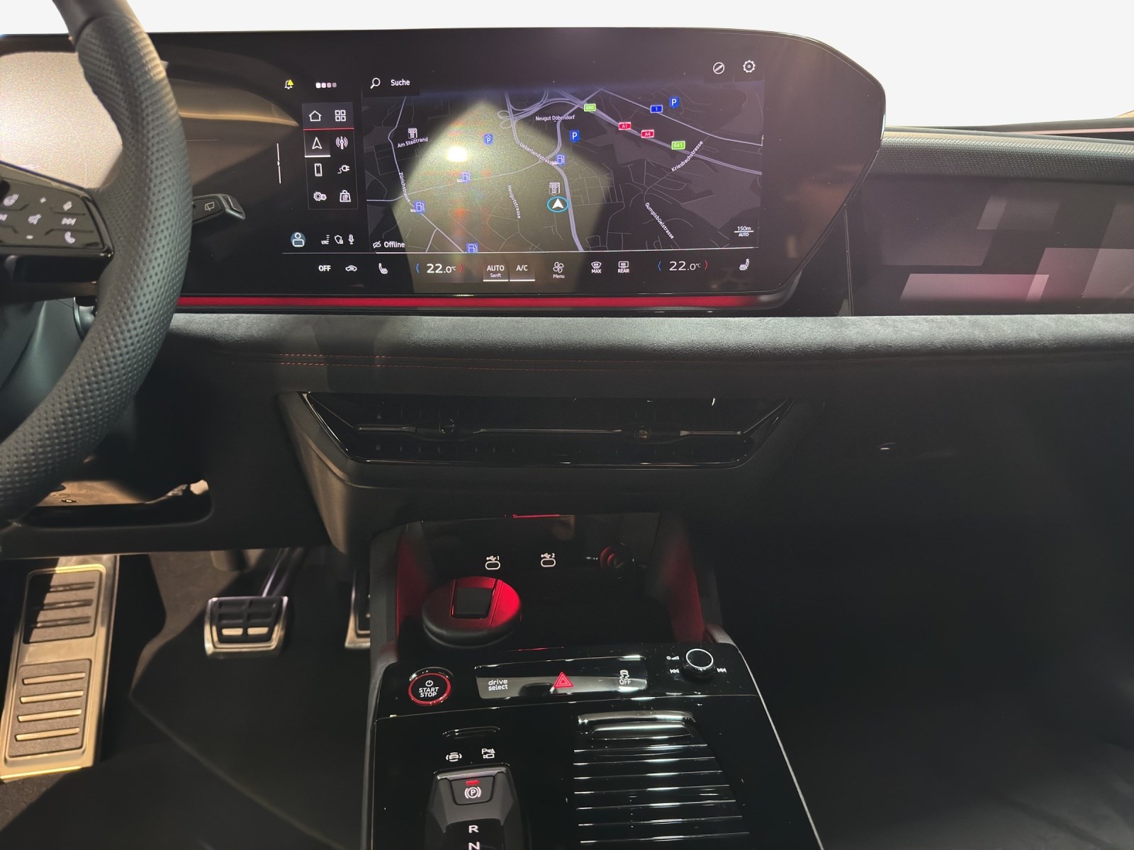 Anhängevorrichtung mechanisch schwenkbar Dekor: Dekoreinlagen Carbon Quadrat Struktur Fahrwerk: Bremssättel rot lackiert Industriestecker CEE 16A, 400V, lang und gerade für das e-tron Ladesystem Komfortschlüssel mit Safelock Lackierung: Metallic-Lackierung Media: MMI Beifahrerdisplay Paket: Ablage- und Gepäckraumpaket und Frontkofferraum Paket: Exterieurpaket schwarz Paket: R-Line "Exterieur & Interieur" Räder: Räder Audi Sport, 5-Arm-Dynamik, schwarz metallic Sonnenschutzverglasung, abgedunkelt Virtuelle Aussenspiegel ohne Projektionsleuchte