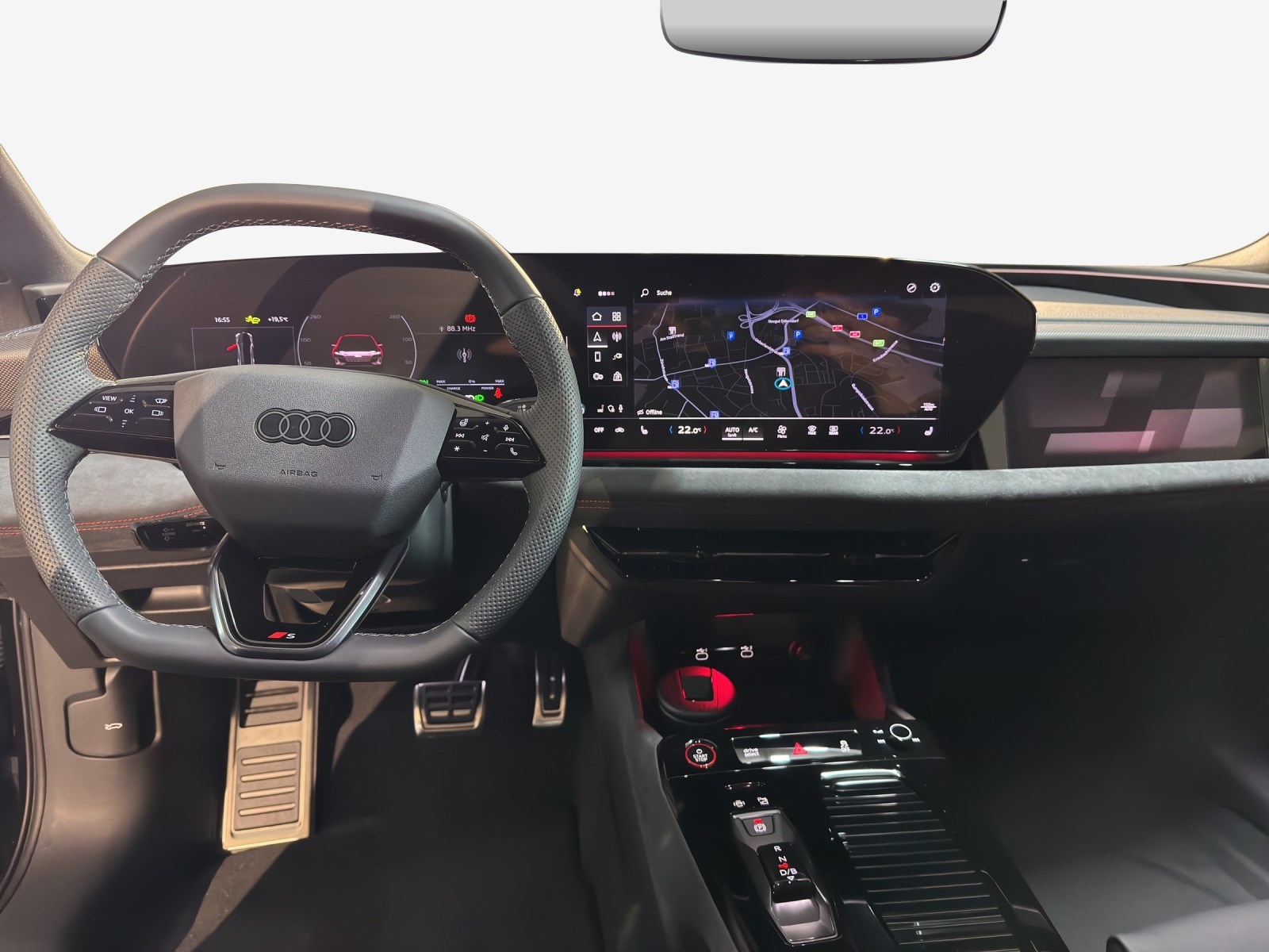 Airbag: Airbag Beifahrer deaktivierbar Airbag: Airbag Fahrer und Beifahrer Airbag: Seitenairbag vorn, mit Kopfairbag und Interaktionsairbag vorn Akustikverglasung Türscheiben vorn Assist: Adaptiver Geschwindigkeitsassistent Assist: Aufmerksamkeits- und Müdigkeitserkennung Assist: Ausweichassistent und Abbiegeassistent Assist: Einparkhilfe plus mit Distanzanzeige Assist: Kamerabasierte Verkehrszeichenerkennung Assist: Kreuzungsassistent Assist: Notbremsassistent vorn Assist: Parkassistent plus Assist: Querverkehrassistent vorn Assist: Spurverlassenswarnung inkl. Notfallassistent Assist: Traktionskontrolle Assist: Verkehrszeichenbasierter Geschwindigkeitsbegrenzer Audi connect Notruf & Service mit Audi connect Remote & Control Audi virtual cockpit plus Aussenspiegel elektrisch einstell-, beheiz- und anklappbar, beidseitig automatisch abblendend Aussenspiegelgehäuse Chromoptik matt silber Dachhimmel in Stoff schwarz Dekor: Akzentflächen und Bedientasten schwarz glänzend Dekor: Dekoreinlagen Aluminium matt gebürstet mit Linearprägung anthrazit Dekor: Instrumententafel-Oberseite schwarz mit Kontrastnaht Dekor: Interieurelemente oben und unten Kunstleder plus Einstiegsleisten mit Aluminiumeinlagen, vorne, beleuchtet, mit S-Schriftzug Elektrische Fensterheber vorne Elektronisches Stabilitäts-Programm (ESP) Fahrwerk: Adaptives S-Luftfederfahrwerk Fensterzierleisten Aluminiumoptik Fussmatten vorne und hinten Garantie: Audi Garantie 2 Jahre ohne Kilometerbegrenzung (ab 1. Inv.) Gepäckraumklappe elektrisch öffnend und schliessend Getriebe: Direktantrieb, kein Getriebe Innenspiegel automatisch abblendbar Interieur mit Sportsitzen, Leder/Kunstleder-Kombination mit S-Prägung Klima: 3-Zonen-Klimatisierungsautomatik Klima: Automatische Umluftregelung Klima: Elektrische Luftzusatzheizung Komfortschlüssel ohne Safelock Lackierung: Uni-Lackierung Ladekabel Mode 3 für öffentliches Laden bis 22 kW Lenkrad: Lenkradapplikation Chromoptik, S-Emblem, Lenkradgriffe perforiertes Leder und Kontrastnaht Lenkrad: Lenkradeinstellung manuell Lenkrad: Sportlederlenkrad, 3-Speichen, oben und unten abgeflacht mit Multifunktion und Schaltwippen Licht: LED-Scheinwerfer plus Licht: Projektionsleuchte in den Aussenspiegeln Licht: Tagesfahrlicht mit Assistenzfahrlicht u.Coming- u. Leaving-home Funktion automatisch Media: Audi Application Store und Smartphone-Interface Media: Audi connect Navigation & Infotainment Media: Digitaler Radioempfang Media: FOD Funktionen online verfügbar Media: MMI experience plus Media: USB-Schnittstellen mit erhöhter Ladeleistung Modellkennzeichnung am Heck On-board-Ladegerät bis 11 kW (AC) Paket: Ambiente Lichtpaket Paket: Assistenzpaket Fahren und Parken Pedalerie und Fussstütze in Edelstahl Räder: Reifendruck-Kontrollanzeige Räder: Reifenreparatur-Set (Tire Fit) Räder: Räder Audi Sport, 5-Speichen-Tripod, schwarz metallic, glanzgedreht Scheinwerfer-Reinigungsanlage Schlüssel für Schliesssystem mit Fernbedienung Sitze: 4-Wege-Lendenwirbelstütze für die Vordersitze Sitze: Kindersitzbefestigung i-Size auf der Beifahrerseite und i-Size und Top Tether Sitze: Rücksitzbank ungeteilt, Lehne geteilt umlegbar (dreiteilig) mit Mittelarmlehne Sitze: Vordersitze elektrisch verstellbar Sitze: Vordersitze heizbar Telefonablage mit induktiver Ladefunktion Türen: Türgriffe in Wagenfarbe Verbandmaterial,Warndreieck und Warnveste Vorbereitung für Anhängevorrichtung Vorbereitung für intelligente Ladefunktionen Wegfahrsperre elektronisch Wärmeschutz- und Akustikverglasung Frontscheibe Zentralverriegelung mit Fernbedienung