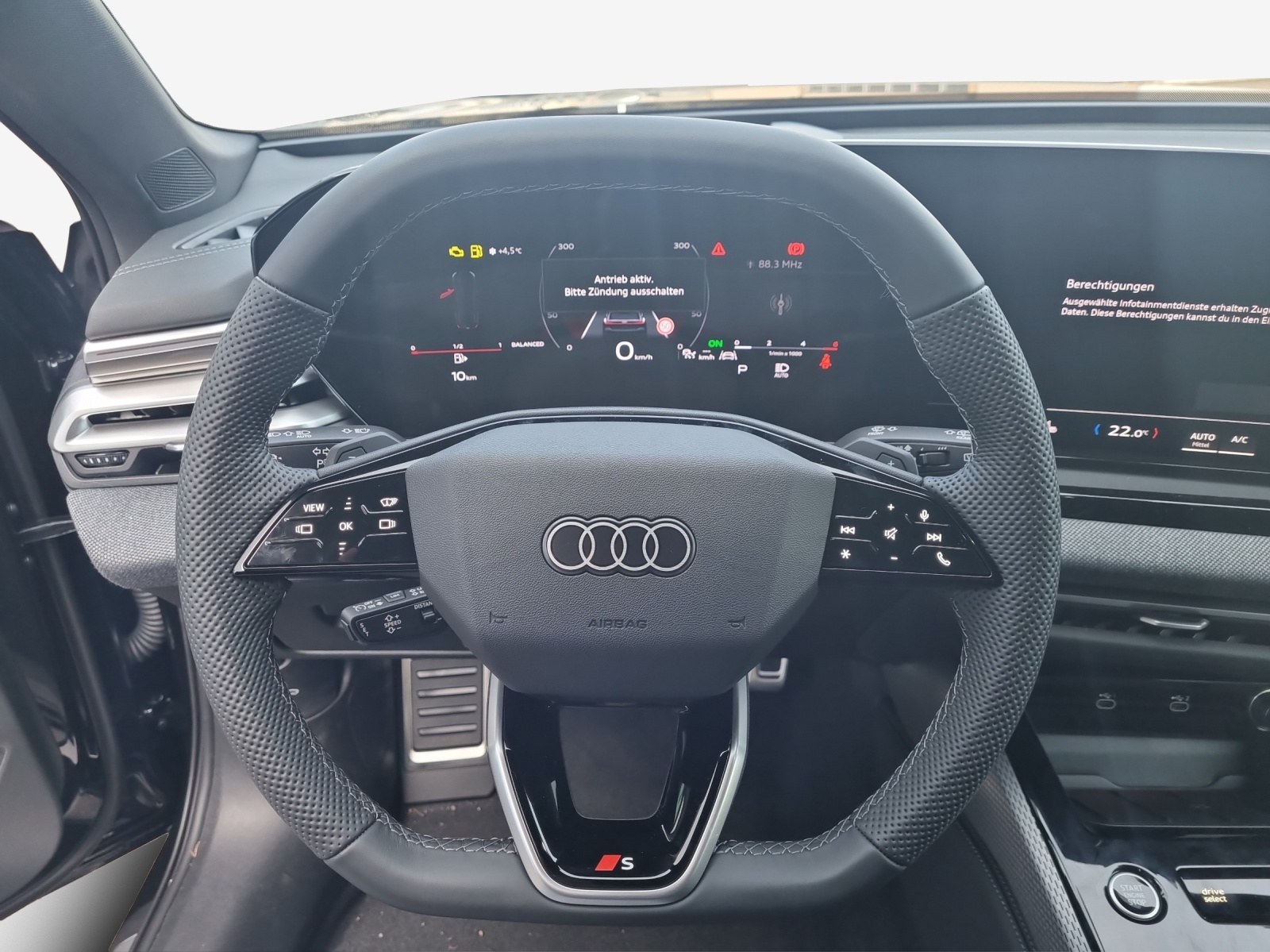 Airbag: Airbag Fahrer und Beifahrer Airbag: Seitenairbags vorn, mit Kopfairbag und Interaktionsairbag vorn Akustisches Fahrzeug-Warnsystem Assist: Ablenkungs- und Müdigkeitserkennung Assist: Adaptiver Geschwindigkeitsassistent Assist: Ausweichassistent und Abbiegeassistent Assist: Einparkhilfe plus mit Distanzanzeige Assist: Kamerabasierte Verkehrszeichenerkennung Assist: Kreuzungsassistent Assist: Notbremsassistent vorn Assist: Parkassistent plus Assist: Spurverlassenswarnung Assist: Traktionskontrolle Assist: Verkehrszeichenbasierter Geschwindigkeitsbegrenzer Audi connect Notruf & Service mit Audi connect Remote & Control Audi virtual cockpit plus Aussenspiegel Fahrerseite asphärisch, Beifahrerseite asphärisch Aussenspiegel elektrisch einstell-, beheiz- und anklappbar, beidseitig automatisch abblendend Aussenspiegel in Wagenfarbe Dachhimmel in Stoff in spezifischer Farbe Dekor: Akzentflächen und Bedientasten schwarz matt Dekor: Aluminiumoptik im Interieur Dekor: Dekoreinlagen Laserstruktur schwarz Dekor: Farbindividualisierung Interieurelemente Audi exclusive Dekor: Interieurapplikationen Aluminiumoptik Dekor: Interieurelemente umlaufend Stoff Impressum Dekor: Interieurelemente umlaufend Stoff Kaskade Einstiegsleisten mit Aluminiumeinlegern vorn Elektrische Fensterheber vorne Elektronisches Stabilitäts-Programm (ESP) Entfall Modellbezeichnung Fahrwerk: Standardfahrwerk Fensterzierleisten Aluminiumoptik Frontscheibe in Wärmeschutz- und Akustikverglasung Funkschlüssel, mit Safelock Funkschlüssel, ohne Safelock Fussmatten vorne und hinten Garantie: Audi Garantie 2 Jahre ohne Kilometerbegrenzung (ab 1. Inv.) Garantie: Audi Swiss Service Package + (ASSP+) Getriebe: 7-Stufen Automatisiertes Schaltgetriebe Innenspiegel automatisch abblendbar Kindersicherung, elektrisch Klima: 3-Zonen-Klimatisierungsautomatik Klima: Ohne Wärmespeicher/Zusatzheizung Lackierung: Uni-Lackierung Lenkrad: Doppelspeichen-Lederlenkrad mit Multifunktion und Schaltwippen Lenkrad: Lenkradapplikation Chromoptik Lenkrad: Lenkradeinstellung manuell Licht: Fernlicht-Assistent Licht: LED-Heckleuchten pro Licht: LED-Scheinwerfer plus Licht: Tagesfahrlicht mit Assistenzfahrlicht u.Coming- u. Leaving-home Funktion automatisch Media: Audi Application Store und Smartphone-Interface Media: Audi connect Navigation & Infotainment Media: Digitaler Radioempfang Media: FOD Funktionen online verfügbar Media: MMI experience plus Media: Navigationsgerät-High Media: USB-Anschlüsse mit Ladefunktion in erster und zweiter Sitzreihe Modellbezeichnung am Heck Paket: Assistenzpaket Fahren und Parken Paket: Klimatisierungspaket Paket: Paket Premium business Räder: Radschrauben Standard Räder: Reifendruck-Kontrollanzeige Räder: Reifenreparatur-Set (Tire Fit) Räder: Räder, 5-Doppelspeichen Scheiben seitlich und hinten in Wärmeschutzverglasung Schlüssel für Schliesssystem mit Fernbedienung Sitze: Kindersitzbefestigung i-Size auf der Beifahrerseite und i-Size und Top Tether Sitze: Sitzbelegungserkennung Sitze: Vordersitze heizbar Sitze: Vordersitze manuell einstellbar Türen: Gepäckraumklappe elektrisch öffnend und schliessend Türen: Türgriffe in Wagenfarbe Verbandmaterial,Warndreieck und Warnveste Wegfahrsperre elektronisch