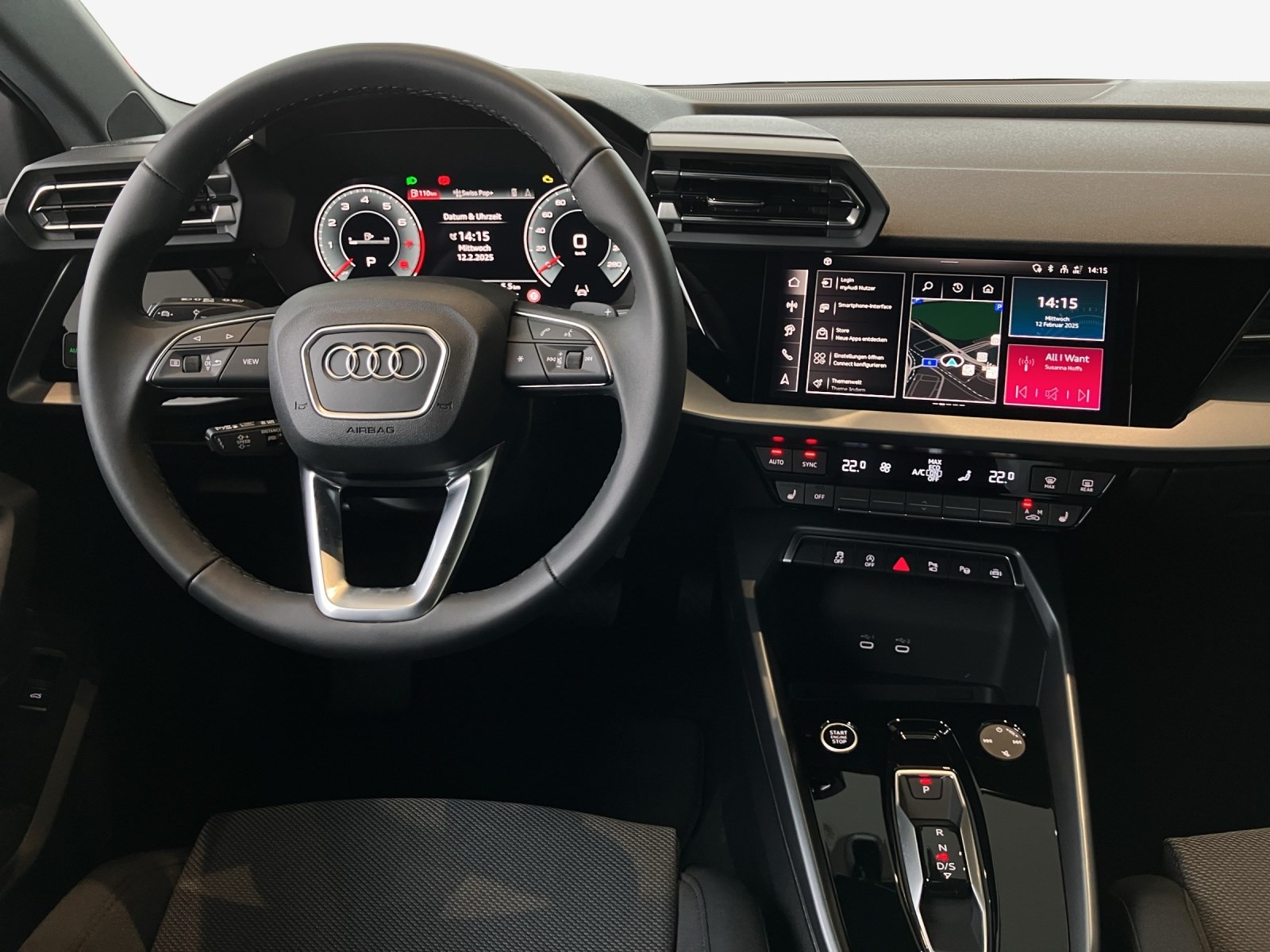 Airbag: Airbag Beifahrer deaktivierbar Assist: Audi pre sense front Assist: Ausweichassistent und Abbiegeassistent Assist: Einparkhilfe hinten Assist: Kamerabasierte Verkehrszeichenerkennung Assist: Proaktiver Insassenschutz Front, Seite und Heck Assist: Spurverlassenswarnung inkl. Notfallassistent Assist: Traktionskontrolle Audi connect Notruf & Service mit Audi connect Remote & Control Aussenspiegel elektrisch einstell- und beheizbar Aussenspiegel in Wagenfarbe Dekor: Dekoreinlage Feinlack vulkangrau Diffusor hinten schwarz matt genarbt Einleger der Lufteinlässe vorn schwarz matt genarbt Einleger im Diffusor in Selenitsilber Elektrische Fensterheber vorne Elektronisches Stabilitäts-Programm (ESP) Fensterschachtleisten in Schwarz Frontscheibe in Wärmeschutzverglasung Funkschlüssel, ohne Safelock Garantie: 2 Jahre ohne Kilometerbegrenzung (ab 1. Inv.) Getriebe: 7-Gang- Automat S tronic Interieur mit Normalsitzen in Stoff schwarz Kindersicherung, elektrisch Klima: 1-Zonen-Klimaautomatik mit Vorbereitung für weitere Klimafunktionen Kühlerschutzgitter schwarz matt genarbt Lackierung: Uni-Lackierung Lenkrad: Lederlenkrad im 3-Speichen-Design mit Multifunktion plus und Schaltwippen Media: Audi phone box light Media: USB-Anschlüsse mit Ladefunktion im Fond Paket: Ambiente Lichtpaket Räder: Reifendruck-Kontrollanzeige Räder: Reifenreparatur-Set (Tire Fit) Räder: Räder, 5-Doppelarm Sitze: Rücksitzlehne umklappbar Sitze: i-Size und Top Tether für die äusseren Fondsitze Wegfahrsperre elektronisch Zentralverriegelung mit Fernbedienung