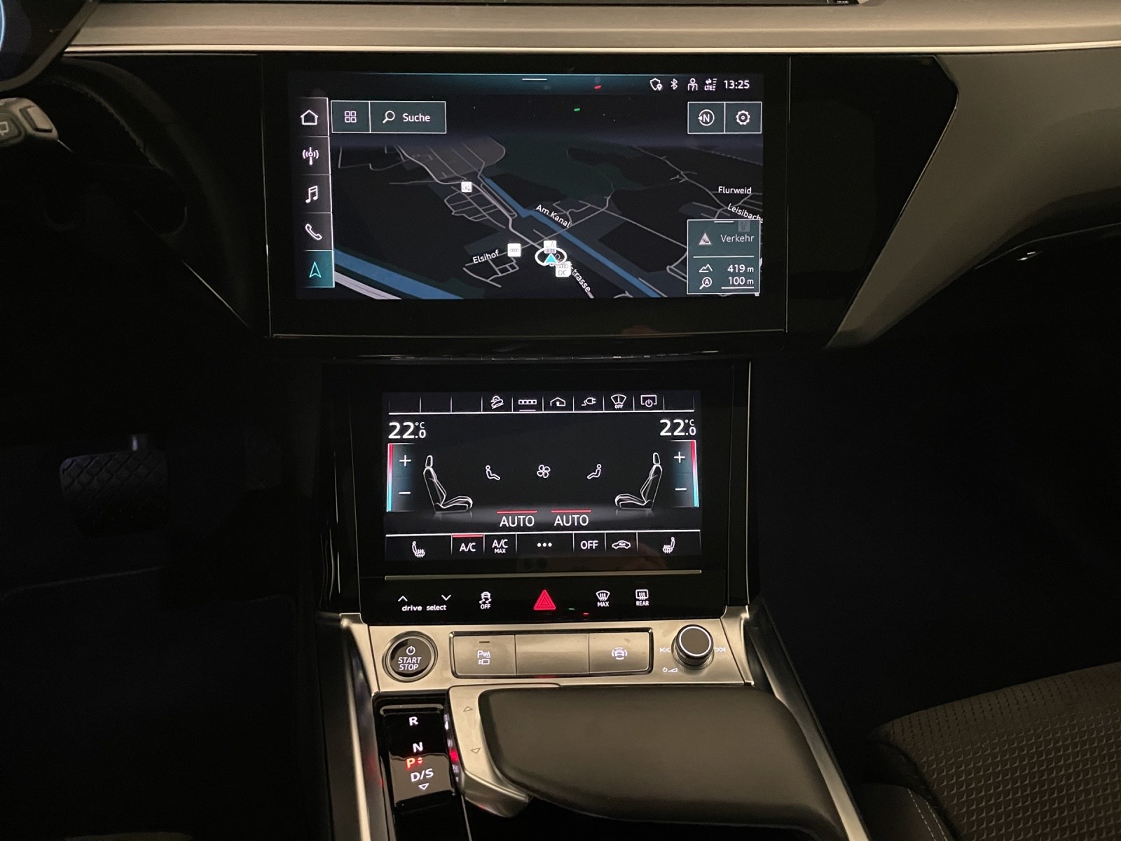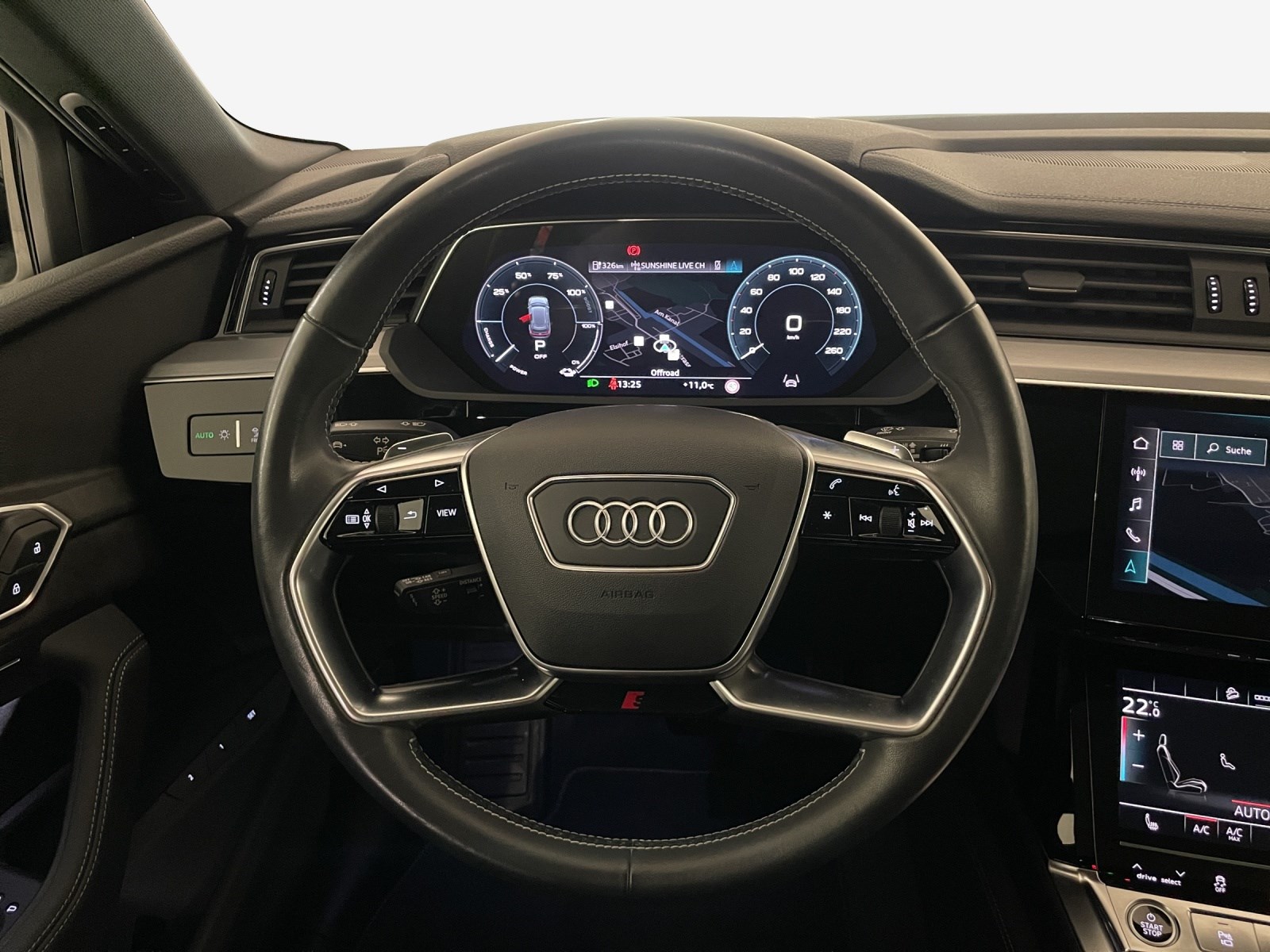 Serienausstattung Airbag: Airbag Beifahrer deaktivierbar Airbag: Seitenairbags vorne Airbag: Window-Kopfairbags Akustisches Fahrzeug-Warnsystem (AVAS) Assist: Geschwindigkeitsregelanlage inklusive Geschwindigkeitsbegrenzer Assist: Spurverlassenswarnung Audi connect Notruf & Service mit Audi connect Remote & Control Aussenspiegel elektrisch einstell- und beheizbar Aussenspiegel in Wagenfarbe Bedientasten schwarz matt Dachhimmel in Stoff mondsilber Dekor: Dekoreinlagen Feinlack graphitgrau Einparkhilfe plus mit Umgebungsanzeige Einstiegsleisten mit Aluminiumeinlegern vorne und hinten, beleuchtet, vorne mit S-Schriftzug Fahrwerk: Adaptive air suspension sport Frontscheibe in Akustikverglasung Fussmatten vorne und hinten Garantie: 2 Jahre ohne Kilometerbegrenzung (ab 1. Inv.) Gepäckraumabdeckung (manuell) Gepäckraumklappe elektrisch öffnend und schliessend Haushaltsstecker Typ J (CH) Industriestecker CEE 16A, 400V, lang und gerade für das e-tron Ladesystem Innenspiegel automatisch abblendbar Kindersitzbefestigung ISOFIX und Top Tether für die Rücksitzbank Kindersitzvorrichtung ISOFIX Beifahrerseite Klima: 2-Zonen-Komfortklimaautomatik Klima: Standklimatisierung Lackierung: Bottom line in Volllackierung (Wagenfarbe) Lackierung: Uni-Lackierung Lenkrad: Doppelspeichen-Lederlenkrad mit Multifunktion und Schaltwippen Licht: LED-Scheinwerfer mit Vorbereitung für weitere Lichtfunktionen Licht: Scheinwerfer-Reinigungsanlage Media: Audi connect Navigation & Infotainment Media: Audi music interface Media: Bluetooth-Schnittstelle Media: Digitaler Radioempfang (DAB) Media: MMI Navigationssystem Plus Modellbezeichnung und Leistungs- / Technologie-Schriftzug On-Board-Ladegerät bis 11 kW (AC) Räder: Leichtmetallräder 20", 5-Arm-Dynamik, graphitgrau, glanzgedreht Räder: Reifendruck-Kontrollanzeige Räder: Reifenreparatur-Set (Tire Fit) S line-Emblem im Kühlerschutzgitter Sitze: Vordersitze höhenverstellbar Sonnenblende Fahrer und Beifahrerseite mit beleuchtetem Spiegel Stossfänger S line in Volllackierung Unterfahrschutz vorne und Diffusor hinten in sportlich markantem Design in Selenitsilber matt Verbandmaterial und Warndreieck e-tron Ladesystem kompakt