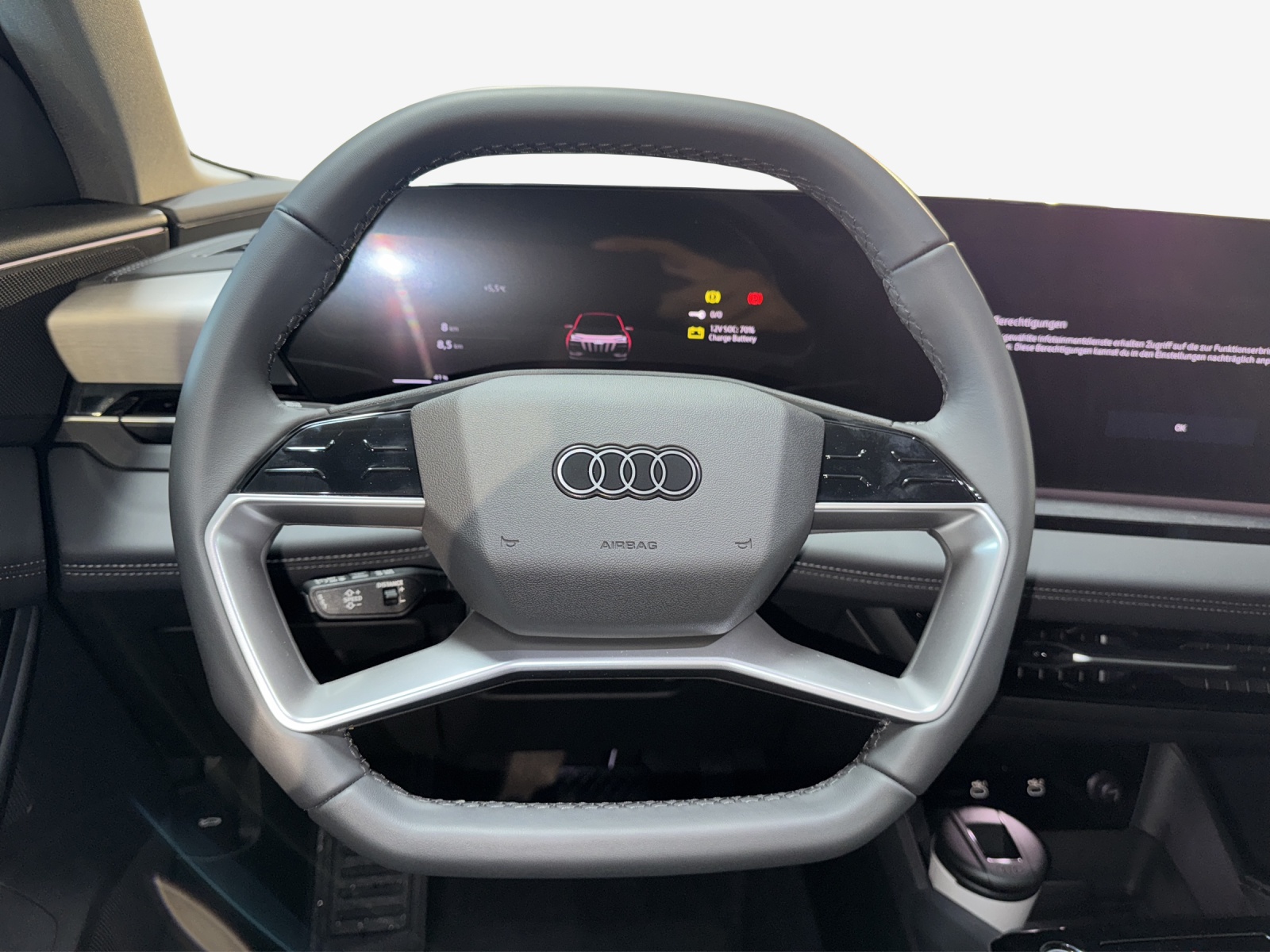 Airbag: Airbag Beifahrer deaktivierbar Airbag: Airbag Fahrer und Beifahrer Airbag: Seitenairbag vorn, mit Kopfairbag und Interaktionsairbag vorn Akustisches Fahrzeug-Warnsystem (AVAS) Assist: Adaptiver Geschwindigkeitsassistent Assist: Aufmerksamkeits- und Müdigkeitserkennung Assist: Ausweichassistent und Abbiegeassistent Assist: Einparkhilfe plus mit Distanzanzeige Assist: Kamerabasierte Verkehrszeichenerkennung Assist: Kreuzungsassistent Assist: Notbremsassistent vorn Assist: Parkassistent plus Assist: Spurverlassenswarnung Assist: Spurwechsel- und Ausstiegswarnung, Querverkehrassistent hinten und Abbiegeassistent hinten Assist: Traktionskontrolle Assist: Verkehrszeichenbasierter Geschwindigkeitsbegrenzer Audi connect Notruf & Service mit Audi connect Remote & Control Audi virtual cockpit plus Aussenspiegel elektrisch einstell-, beheiz- und anklappbar, beidseitig automatisch abblendend Aussenspiegel in Wagenfarbe Dachhimmel Stoff, Farbe felsgrau Dekor: Dekoreinlage Feinlack vulkangrau Dekor: Instrumententafel-Oberseite schwarz mit Kontrastnaht Dekor: Interieurelemente oben und unten Kunstleder Einstiegsleisten mit Aluminiumeinlegern vorn Elektrische Fensterheber vorne Elektronisches Stabilitäts-Programm (ESP) Fahrwerk: Komfortfahrwerk Fensterzierleisten schwarz Fussmatten vorne und hinten Garantie: Audi Garantie 2 Jahre ohne Kilometerbegrenzung (ab 1. Inv.) Getriebe: Direktantrieb, kein Getriebe Innenspiegel automatisch abblendbar Interieur mit Normalsitzen, Stoff schwarz Klima: 3-Zonen-Klimatisierungsautomatik Klima: Automatische Umluftregelung Klima: Elektrische Luftzusatzheizung Komfortmittelarmlehne vorne Komfortschlüssel ohne Safelock Lackierung: Kontrastlackierung Lackierung: Uni-Lackierung Magnetgrau Ladekabel Mode 3 für öffentliches Laden bis 22 kW Ladeleistung bis 270 kW (DC) Lenkrad: Doppelspeichen-Lederlenkrad mit Multifunktion und Schaltwippen Lenkrad: Lenkrad längs- und höhenverstellbar Lenkrad: Lenkrad mit Applikation in Chromoptik Lenkrad: Lenkradapplikation Chromoptik Licht: Fernlicht-Assistent Licht: LED-Heckleuchten pro Licht: LED-Scheinwerfer plus Licht: Projektionsleuchte in den Aussenspiegeln Licht: Tagesfahrlicht mit Assistenzfahrlicht u.Coming- u. Leaving-home Funktion automatisch Media: Audi Application Store und Smartphone-Interface Media: Audi connect Navigation & Infotainment Media: Digitaler Radioempfang Media: FOD Funktionen online verfügbar Media: MMI experience plus Media: Telefonablage mit induktiver Ladefunktion Media: USB-Anschlüsse mit Ladefunktion in erster und zweiter Sitzreihe Modellkennzeichnung am Heck On-board-Ladegerät bis 11 kW (AC) Paket: Ambiente Lichtpaket Paket: Klimatisierungspaket Winter Räder: Reifendruck-Kontrollanzeige Räder: Reifenreparatur-Set (Tire Fit) Räder: Räder, 10-Speichen Scheiben seitlich und hinten in Wärmeschutzverglasung Scheinwerfer-Reinigungsanlage Sitze: Kindersitzbefestigung i-Size auf der Beifahrerseite und i-Size und Top Tether Sitze: Rücksitzbank ungeteilt, Lehne geteilt umlegbar (dreiteilig) mit Mittelarmlehne Sitze: Vordersitze manuell einstellbar Türen: Gepäckraumklappe elektrisch öffnend und schliessend Türgriffe aussen in Wagenfarbe Verbandmaterial,Warndreieck und Warnveste Vorbereitung für Anhängevorrichtung Vorbereitung für intelligente Ladefunktionen Wegfahrsperre elektronisch Wärmeschutz- und Akustikverglasung Frontscheibe Zentralverriegelung mit Fernbedienung