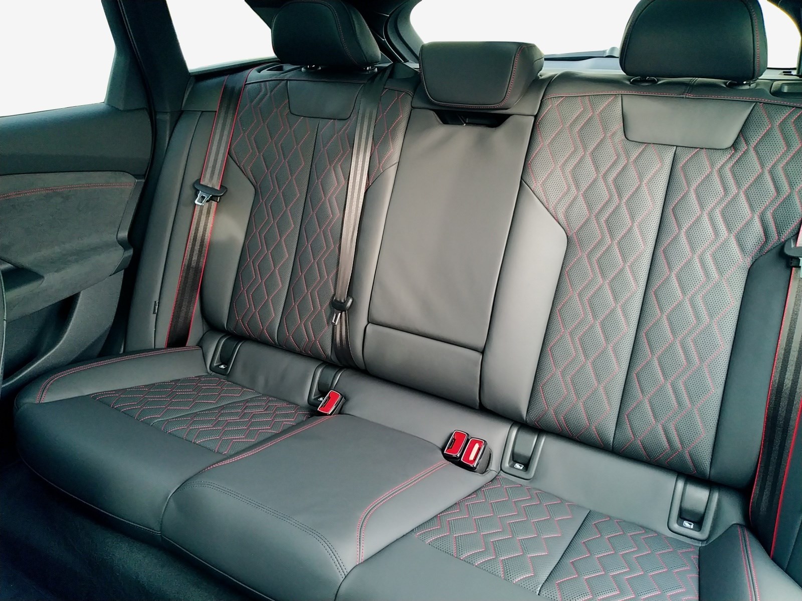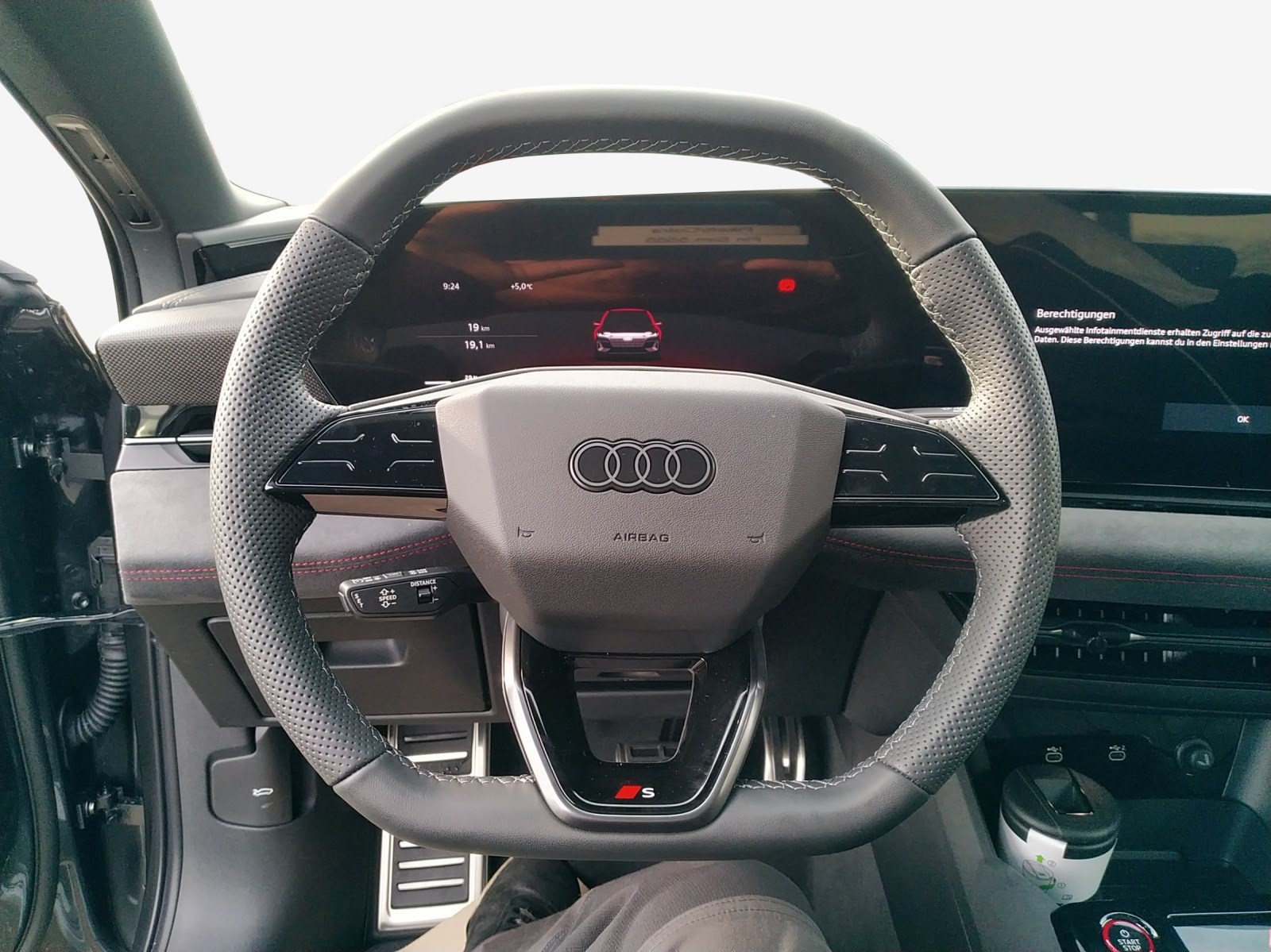 Airbag: Airbag Beifahrer deaktivierbar Airbag: Airbag Fahrer und Beifahrer Airbag: Seitenairbag vorn, mit Kopfairbag und Interaktionsairbag vorn Akustikverglasung Türscheiben vorn Assist: Adaptiver Geschwindigkeitsassistent Assist: Aufmerksamkeits- und Müdigkeitserkennung Assist: Ausweichassistent und Abbiegeassistent Assist: Einparkhilfe plus mit Distanzanzeige Assist: Kamerabasierte Verkehrszeichenerkennung Assist: Kreuzungsassistent Assist: Notbremsassistent vorn Assist: Parkassistent plus Assist: Querverkehrassistent vorn Assist: Spurverlassenswarnung inkl. Notfallassistent Assist: Traktionskontrolle Assist: Verkehrszeichenbasierter Geschwindigkeitsbegrenzer Audi connect Notruf & Service mit Audi connect Remote & Control Audi virtual cockpit plus Aussenspiegel elektrisch einstell-, beheiz- und anklappbar, beidseitig automatisch abblendend Aussenspiegelgehäuse Chromoptik matt silber Dachhimmel in Stoff schwarz Dekor: Akzentflächen und Bedientasten schwarz glänzend Dekor: Dekoreinlagen Aluminium matt gebürstet mit Linearprägung anthrazit Dekor: Instrumententafel-Oberseite schwarz mit Kontrastnaht Dekor: Interieurelemente oben und unten Kunstleder plus Einstiegsleisten mit Aluminiumeinlagen, vorne, beleuchtet, mit S-Schriftzug Elektrische Fensterheber vorne Elektronisches Stabilitäts-Programm (ESP) Fahrwerk: Adaptives S-Luftfederfahrwerk Fensterzierleisten Aluminiumoptik Fussmatten vorne und hinten Garantie: Audi Garantie 2 Jahre ohne Kilometerbegrenzung (ab 1. Inv.) Gepäckraumklappe elektrisch öffnend und schliessend Getriebe: Direktantrieb, kein Getriebe Innenspiegel automatisch abblendbar Interieur mit Sportsitzen, Leder/Kunstleder-Kombination mit S-Prägung Klima: 3-Zonen-Klimatisierungsautomatik Klima: Automatische Umluftregelung Klima: Elektrische Luftzusatzheizung Komfortschlüssel ohne Safelock Lackierung: Uni-Lackierung Ladekabel Mode 3 für öffentliches Laden bis 22 kW Lenkrad: Lenkradapplikation Chromoptik, S-Emblem, Lenkradgriffe perforiertes Leder und Kontrastnaht Lenkrad: Lenkradeinstellung manuell Lenkrad: Sportlederlenkrad, 3-Speichen, oben und unten abgeflacht mit Multifunktion und Schaltwippen Licht: LED-Scheinwerfer plus Licht: Projektionsleuchte in den Aussenspiegeln Licht: Tagesfahrlicht mit Assistenzfahrlicht u.Coming- u. Leaving-home Funktion automatisch Media: Audi Application Store und Smartphone-Interface Media: Audi connect Navigation & Infotainment Media: Digitaler Radioempfang Media: FOD Funktionen online verfügbar Media: MMI experience plus Media: USB-Schnittstellen mit erhöhter Ladeleistung Modellkennzeichnung am Heck On-board-Ladegerät bis 11 kW (AC) Paket: Ambiente Lichtpaket Paket: Assistenzpaket Fahren und Parken Pedalerie und Fussstütze in Edelstahl Räder: Reifendruck-Kontrollanzeige Räder: Reifenreparatur-Set (Tire Fit) Räder: Räder Audi Sport, 5-Speichen-Tripod, schwarz metallic, glanzgedreht Scheinwerfer-Reinigungsanlage Schlüssel für Schliesssystem mit Fernbedienung Sitze: 4-Wege-Lendenwirbelstütze für die Vordersitze Sitze: Kindersitzbefestigung i-Size auf der Beifahrerseite und i-Size und Top Tether Sitze: Rücksitzbank ungeteilt, Lehne geteilt umlegbar (dreiteilig) mit Mittelarmlehne Sitze: Vordersitze elektrisch verstellbar Sitze: Vordersitze heizbar Telefonablage mit induktiver Ladefunktion Türen: Türgriffe in Wagenfarbe Verbandmaterial,Warndreieck und Warnveste Vorbereitung für Anhängevorrichtung Vorbereitung für intelligente Ladefunktionen Wegfahrsperre elektronisch Wärmeschutz- und Akustikverglasung Frontscheibe Zentralverriegelung mit Fernbedienung