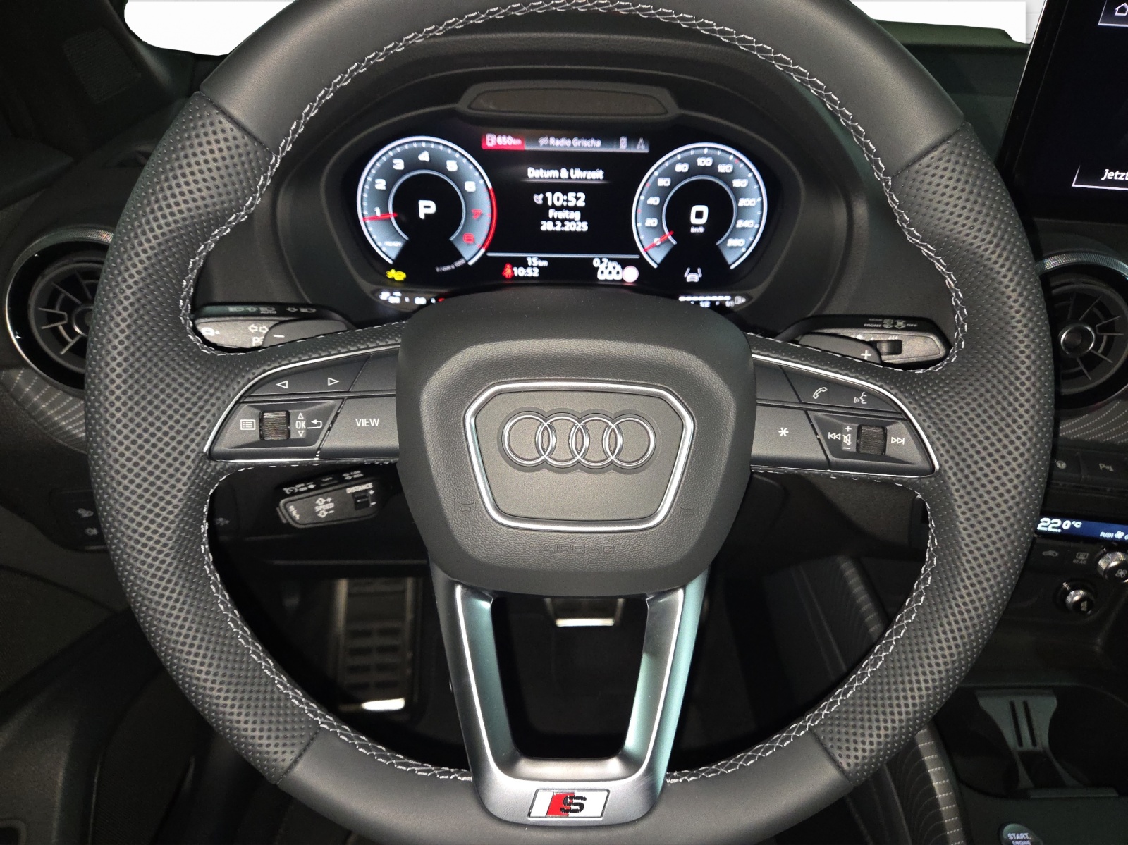 3-Punkt-Sicherheitsgurte auf allen Plätzen Airbag: Airbag für Fahrer und Beifahrer mit Beifahrer-Airbag-Deaktivierung Airbag: Seitenairbags vorn und Kopfairbagsystem Assist: Geschwindigkeitsbegrenzer Aussenspiegel elektrisch einstell- und beheizbar Aussenspiegel in Wagenfarbe Bremsbelag-Verschleissanzeige Dekor: Dekoreinlagen Diamantlack silbergrau Einstiegsleisten mit Aluminiumeinlagen, vorne, beleuchtet, mit S-Schriftzug Elektronische Stabilisierungskontrolle (ESC) Elektronisches Stabilitäts-Programm (ESP) Frontscheibe mit grauem Colorstreifen Funkschlüssel, ohne Safelock Fussmatten vorne und hinten Garantie: 2 Jahre ohne Kilometerbegrenzung (ab 1. Inv.) Gepäckraumklappe (manuell) Getriebe: 7-Gang- Automat S tronic Heckscheiben-Wisch-/Waschanlage Klima: Elektrische Luftzusatzheizung Klima: Manuelle Klimaanlage Lackierung: Uni-Lackierung Lenkrad: Lederlenkrad im 3-Speichen-Design mit Multifunktion plus Licht: Drittes Bremslicht Licht: Nebelschlussleuchte Media: 4 Lautsprecher vorne Media: Audi Smartphone Interface Media: Audi connect Remote & Control Media: Audi music interface Media: Bluetooth-Schnittstelle Media: Digitaler Radioempfang Modellkennzeichnung gemäss neuer Leistungskennzeichnung Parkbremse, elektromechanisch Räder: Leichtmetallräder, 5-Arm-Stern Räder: Reifendruck-Kontrollanzeige Räder: Reifenreparatur-Set (Tire Fit) Sitze: Fahrersitz manuell höheneinstellbar Sitze: ISOFIX und Top Tether für Fondsitze aussen Sitze: Kopfstützen hinten (3 Stück) Sitze: Rücksitzlehne umklappbar Stossfänger S line in Volllackierung Verbandmaterial und Warndreieck Wegfahrsperre elektronisch