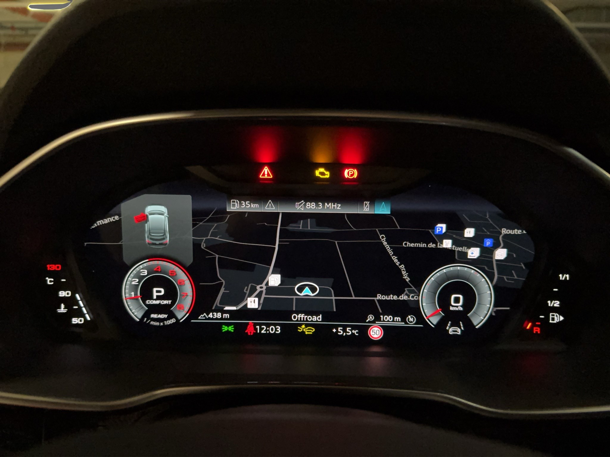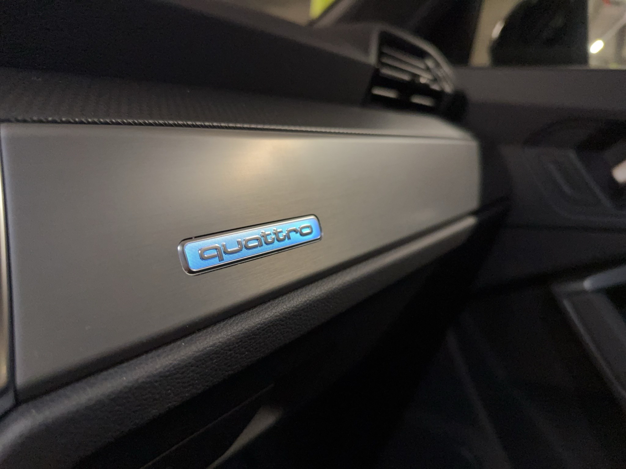 [6XL] Rétroviseurs ext. avec fonction de mémori, gradation autom. et réglage électrique, chauffants, incl. bordures de trottoir droite [QJ1] Décor: Aspect aluminium à l'intérieur [A41] Audi Swiss Service Package+ [YMZ] Film adhénsif d'anneaux Audi latéral [6Y] gris daytona nacré [PA2] Pack dynamique [2JD] Peinture intégrale [7HC] Accoudoir de porte en simili cuir
