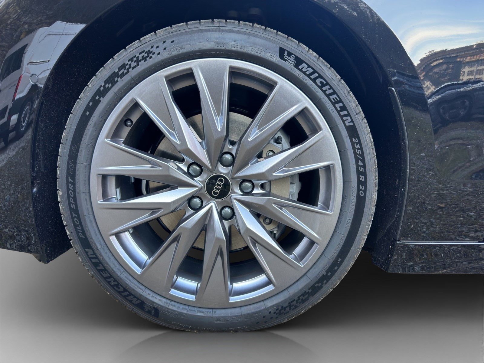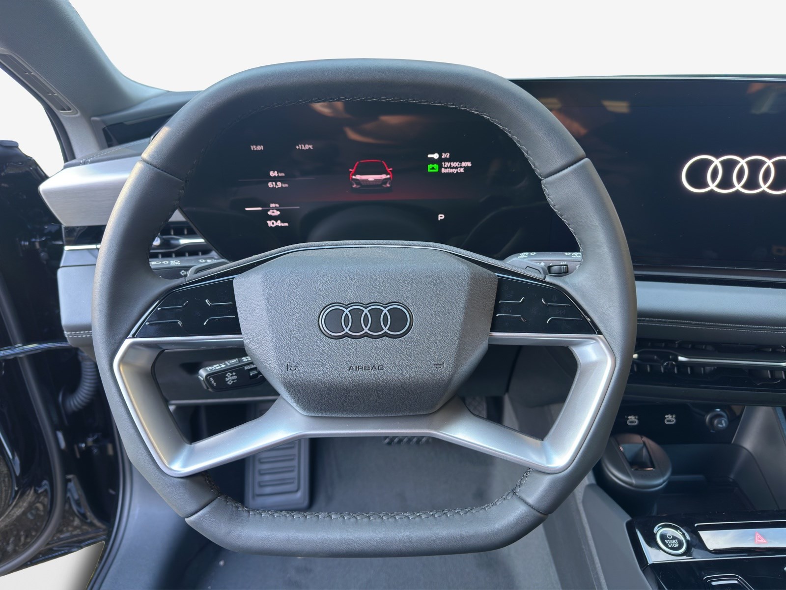 Airbag: Airbag Beifahrer deaktivierbar Airbag: Airbag Fahrer und Beifahrer Airbag: Seitenairbag vorn, mit Kopfairbag und Interaktionsairbag vorn Akustikverglasung Türscheiben vorn Akustisches Fahrzeug-Warnsystem Assist: Adaptiver Geschwindigkeitsassistent Assist: Aufmerksamkeits- und Müdigkeitserkennung Assist: Ausweichassistent und Abbiegeassistent Assist: Einparkhilfe plus mit Distanzanzeige Assist: Kamerabasierte Verkehrszeichenerkennung Assist: Kreuzungsassistent Assist: Notbremsassistent vorn Assist: Parkassistent plus Assist: Querverkehrassistent vorn Assist: Spurverlassenswarnung inkl. Notfallassistent Assist: Traktionskontrolle Assist: Verkehrszeichenbasierter Geschwindigkeitsbegrenzer Audi connect Notruf & Service mit Audi connect Remote & Control Audi virtual cockpit plus Aussenspiegel elektrisch einstell-, beheiz- und anklappbar, beidseitig automatisch abblendend Aussenspiegel in Wagenfarbe Dachhimmel Stoff, Farbe felsgrau Dekor: Dekoreinlage Aluminium matt gebürstet anthrazit Dekor: Instrumententafel-Oberseite schwarz mit Kontrastnaht Dekor: Interieurelemente oben und unten Kunstleder Einstiegsleisten mit Aluminiumeinlegern vorn Elektrische Fensterheber vorne Elektronisches Stabilitäts-Programm (ESP) Fahrwerk: Dynamikfahrwerk Fensterzierleisten Aluminiumoptik Fussmatten vorne und hinten Garantie: Audi Garantie 2 Jahre ohne Kilometerbegrenzung (ab 1. Inv.) Gepäckraumklappe elektrisch öffnend und schliessend Getriebe: Direktantrieb, kein Getriebe Innenspiegel automatisch abblendbar Interieur mit Normalsitzen, Stoff schwarz Klima: 3-Zonen-Klimatisierungsautomatik Klima: Automatische Umluftregelung Klima: Elektrische Luftzusatzheizung Komfortschlüssel ohne Safelock Lackierung: Uni-Lackierung Ladekabel Mode 3 für öffentliches Laden bis 22 kW Lenkrad: Doppelspeichen-Lederlenkrad mit Multifunktion Lenkrad: Lenkradapplikation Chromoptik Lenkrad: Lenkradeinstellung manuell Licht: LED-Scheinwerfer plus Licht: Projektionsleuchte in den Aussenspiegeln Licht: Tagesfahrlicht mit Assistenzfahrlicht u.Coming- u. Leaving-home Funktion automatisch Media: Audi Application Store und Smartphone-Interface Media: Audi connect Navigation & Infotainment Media: Digitaler Radioempfang Media: FOD Funktionen online verfügbar Media: MMI experience plus Media: USB-Schnittstellen mit erhöhter Ladeleistung Modellkennzeichnung am Heck On-board-Ladegerät bis 11 kW (AC) Paket: Ambiente Lichtpaket Paket: Assistenzpaket Fahren und Parken Räder: Reifendruck-Kontrollanzeige Räder: Reifenreparatur-Set (Tire Fit) Räder: Räder, 5-Arm-Dynamik, platingrau Scheinwerfer-Reinigungsanlage Schlüssel für Schliesssystem mit Fernbedienung Sitze: 4-Wege-Lendenwirbelstütze für die Vordersitze Sitze: Kindersitzbefestigung i-Size auf der Beifahrerseite und i-Size und Top Tether Sitze: Rücksitzbank ungeteilt, Lehne geteilt umlegbar (dreiteilig) mit Mittelarmlehne Sitze: Vordersitze heizbar Sitze: Vordersitze manuell einstellbar Telefonablage mit induktiver Ladefunktion Türen: Türgriffe in Wagenfarbe Verbandmaterial,Warndreieck und Warnveste Vorbereitung für Anhängevorrichtung Vorbereitung für intelligente Ladefunktionen Wegfahrsperre elektronisch Wärmeschutz- und Akustikverglasung Frontscheibe Zentralverriegelung mit Fernbedienung