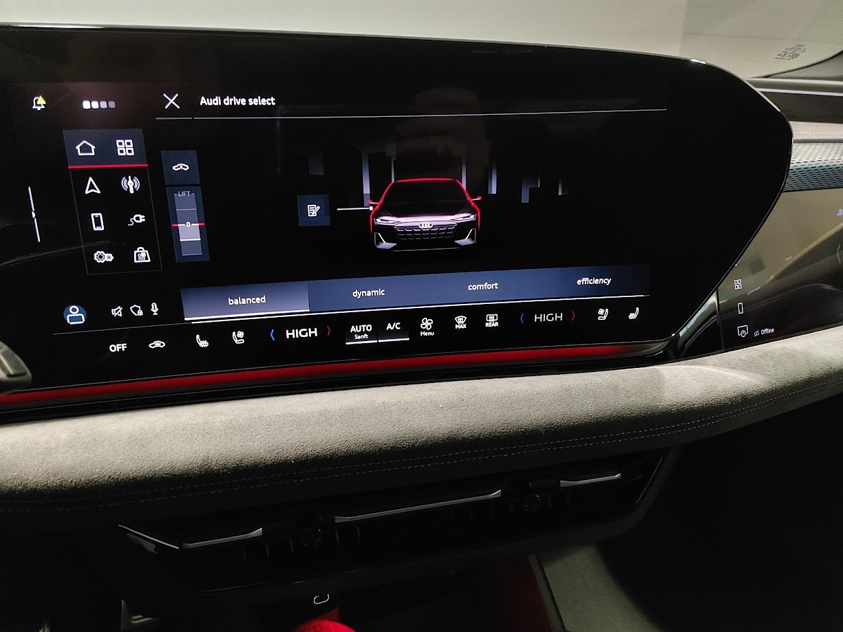 Airbag: Airbag Beifahrer deaktivierbar Airbag: Airbag Fahrer und Beifahrer Airbag: Seitenairbag vorn, mit Kopfairbag und Interaktionsairbag vorn Akustikverglasung Türscheiben vorn Akustisches Fahrzeug-Warnsystem Assist: Adaptiver Geschwindigkeitsassistent Assist: Aufmerksamkeits- und Müdigkeitserkennung Assist: Ausweichassistent und Abbiegeassistent Assist: Einparkhilfe plus mit Distanzanzeige Assist: Kamerabasierte Verkehrszeichenerkennung Assist: Kreuzungsassistent Assist: Notbremsassistent vorn Assist: Parkassistent plus Assist: Querverkehrassistent vorn Assist: Spurverlassenswarnung inkl. Notfallassistent Assist: Traktionskontrolle Assist: Verkehrszeichenbasierter Geschwindigkeitsbegrenzer Audi connect Notruf & Service mit Audi connect Remote & Control Audi virtual cockpit plus Aussenspiegel elektrisch einstell-, beheiz- und anklappbar, beidseitig automatisch abblendend Aussenspiegel in Wagenfarbe Dachhimmel Stoff, Farbe felsgrau Dekor: Dekoreinlage Aluminium matt gebürstet anthrazit Dekor: Dekoreinlagen Aluminium matt gebürstet mit Linearprägung anthrazit Dekor: Dekoreinlagen Audi exclusive Dekor: Instrumententafel-Oberseite schwarz mit Kontrastnaht Dekor: Interieurapplikationen Vanadiumoptik Dekor: Interieurelemente oben und unten Kunstleder Einstiegsleisten mit Aluminiumeinlegern vorn Elektrische Fensterheber vorne Elektronisches Stabilitäts-Programm (ESP) Entfall Modellbezeichnung Fahrwerk: Dynamikfahrwerk Fensterzierleisten Aluminiumoptik Fussmatten vorne und hinten Garantie: Audi Garantie 2 Jahre ohne Kilometerbegrenzung (ab 1. Inv.) Garantie: Audi Swiss Service Package + (ASSP+) Gepäckraumklappe elektrisch öffnend und schliessend Getriebe: Direktantrieb, kein Getriebe Industriestecker CEE 16A, 400V, lang und gerade für das e-tron Ladesystem Industriestecker CEE 32A, 400V, lang und gerade Innenspiegel automatisch abblendbar Interieur mit Normalsitzen, Stoff schwarz Klima: 3-Zonen-Klimatisierungsautomatik Klima: Automatische Umluftregelung Klima: Elektrische Luftzusatzheizung Komfortschlüssel mit Safelock Komfortschlüssel ohne Safelock Lackierung: Uni-Lackierung Ladekabel Mode 3 für öffentliches Laden bis 22 kW Lenkrad: Doppelspeichen-Lederlenkrad mit Multifunktion Lenkrad: Lenkradapplikation Chromoptik Lenkrad: Lenkradeinstellung manuell Licht: LED-Scheinwerfer plus Licht: Projektionsleuchte in den Aussenspiegeln Licht: Tagesfahrlicht mit Assistenzfahrlicht u.Coming- u. Leaving-home Funktion automatisch Media: Audi Application Store und Smartphone-Interface Media: Audi connect Navigation & Infotainment Media: Digitaler Radioempfang Media: FOD Funktionen online verfügbar Media: LTE-Unterstützung für Audi phone box Media: MMI Beifahrerdisplay Media: MMI experience plus Media: USB-Schnittstellen mit erhöhter Ladeleistung Modellkennzeichnung am Heck On-board-Ladegerät bis 11 kW (AC) Paket: Ambiente Lichtpaket Paket: Assistenzpaket Fahren und Parken Räder: Reifendruck-Kontrollanzeige Räder: Reifenreparatur-Set (Tire Fit) Räder: Räder, 5-Arm-Dynamik, platingrau Scheinwerfer-Reinigungsanlage Schlüssel für Schliesssystem mit Fernbedienung Sitze: 4-Wege-Lendenwirbelstütze für die Vordersitze Sitze: Kindersitzbefestigung i-Size auf der Beifahrerseite und i-Size und Top Tether Sitze: Rücksitzbank ungeteilt, Lehne geteilt umlegbar (dreiteilig) mit Mittelarmlehne Sitze: Vordersitze heizbar Sitze: Vordersitze manuell einstellbar Telefonablage mit induktiver Ladefunktion Türen: Türgriffe in Wagenfarbe Verbandmaterial mit 2 Warndreiecken Verbandmaterial,Warndreieck und Warnveste Vorbereitung für Anhängevorrichtung Vorbereitung für intelligente Ladefunktionen Wegfahrsperre elektronisch Wärmeschutz- und Akustikverglasung Frontscheibe Zentralverriegelung mit Fernbedienung