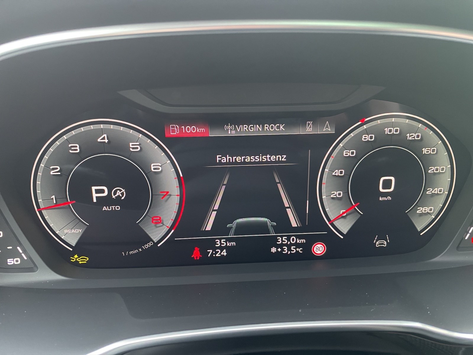 [6XL] Aussenspiegel mit Memoryfunktion, autom. abblendend und el. anklappbar, beheizbar, inkl. Bordsteinautomatik für Beifahrerseite [6Y] daytonagrau perleffekt [5MB] Dekor: Dekoreinlagen Carbon Köper [EI] schwarz - felsgrau [GB1] LTE-Unterstützung für Audi phone box [7HC] Türarmauflage in Kunstleder [A41] Audi Swiss Service Package+ [YMZ] Folierung Audi Ringe seitlich [QJ1] Dekor: Aluminiumoptik im Interieur [UG5] Assist: Bergabfahrassistent