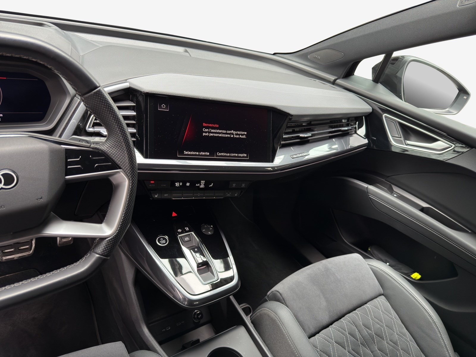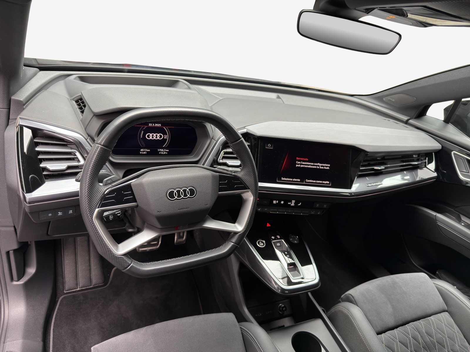 Capot de coffre électrique avec déverrouillage de coffre piloté par capteur Clé de confort sans Safelock Décor: Incrustation, tissu technique, anthracite Lumière: Phares à LED Audi Matrix Mèdias: Système audio SONOS haut de gamme Pack: Intérieur S line avec sièges sport en combinaison microfibre Dinamica / cuir synthétique noir Pack: Le pack Esthétique noir plus Pack: Pack Infodivertissement Suisse Pack: Pack extérieur S line Peinture: Peinture intégrale Peinture: Peinture métallisée Prise industrielle CEE 16A, 400V, longue et droite pour le système de charge e-tron Roues: Jantes en alliage léger, à 5 rayons en Y Suppression de la désignation du modèle et du lettrage de service / technologie Suspension: Châssis sportif Système de recharge compact e-tron Vitrage Privacy (vitres teintées) Vorrüstung Anhängerkupplung