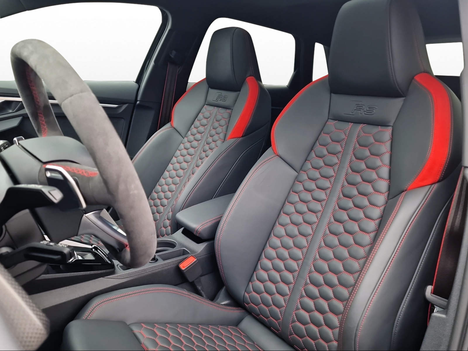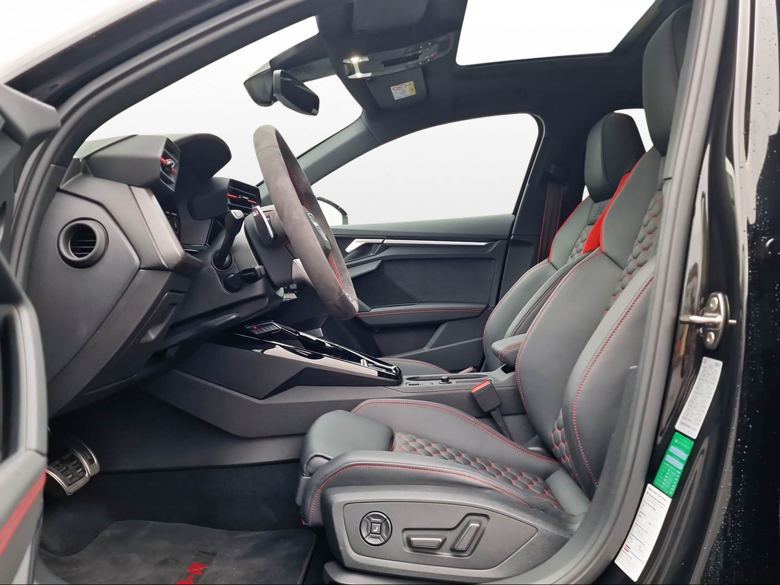 3-Punkt-Sicherheitsgurte auf allen Plätzen Airbag: Airbag für Fahrer und Beifahrer mit Beifahrer-Airbag-Deaktivierung Airbag: Seitenairbags vorn mit Kopfairbagsystem Assist: Geschwindigkeitsbegrenzungsanlage bis 250 km/h Assist: Geschwindigkeitsregelanlage plus Assist: Parkassistent mit Einparkhilfe plus Assist: Proaktiver Insassenschutz Front, Seite und Heck Audi virtual cockpit plus mit zusätzlichem RS-Layout Aussenspiegel elektrisch einstell- und beheizbar Dachhimmel in Stoff schwarz Dachkantenspoiler in Wagenfarbe Dekor: Dekoreinlage Carbon Atlas Struktur Einstiegsleisten in den Türausschnitten, beleuchtet Elektromechanische Parkbremse Elektronische Stabilisierungskontrolle (ESC) Fahrwerk: RS-Sportfahrwerk Frontscheibe in Akustikverglasung Fussmatten vorne und hinten Garantie: 2 Jahre ohne Kilometerbegrenzung (ab 1. Inv.) Getriebe: 7-Gang- Automat S tronic Klima: 2-Zonen-Komfortklimaautomatik Lackierung: Uni-Lackierung Lenkrad: RS-Sportkontur-Lederlenkrad im 3-Speichen-Design Licht: Drittes Bremslicht Licht: Einstiegs LED mit RS-Projektion vorn Licht: LED Heckleuchten mit dynamischem Blinklicht Licht: Nebelschlussleuchte Media: Bluetooth-Schnittstelle Media: Digitaler Radioempfang Media: Lautsprecher (passiv) Paket: Ablagen- und Gepäckraumpaket Paket: Ambiente Lichtpaket plus Paket: Optikpaket schwarz Pedalerie und Fussstütze in Edelstahl Polster: Sitzbezüge in Mikrofaser Dinamica / Kunstleder mono.pur RS-Exterieurumfänge in schwarz matt Räder: Reifendruck-Kontrollanzeige Räder: Reifenreparatur-Set (Tire Fit) Räder: Räder, 10-Y-Speichen, platingrau, glanzgedreht Scheinwerfer-Reinigungsanlage Sitze: Rücksitzlehne, geteilt umklappbar Sitze: Vordersitze manuell einstellbar Verbandmaterial und Warndreieck Wegfahrsperre elektronisch Zentralverriegelung mit Fernbedienung