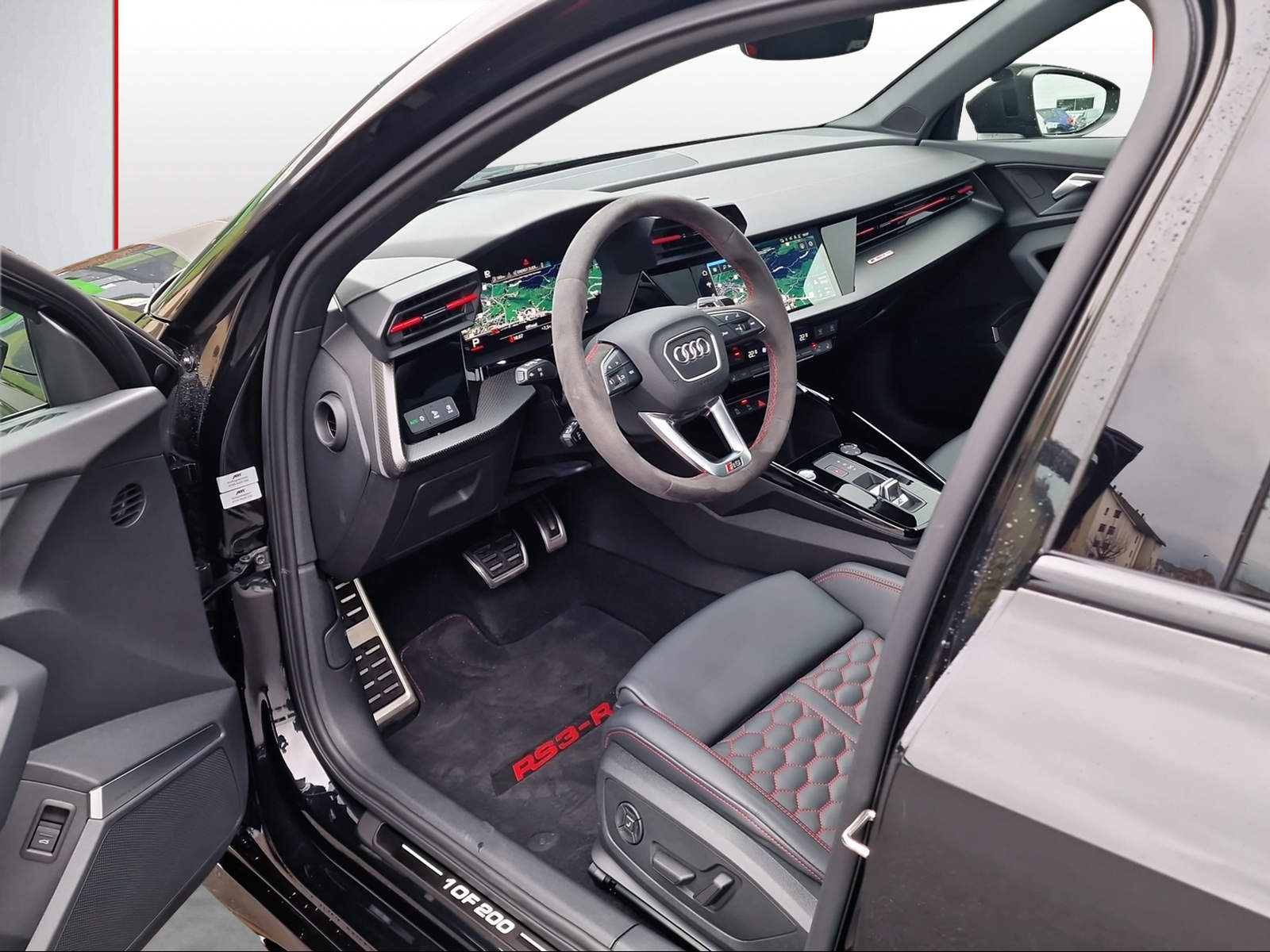 Airbag: Seitenairbags vorn und hinten mit Kopfairbagsystem Assist: Adaptiver Fahrassistent mit Notfallassistent Assist: Adaptiver Geschwindigkeitsassistent Assist: Audi pre sense basic Assist: Kamerabasierte Verkehrszeichenerkennung Assist: Spurwechselwarnung mit Ausstiegswarnung und Querverkehrassistent hinten Dachkantenspoiler in Carbon Dekor: Dekoreinlagen und Akzentflächen Carbon Atlas matt Fahrwerk: Adaptives Fahrwerk mit Audi drive select Frontscheibe in Wärmeschutzverglasung Innenspiegel automatisch abblendend, rahmenlos Klima: 3-Zonen-Klimatisierungsautomatik Komfortschlüssel ohne Safelock Lackierung: Metallic-Lackierung Lenkrad: Lederlenkrad im 3-Speichen-Design mit Multifunktion plus und Schaltwippen Licht: Abgedunkelte Matrix LED-Scheinwerfer mit dynamischem Blinklicht Media: Audi Smartphone Interface Media: Audi connect Navigation & Infotainment Media: Audi connect Navigation & Infotainment plus Media: Bang & Olufsen Premium Soundsystem mit 3D Klang Media: LTE-Unterstützung für Audi phone box Media: MMI Navigationssystem Plus mit MMI touch Media: USB-Anschlüsse mit Ladefunktion im Fond Paket: Assistenzpaket mit MMI Navigation plus Paket: Paket Infotainment Paket: RS-Designpaket plus rot Paket: RS-Dynamikpaket plus Polster: Sitzbezüge in Leder Feinnappa mit RS-Prägung und Wabensteppung Privacy-Verglasung (Scheiben abgedunkelt) RS-Exterieurumfänge in schwarz glänzend RS-Keramikbremsanlage mit Bremssätteln in Rot glänzend Reifendruckkontrollsystem Räder: Räder, 5-Y-Speichen, schwarz matt Sitze: Kindersitzbefestigung ISOFIX vorn, Top Tether und i-Size für die äusseren Fondsitze Sitze: Lendenwirbelstütze, pneumatisch einstellbar mit Massagefunktion Sitze: Vordersitze elektrisch verstellbar, Fahrersitz mit Memory-Funktion Sitze: Vordersitze heizbar Türen: Komfortöffnung Gepäckraumklappe Zigarettenanzünder und Aschenbecher