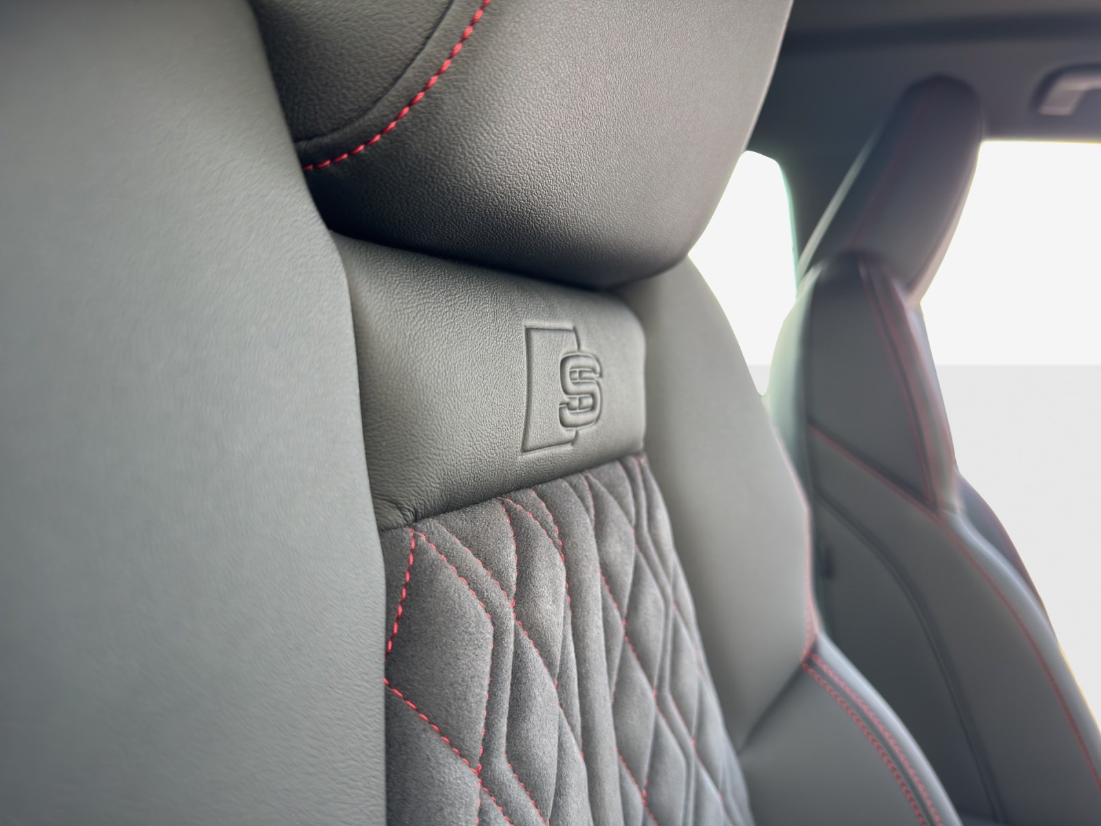 Entfall Modellbezeichnung und Leistungs- / Technologie-Schriftzug Farbnähte in Rot Audi Sport Gepäckraumklappe elektrisch mit sensorgesteuerter Gepäckraumentriegelung Komfortschlüssel ohne Safelock Lackierung: Metallic-Lackierung Lackierung: Volllackierung Licht: Audi Matrix LED-Scheinwerfer Paket: Infotainmentpaket Schweiz Paket: Interieur S line mit Sportsitzen in Mikrofaser Dinamica / Kunstleder-Kombination schwarz Paket: Komfortpaket Schweiz Paket: Optikpaket schwarz plus Paket: S line Exterieur Paket Räder: Leichtmetallräder, 5-Y-Speichen
