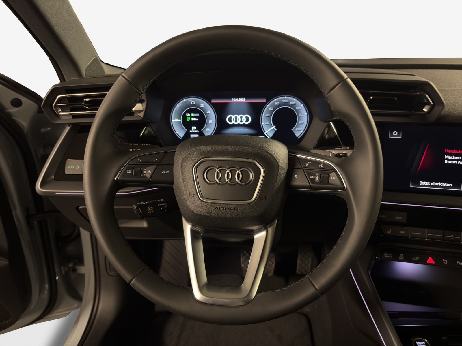 Airbag: Airbag Beifahrer deaktivierbar Assist: Audi pre sense front Assist: Ausweichassistent und Abbiegeassistent Assist: Einparkhilfe hinten Assist: Kamerabasierte Verkehrszeichenerkennung Assist: Proaktiver Insassenschutz Front, Seite und Heck Assist: Spurverlassenswarnung inkl. Notfallassistent Assist: Traktionskontrolle Audi connect Notruf & Service mit Audi connect Remote & Control Aussenspiegel elektrisch einstell- und beheizbar Aussenspiegel in Wagenfarbe Dekor: Dekoreinlage Feinlack vulkangrau Diffusor hinten schwarz matt genarbt Einleger der Lufteinlässe vorn schwarz matt genarbt Einleger im Diffusor in Selenitsilber Elektrische Fensterheber vorne Elektronisches Stabilitäts-Programm (ESP) Fahrwerk: Anpassung Bremsanlage Fensterschachtleisten in Schwarz Frontscheibe in Wärmeschutzverglasung Funkschlüssel, ohne Safelock Garantie: 2 Jahre ohne Kilometerbegrenzung (ab 1. Inv.) Getriebe: 7-Gang- Automat S tronic Haushaltsstecker Typ J (Schweiz) für das e-tron Ladesystem Industriestecker CEE 16A, 400V, lang und gerade für das e-tron Ladesystem Interieur mit Normalsitzen in Stoff schwarz Kindersicherung, elektrisch Klima: 1-Zonen-Klimaautomatik mit Vorbereitung für weitere Klimafunktionen Klima: Standklimatisierung Kühlerschutzgitter schwarz matt genarbt Lackierung: Uni-Lackierung Ladekabel Mode 3 für öffentliches Laden 11 kW Lenkrad: Lederlenkrad im 3-Speichen-Design mit Multifunktion plus und Schaltwippen Media: Audi phone box light Media: USB-Anschlüsse mit Ladefunktion im Fond Paket: Ambiente Lichtpaket Räder: Reifendruck-Kontrollanzeige Räder: Reifenreparatur-Set (Tire Fit) Räder: Räder, 5-V-Speichen Sitze: Rücksitzlehne umklappbar Sitze: i-Size und Top Tether für die äusseren Fondsitze Wegfahrsperre elektronisch Zentralverriegelung mit Fernbedienung e-tron Ladesystem kompakt