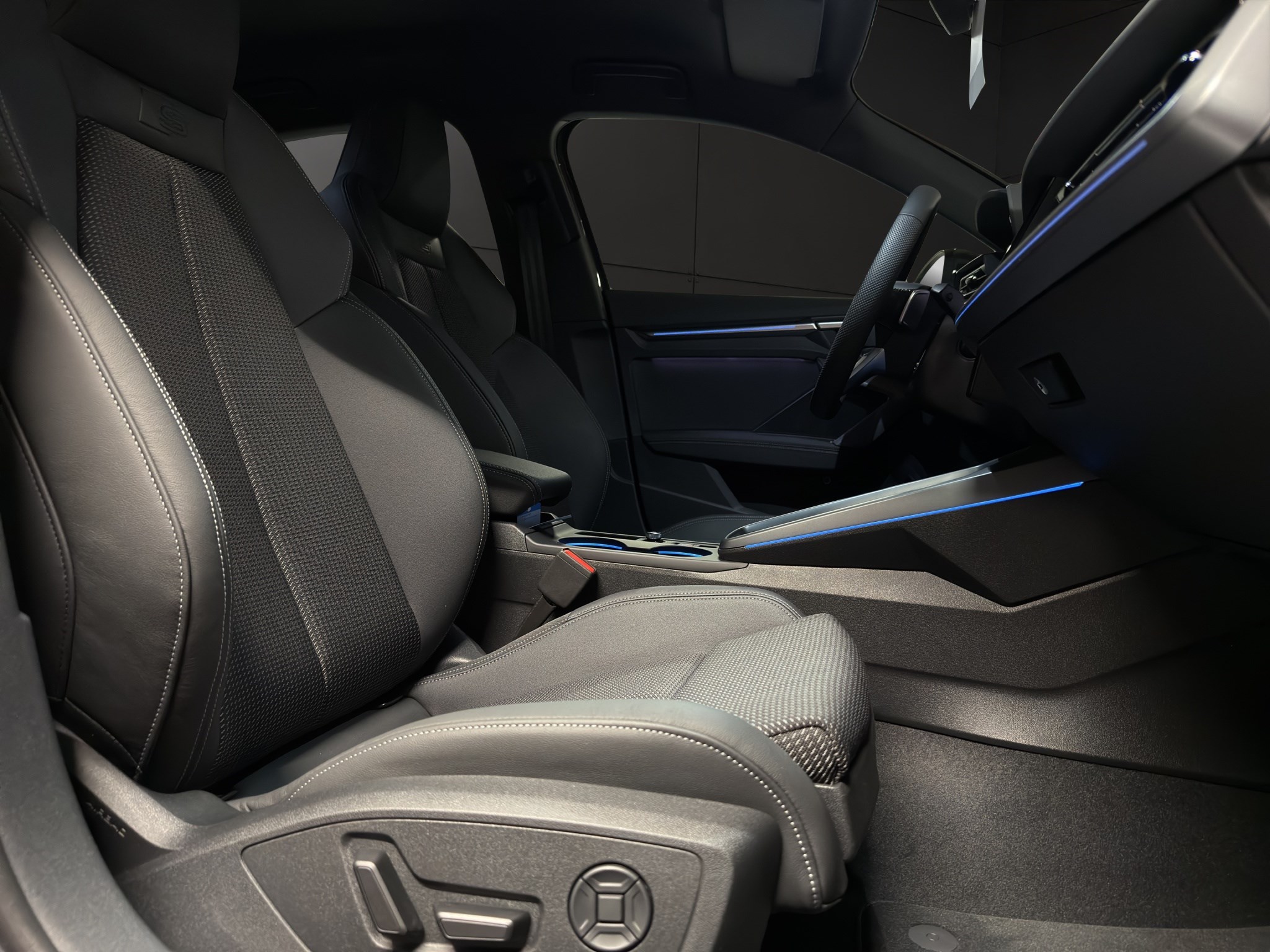 Assist: Adaptiver Fahrassistent mit Notfallassistent Assist: Adaptiver Geschwindigkeitsassistent Assist: Parkassistent mit Einparkhilfe plus Bordwerkzeug und Wagenheber Garantie: Audi Garantie: 5 Jahre oder 100'000 km (ab 1. Inv.) Komfortschlüssel ohne Safelock Lackierung: Metallic-Lackierung Licht: Fernlicht-Assistent Pack: Intérieur S avec sièges sport, combinaison tissu/similicuir noir Pack: Pack Info-divertissement Connectivity Pack: Pack climatisation plus Pack: Pack confort - Sportback Pack: Phares avant LED et feux arrière LED avec clignotants arrière dynamiques Pack:Pack Éclairage dambiance plus Préparation pour dispositif d'attelage Sitze: Vordersitze elektrisch verstellbar Sièges: Fixation de siège enfant ISOFIX avant, sangle supérieure Sièges: dossier de siège arrière, partiellement rabattable Türen: Komfortöffnung Gepäckraumklappe