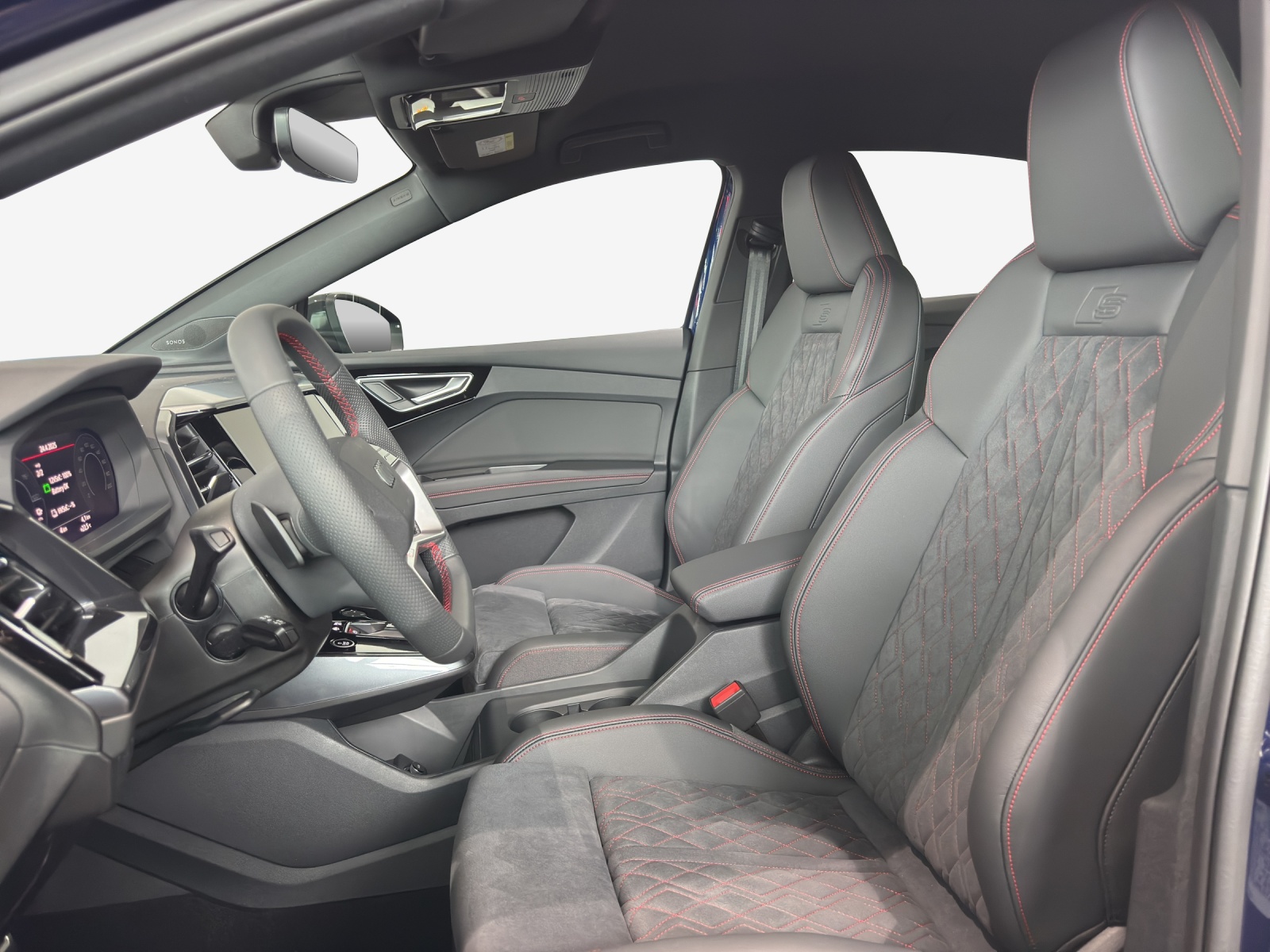 Capot de coffre électrique avec déverrouillage de coffre piloté par capteur Coutures de couleur rouge Audi Sport Lackierung: Metallic-Lackierung Lumière: Phares à LED Audi Matrix Mèdias: Audi Application Store et interface pour smartphone Mèdias: Système audio SONOS haut de gamme Pack: Forfait climatisation Pack: Intérieur S line avec sièges sport en combinaison microfibre Dinamica / cuir synthétique noir Pack: Pack Infodivertissement Suisse Pack: Pack extérieur S line Pack: Pack optique noir plus Paket: Ambiente Lichtpaket plus Peinture: Peinture intégrale Privacy-Verglasung (Scheiben abgedunkelt) Roues: Jantes en alliage léger, à 5 rayons en Y Suppression de la désignation du modèle et du lettrage de service / technologie Vitrage acoustique pour fenêtres de porte d'entrée