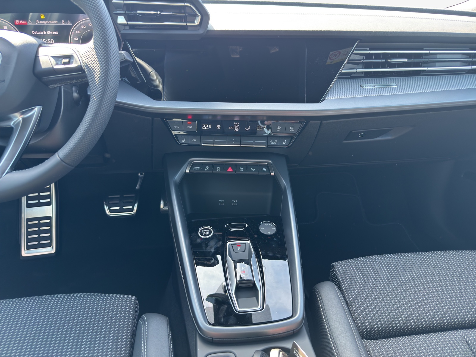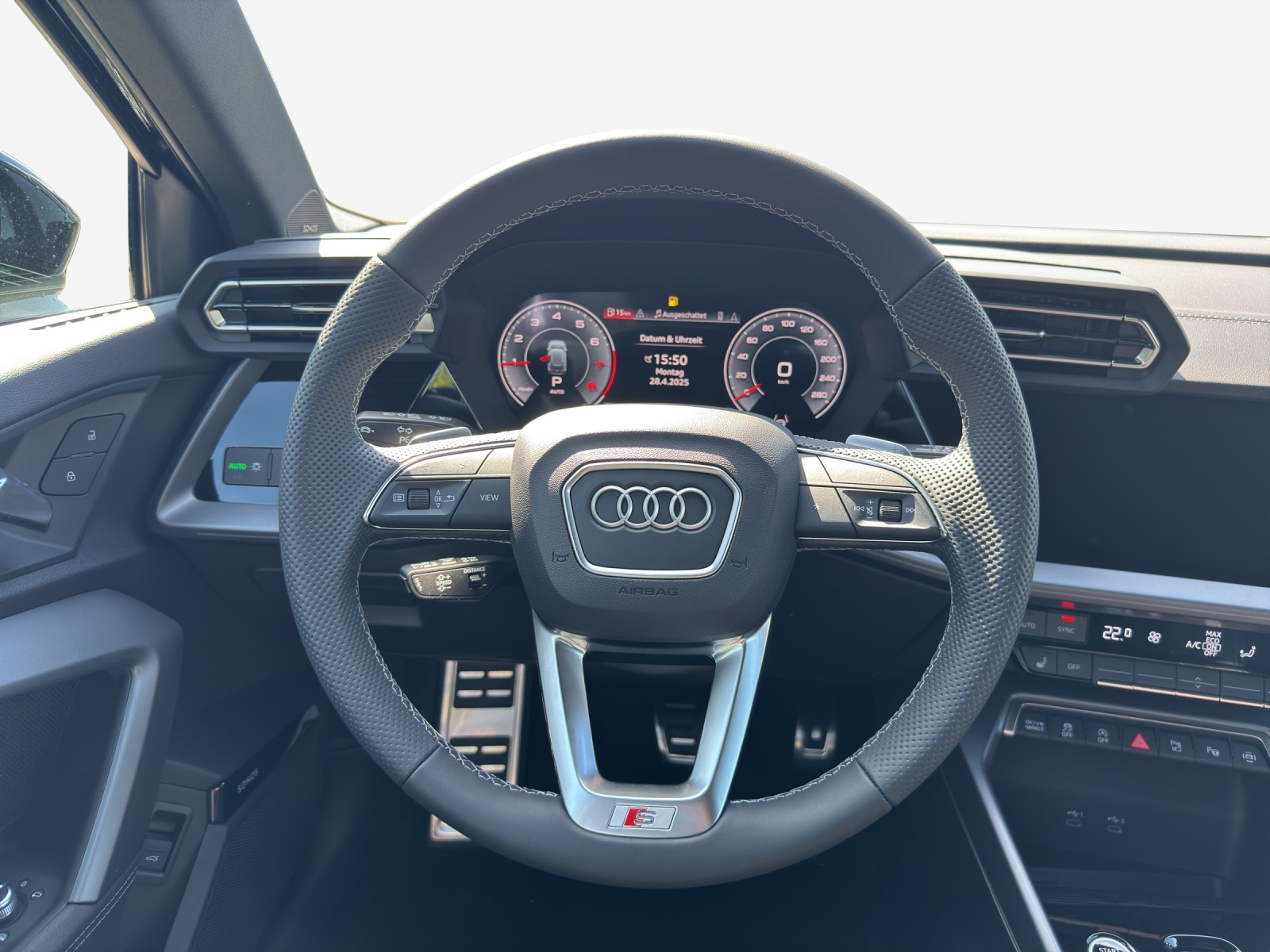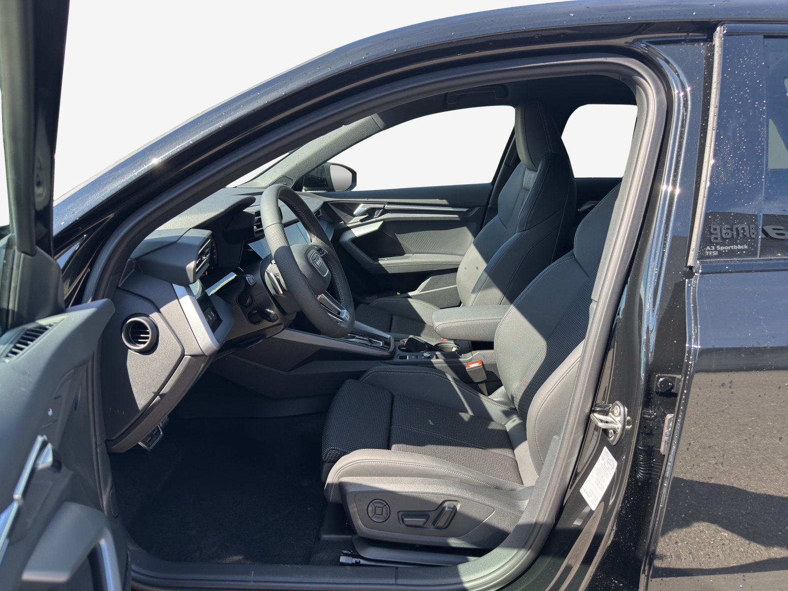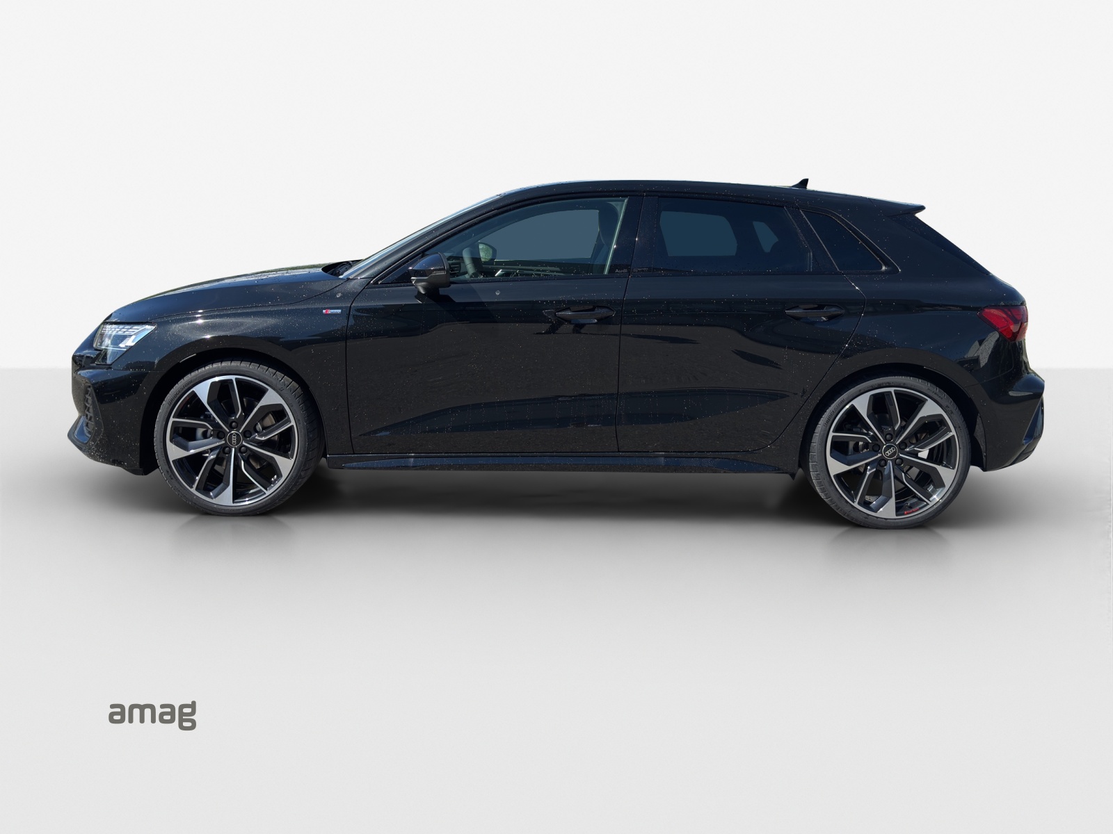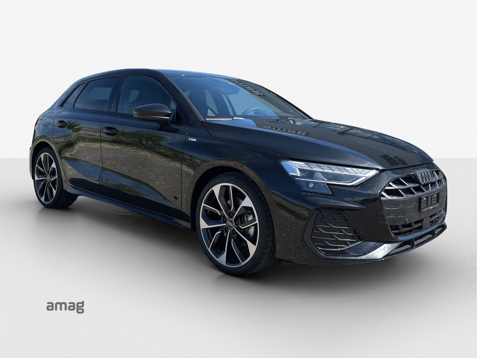 Assist: Adaptiver Fahrassistent mit Notfallassistent Assist: Assistance de stationnement avec aide au stationnement plus Assist: Assistant de vitesse adaptatif Décor: Application décorative en aluminium Spektrum foncé Komfortschlüssel ohne Safelock Lumière: Assistance aux feux de route Pack: Intérieur S avec sièges sport, combinaison tissu/similicuir noir Pack: Pack climatisation plus Pack: Pack confort - Sportback Pack: Pack optique noir plus Pack: Phares avant LED et feux arrière LED avec clignotants arrière dynamiques Paket: Ambiente-Lichtpaket pro Peinture: Peinture métallisée Roues: jantes en alliage léger Audi Sport 19 pouces à 5 doubles branches, noir anthracite, brillant Sièges: Sièges AV à réglage électrique Sièges: dossier de siège arrière, partiellement rabattable Vitrage de contrôle solaire, obscurci