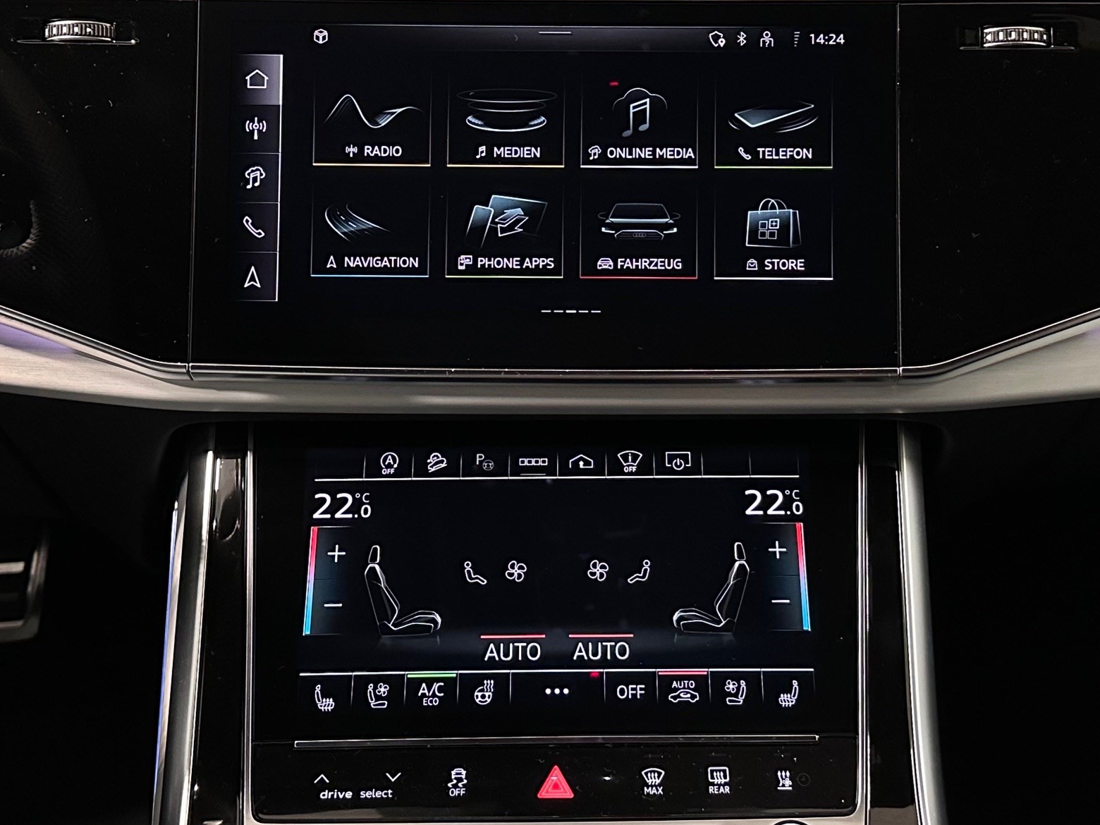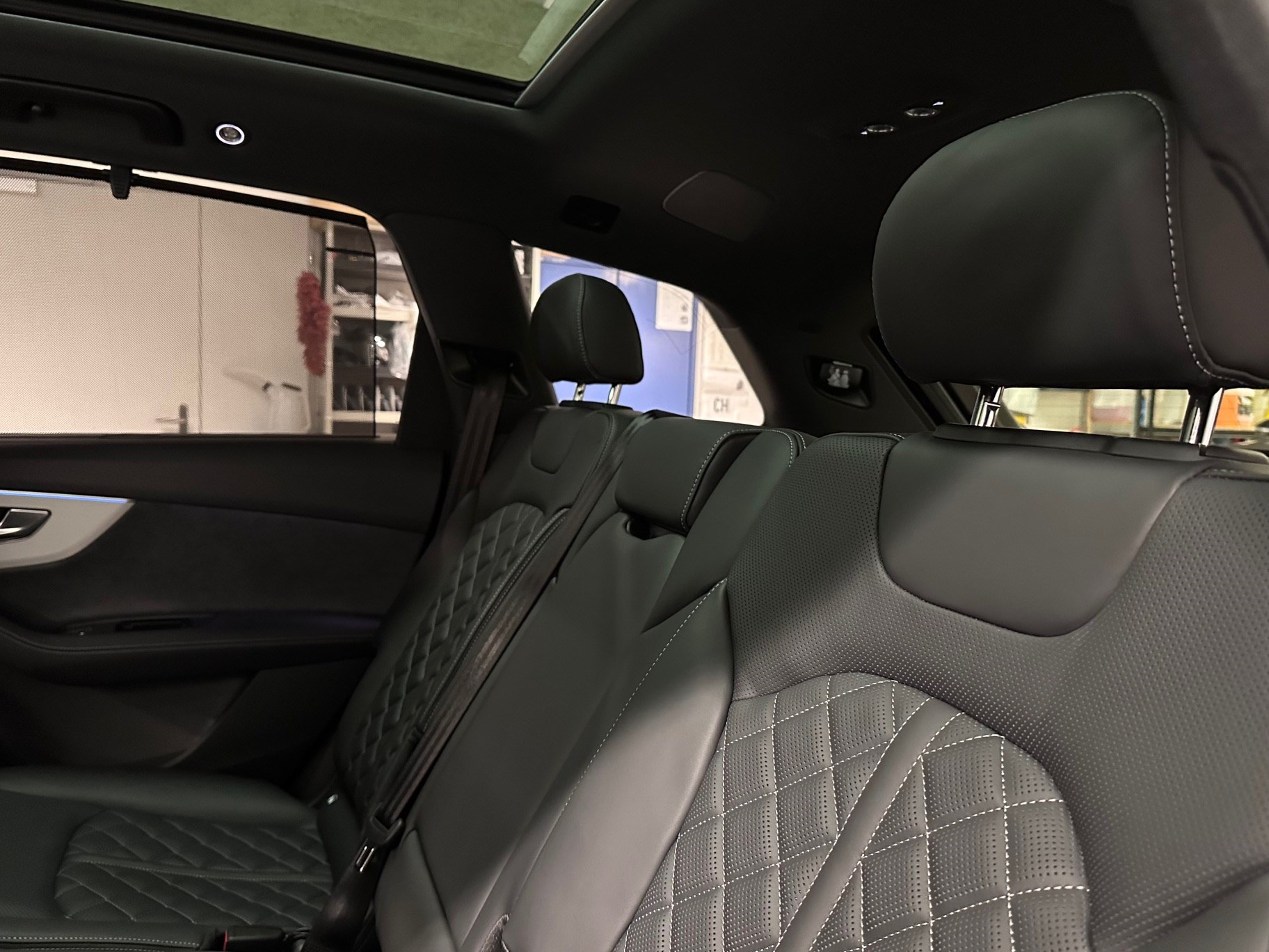 [3GN] Schienensystem mit Fixierset [5XL] Doppelsonnenblenden vorn, verschiebbar [GS5] Dekor: Bedientasten schwarz glänzend mit haptischem Feedback und Aluminiumoptik Interieur [A41] Audi Swiss Service Package+ [4D8] Sitze: Sitzbelüftung und Massagefunktion vorne [7HQ] Dekor: Interieurelement oben mit Kontrastnaht und Interieurelemente unten in Kunstleder
