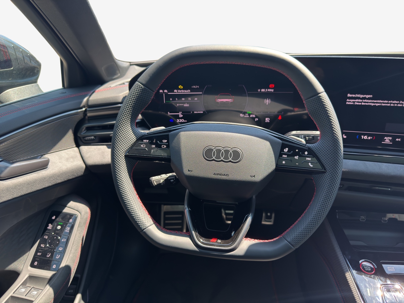 Airbag: Seitenairbag vorn und hinten, mit Kopfairbag und Interaktionsairbag vorn Akustikverglasung für Tür- und Seitenscheiben Anhängevorrichtung mechanisch schwenkbar Assist: Adaptiver Fahrassistent plus Assist: Spurverlassenswarnung inkl. Notfallassistent Dekor: Instrumententafel-Oberseite schwarz mit Kontrastnaht Fahrwerk: Adaptive air suspension Fahrwerk: Bremssättel rot lackiert Fahrwerk: S-Sportfahrwerk Klima: Standheizung und -lüftung Lackierung: Perleffekt-Lackierung Licht: Einstiegs-LED mit Logoprojektion vorn Media: Bang & Olufsen Premium Soundsystem mit 3D Klang Media: LTE-Unterstützung für Audi phone box Paket: Luftqualität-Paket Paket: MMI experience pro Paket: Paket Premium experience Panorama-Glasdach mit schaltbarer Transparenz Räder: Radschrauben mit Diebstahlsicherung Räder: Räder Audi Sport, Vielspeichen-S, schwarz metallic, neodymgold matt, glanzgedreht Räder: Räder, 5-Arm, platingrau Sitze: Vordersitze elektrisch verstellbar Sonnenschutzverglasung, abgedunkelt