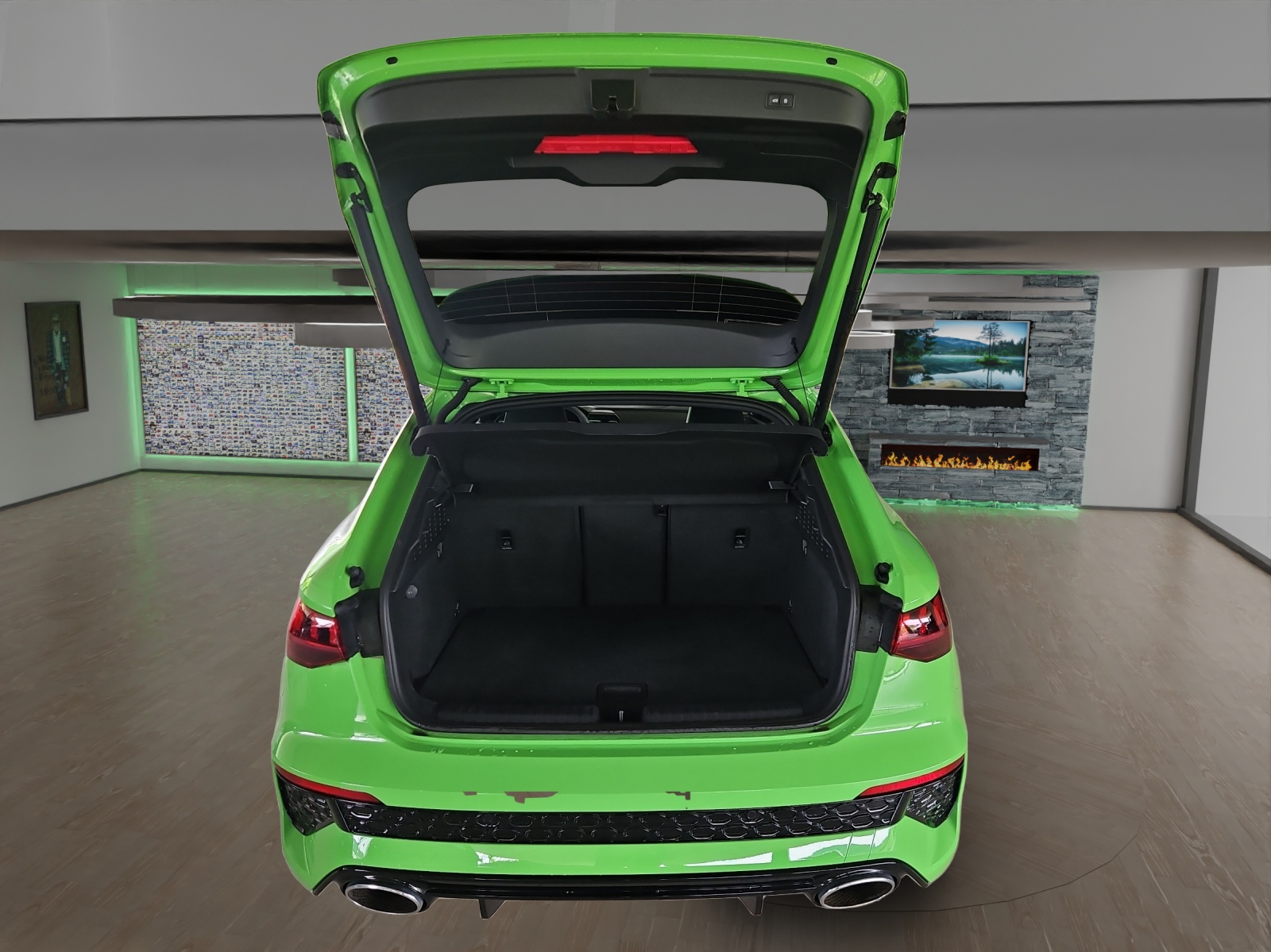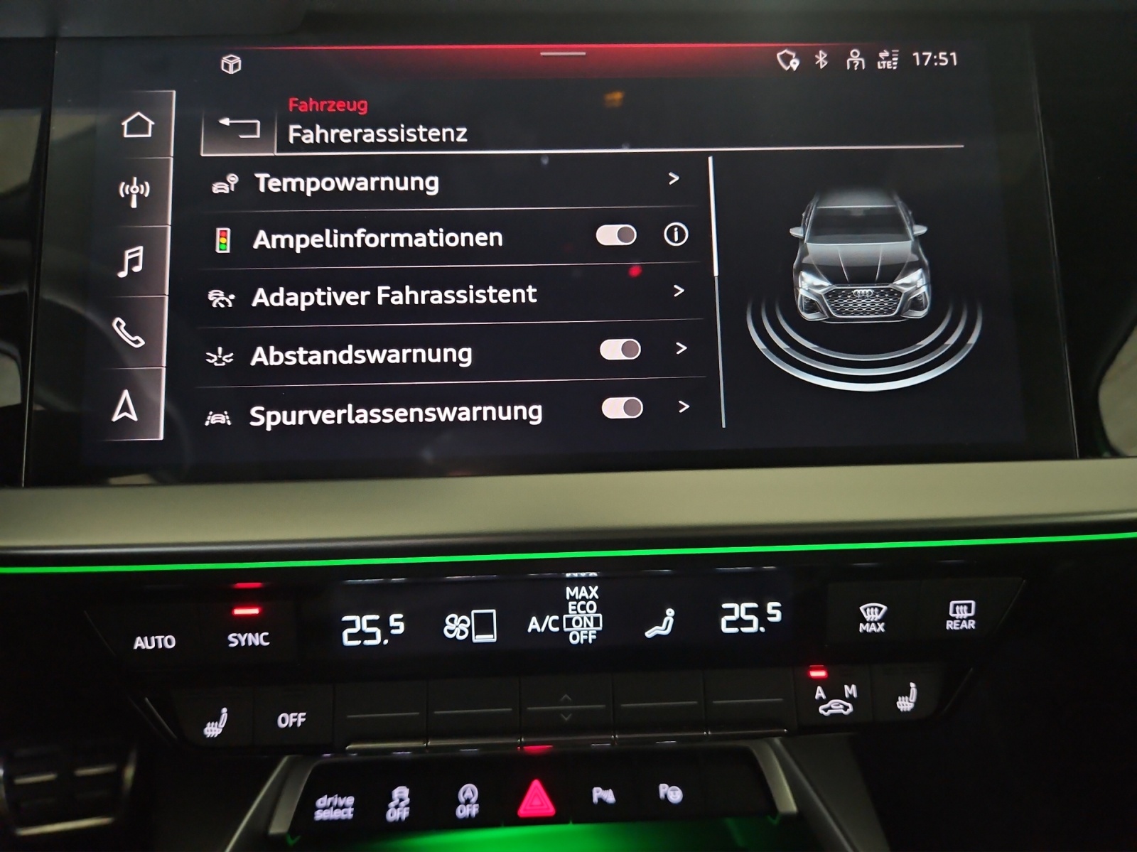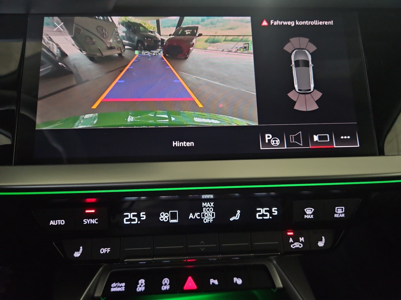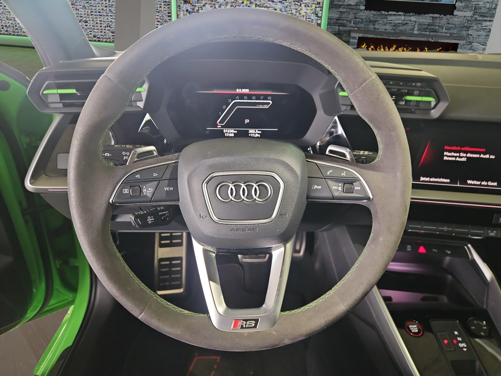 Assist: Adaptiver Geschwindigkeitsassistent Assist: Audi pre sense basic Assist: Spurwechselwarnung mit Ausstiegswarnung und Querverkehrassistent hinten Fahrwerk: Adaptives Fahrwerk mit Audi drive select Fahrwerk: RS-Bremsanlage mit Bremssätteln rot Frontscheibe in Wärmeschutzverglasung Innenspiegel automatisch abblendend, rahmenlos Komfortschlüssel ohne Safelock Lenkrad: Lederlenkrad im 3-Speichen-Design mit Multifunktion plus und Schaltwippen Licht: Abgedunkelte Matrix LED-Scheinwerfer mit dynamischem Blinklicht Media: Audi Smartphone Interface Media: Audi connect Navigation & Infotainment plus Media: USB-Anschlüsse mit Ladefunktion im Fond Paket: Assistenzpaket mit MMI Navigation plus Paket: Optikpaket schwarz plus mit Singleframe in Wagenfarbe Privacy-Verglasung (Scheiben abgedunkelt) RS-Exterieurumfänge in schwarz glänzend Räder: Räder, 5-Y-Speichen, schwarz mit Grafikdruck Sitze: 4-Wege-Lendenwirbelstütze für die Vordersitze Sitze: Fahrersitz elektrisch verstellbar Türen: Komfortöffnung Gepäckraumklappe